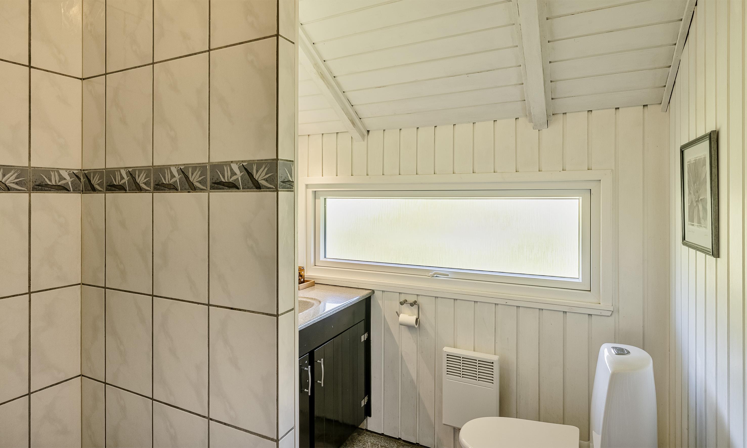 Bad med toilet, bruser og vask