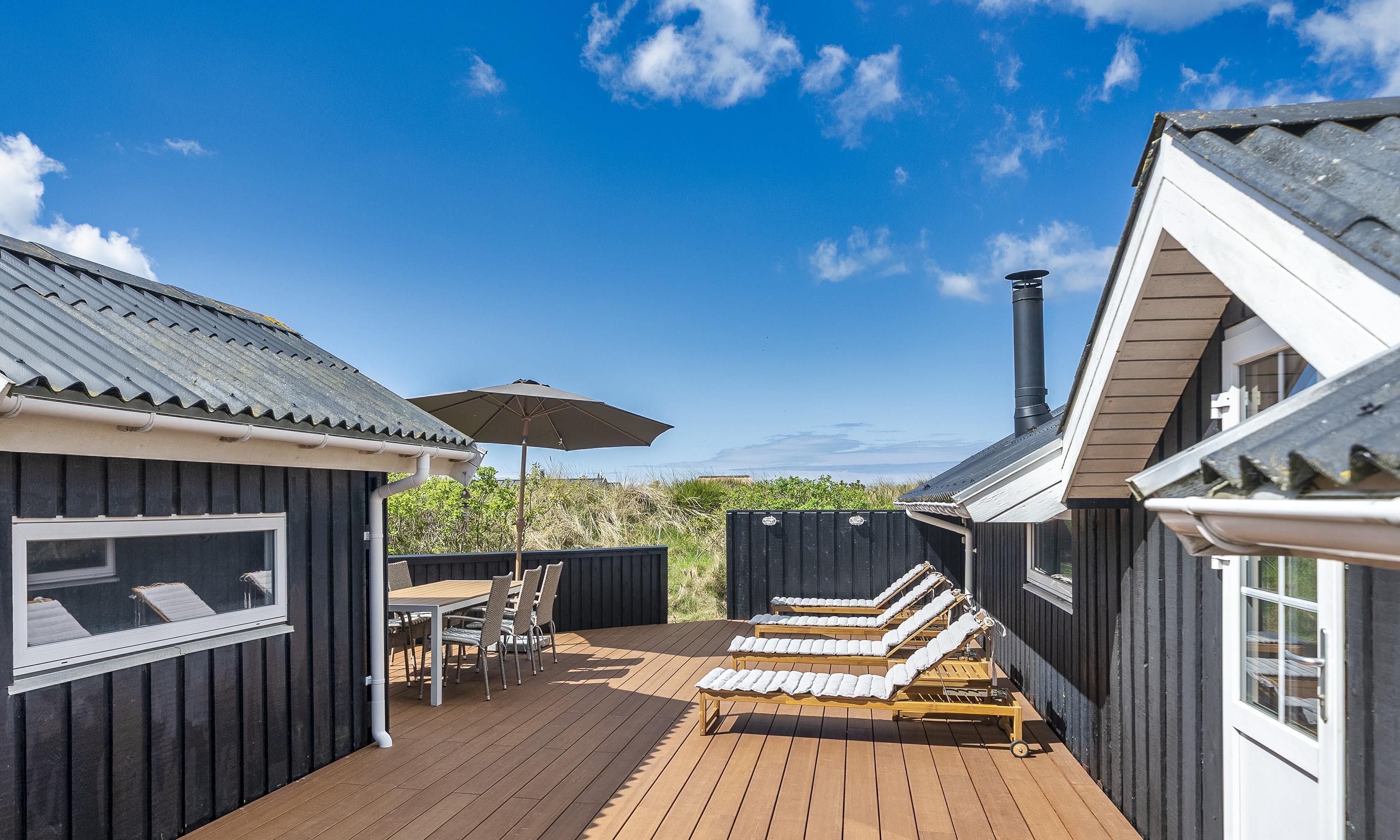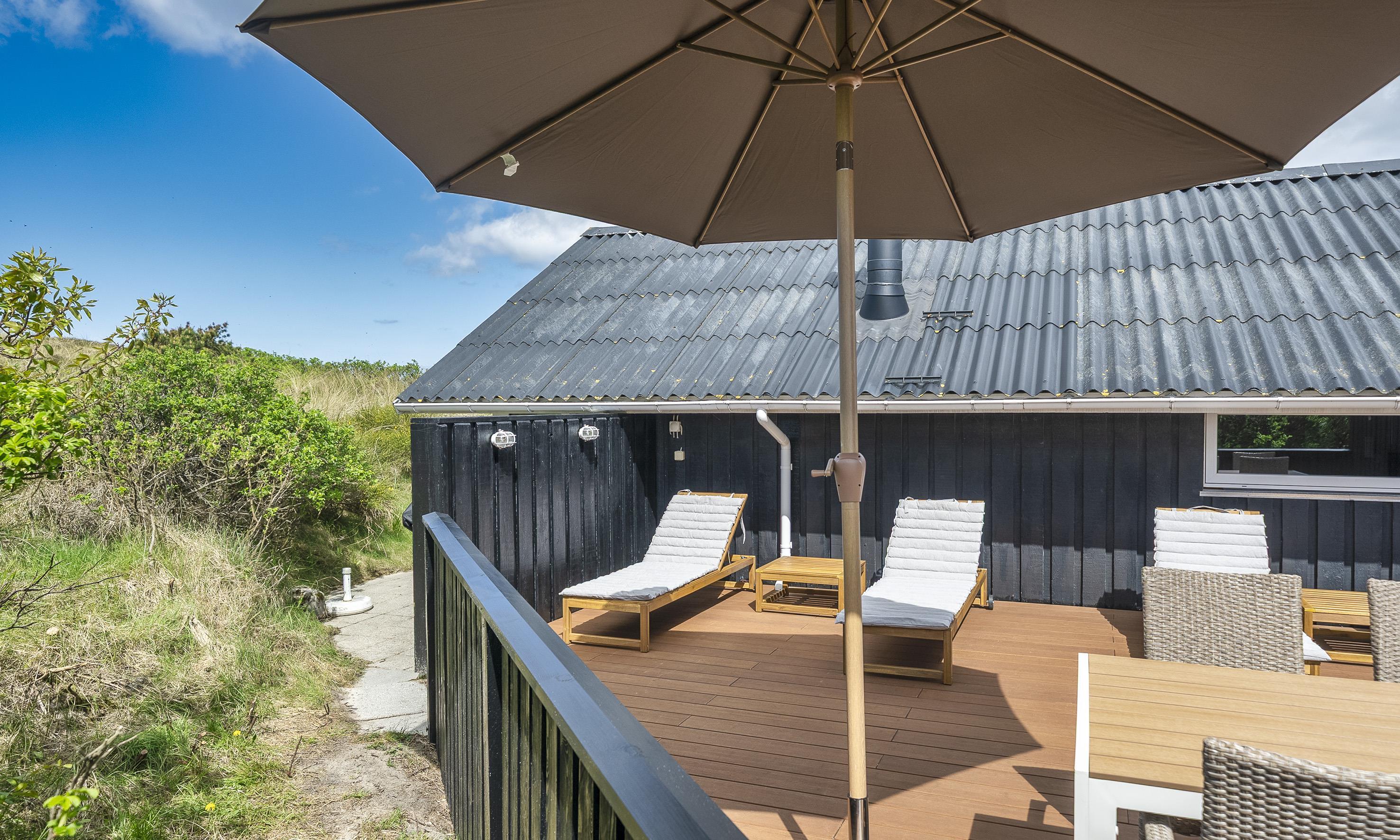 Hyggeligt sommerhus til max 5 personer uanset alder, beliggende i klitterne, ca. 400 meter fra stranden. Køkken med opvaskemaskine, lille skabsfryser og mikroovn. Stue med fjernsyn, parabol og ny brændeovn fra 2024. (ingen danske programmer). 3 soveværelser: DS + S + S. Nye senge i 2024: værelse 1: 180x200, værelse 2: 2 stk 80x200, værelse 3: 120x200. Badeværelse med bruser/wc. I tilbygningen findes tørretumbler og vaskemaskine. Trådløs internet. Rygning er ikke tilladt. Klimaanlæg ikke til benyttelse. Delvis lukket terrasse. Husdyr er ikke tilladt. Byggeår 1978, renoveret 2010.