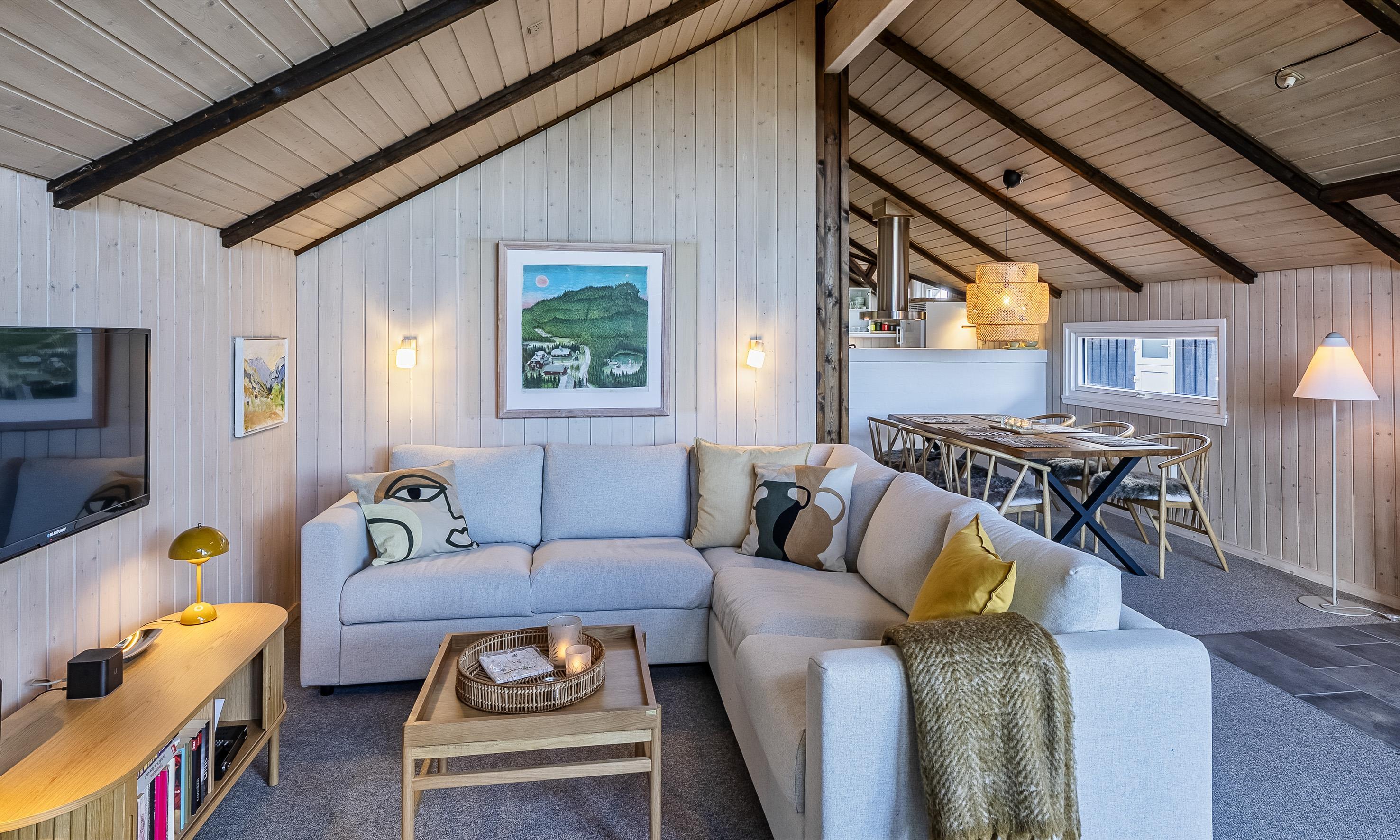 3 soveværelser. 1 med dobbeltseng (180x200 cm). 1 med 2 enkeltsenge (á 80x200 cm). 1 med 1 enkeltseng (120x200)