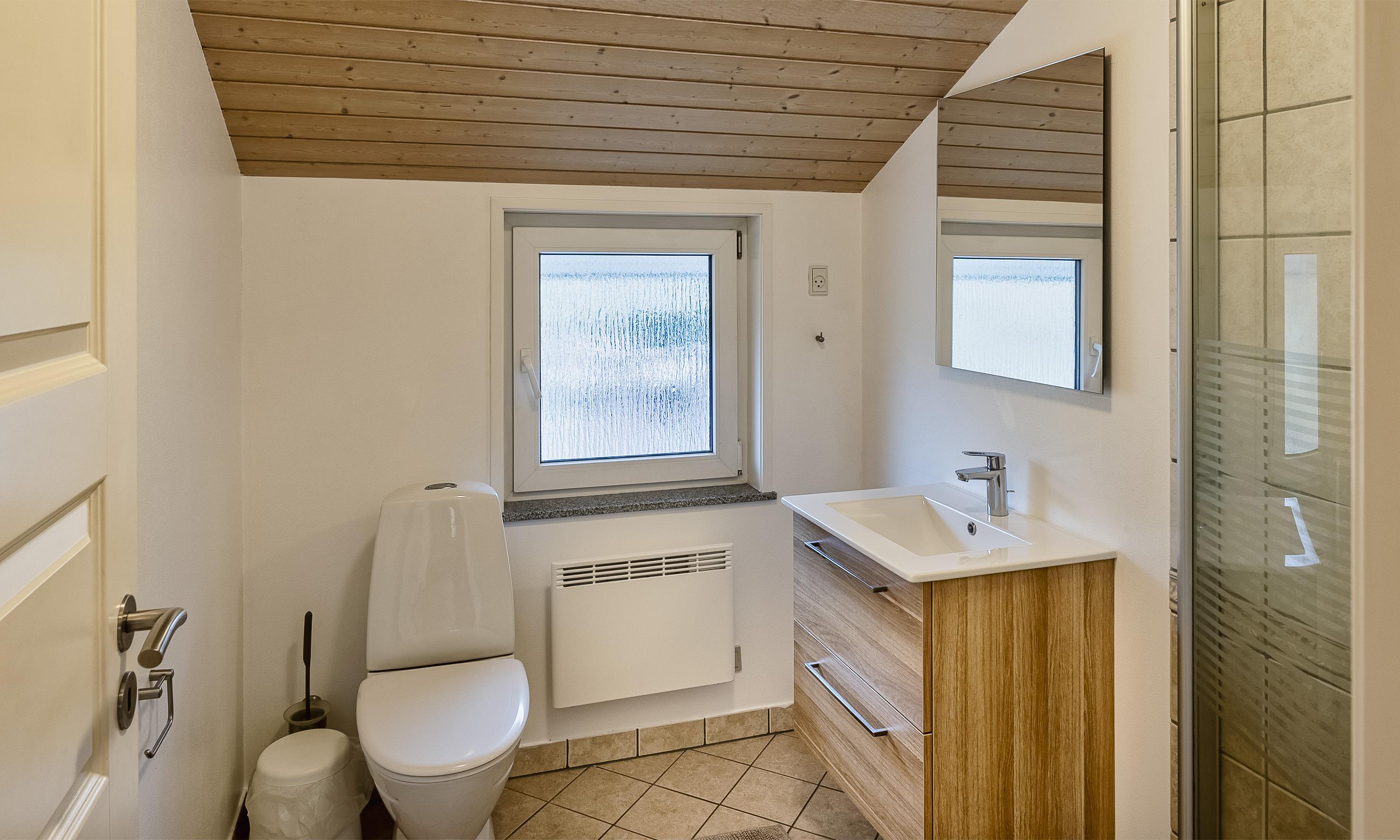 Bad med toilet, bruser og vask