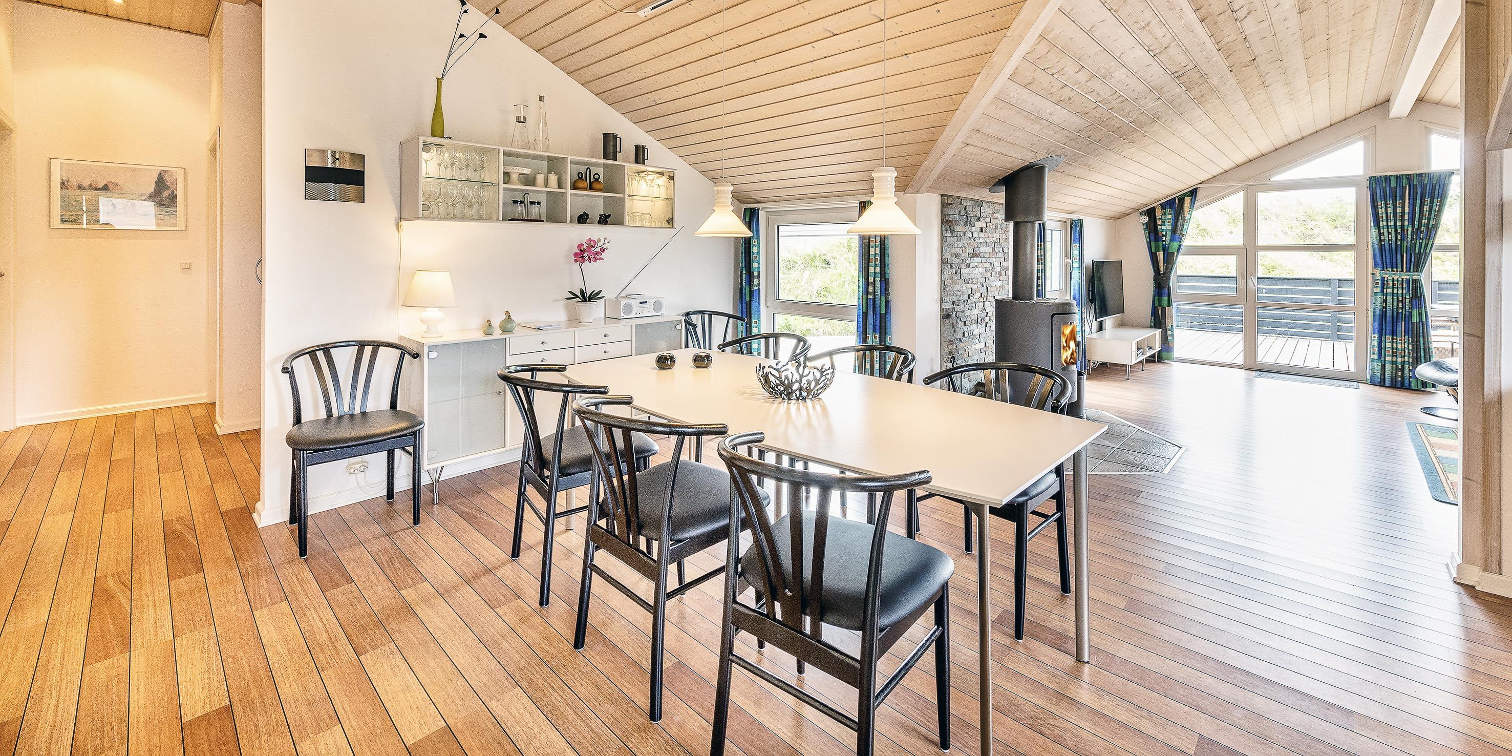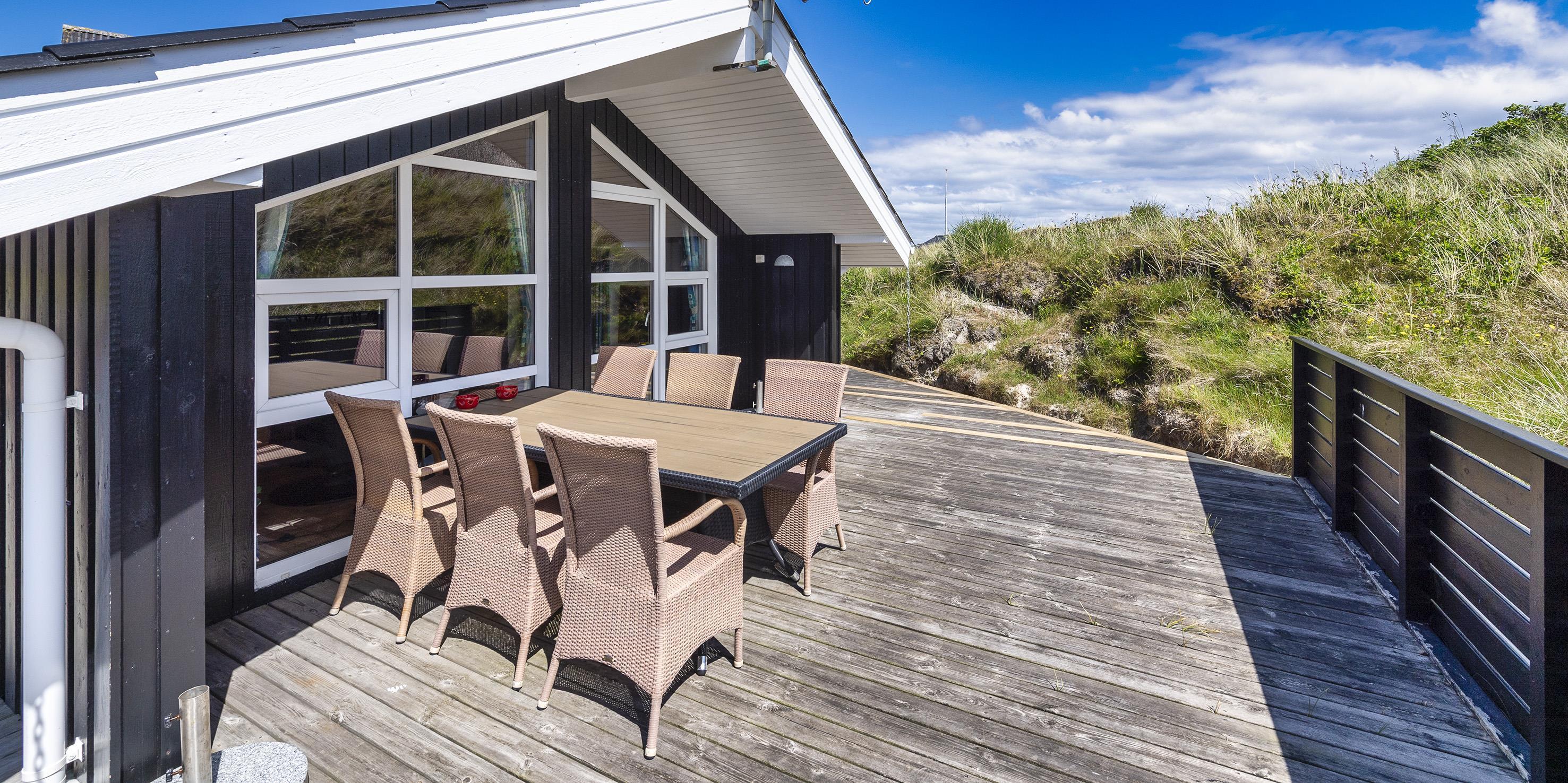 Smagfuldt sommerhus til 6 personer, beliggende på naturskøn klitgrund, ca. 200 meter fra stranden. Stue med brændeovn, parabol og fjernsyn (DR programmer) samt åbent køkken med opvaskemaskine og lille skabsfryser. Varmepumpe. Badeværelse med bruser/wc, spa og sauna. Gæstetoilet med bruser. 4 soveværelser: DS + DS + 2S + S. Vaskemaskine og tørretumbler. Dejlig, delvis lukket terrasse. Husdyr er ikke tilladt! Trådløs internet. Rygning er ikke tilladt. Byggeår 1986, renoveret 2006.