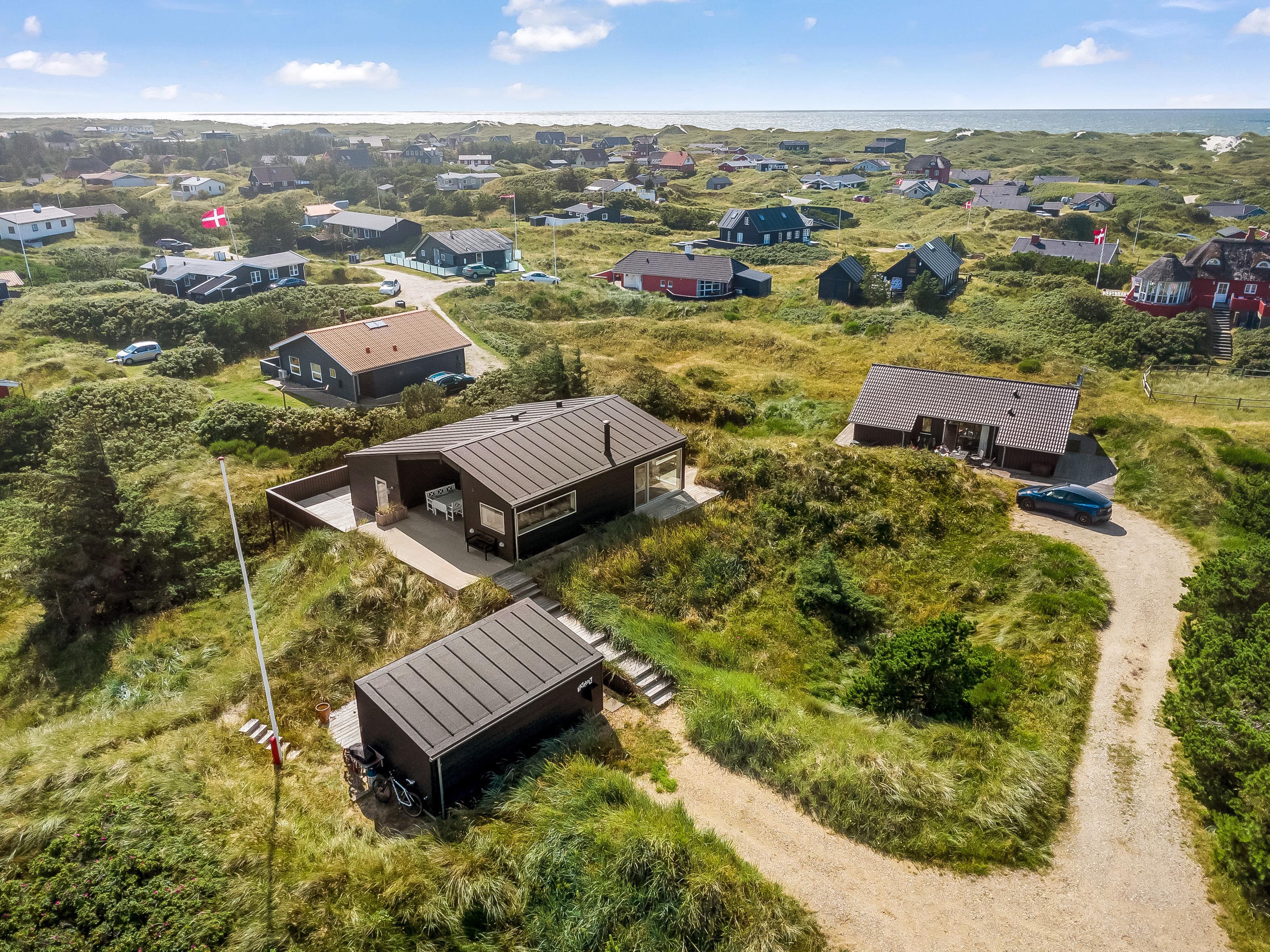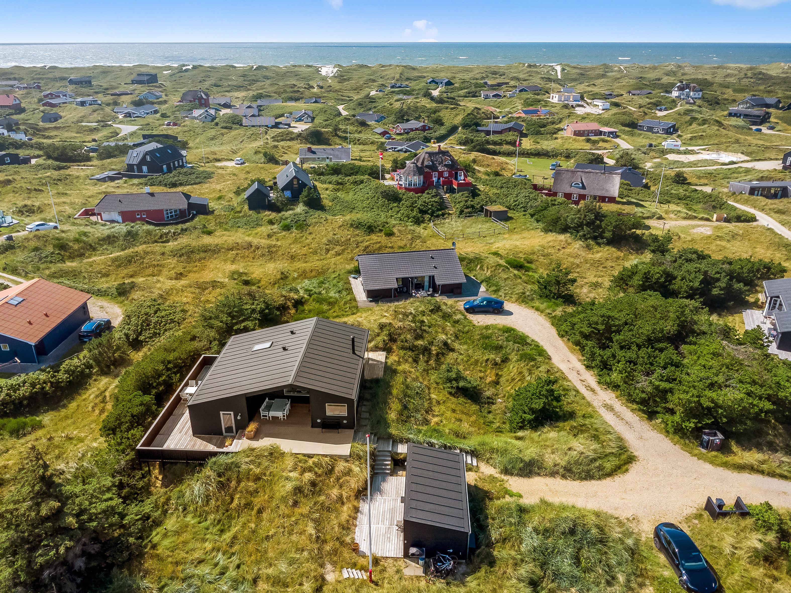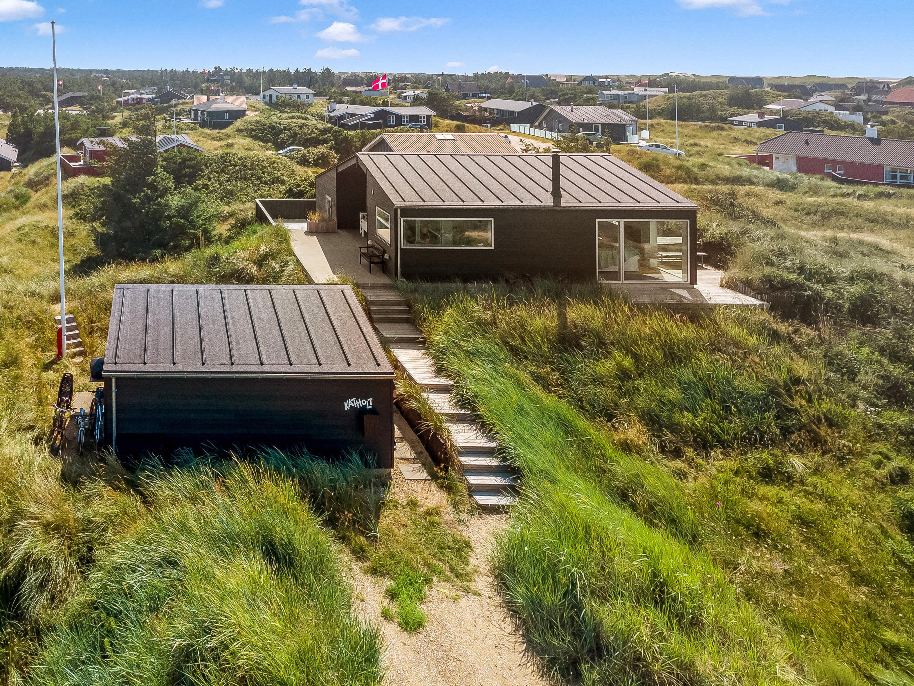 Højt beliggende sommerhus i klitlandskabet på Vejers Nordstrand for enden af en blind vej - et eventyrligt sted omgivet af naturens skønhed. Huset er nyopført i 2022 - bygget af kvalitetsmaterialer og med et moderne nordisk design. Perfekt til seks personer, der ønsker ro og fred. Der er lademulighed til elbil via Type 2 lader.