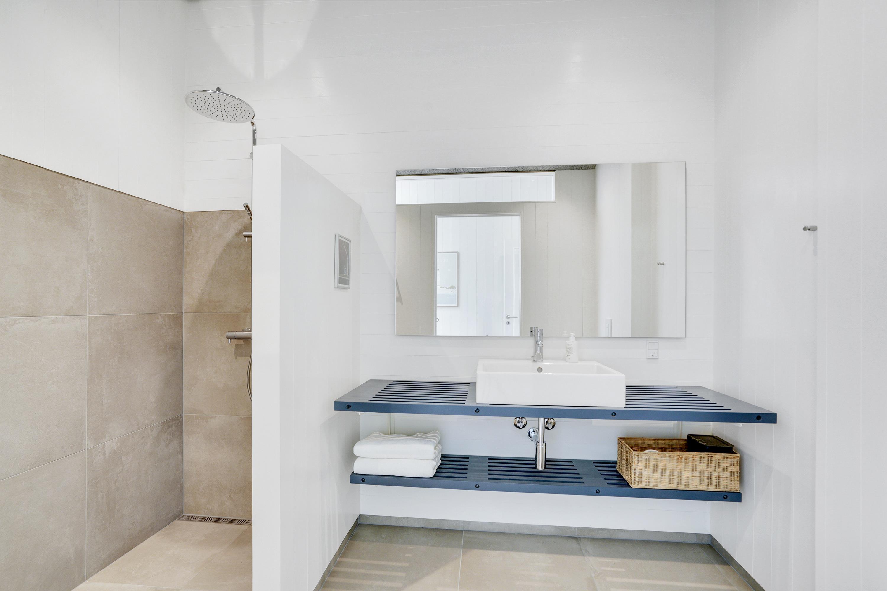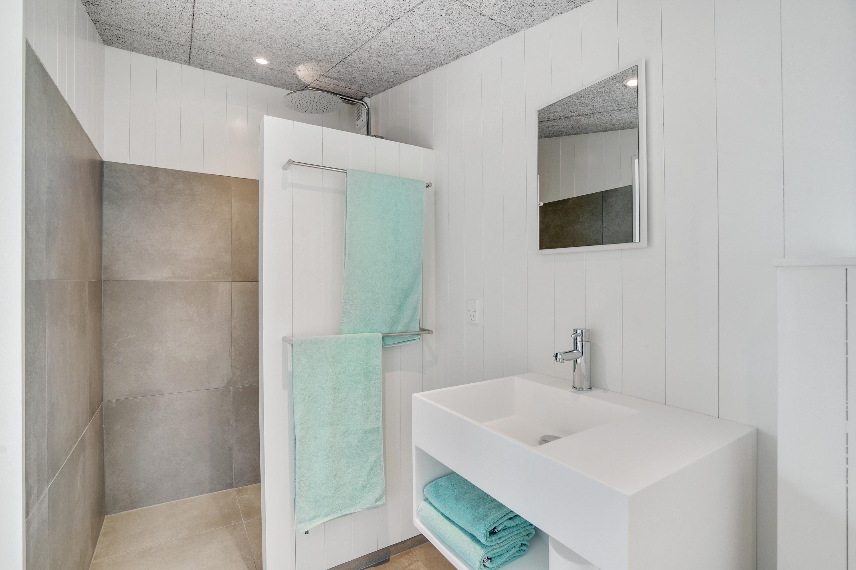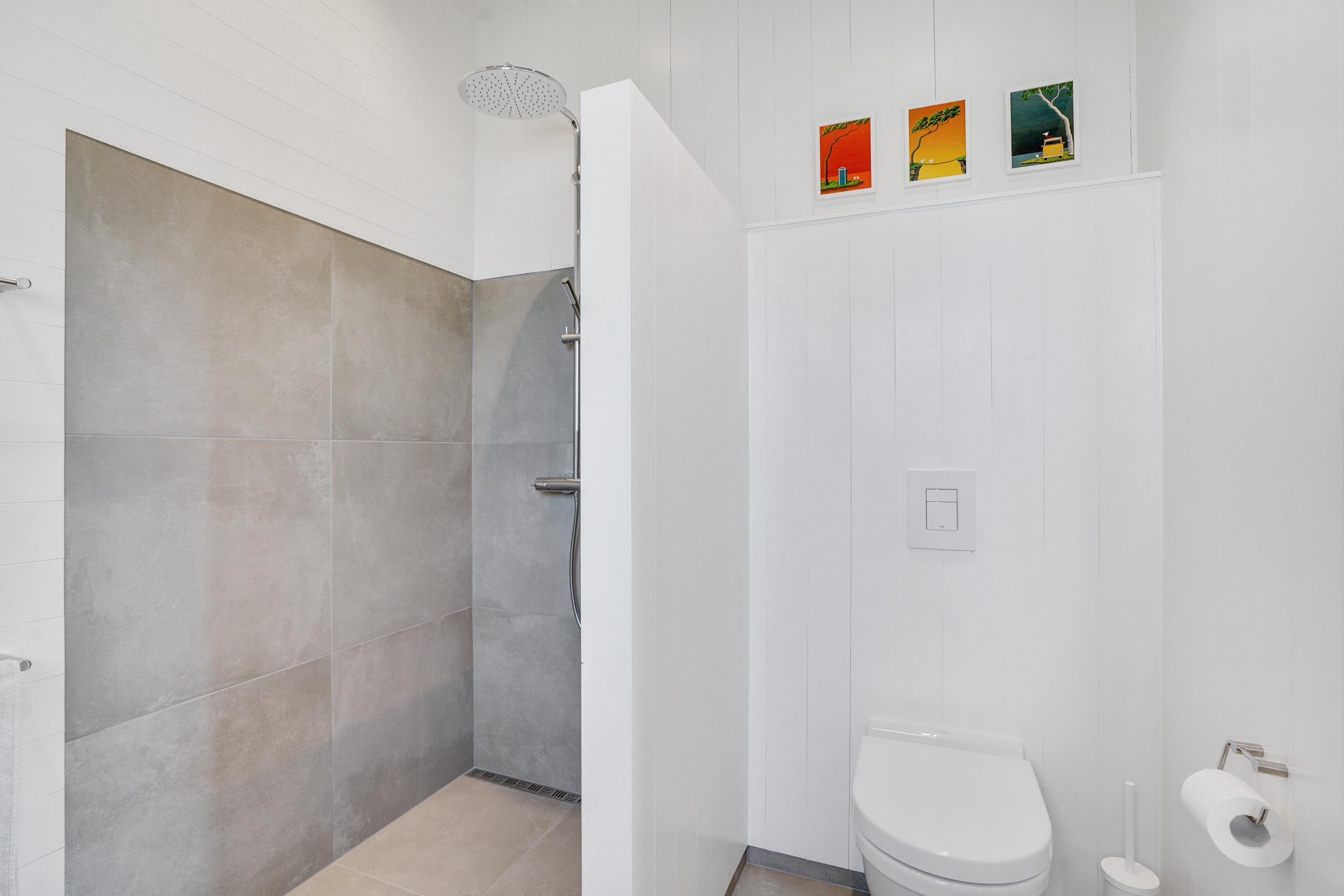 I tilknytning til køkken/alrum findes en overdækket terrasse mod øst med panoramaudsigt, hvor der er mulighed for ophold både sommer, forår og efterår. Der er også en udebruser til sommerbrug. Huset byder velkommen med en stor entré med garderobe, vaskemaskine og tørretumbler, 2 soveværelser med hver et tilhørende badeværelse ligger i samme plan. Et par trapper op og den fantastiske udsigt kommer til syne og kan nydes fra den rummelige stue, spiseafdeling og køkken. 3 soveværelser: DS + DS + DS.