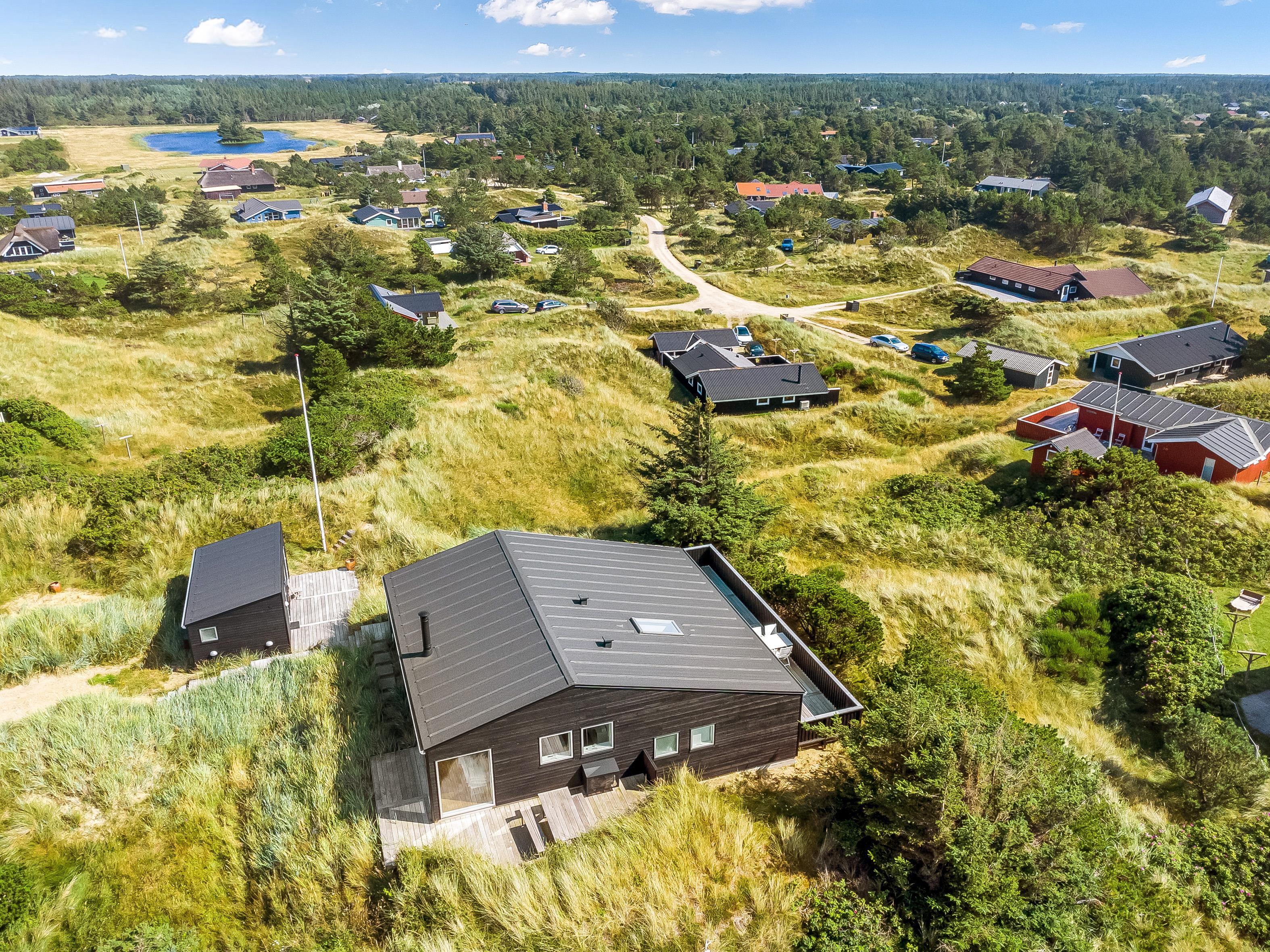 Beliggenheden på en naturskøn klitgrund med panoramaudsigt til de yderste klitrækker mod vest og skov og sø mod øst er unik – og den bilfri strand ligger omkring 600 meter væk. Huset har en behagelig atmosfære med stort dagslys indfald og udsigt til det omgivende landskab. Træterrasser mod øst, syd og vest giver mulighed for at følge solen rundt – og finde læ.