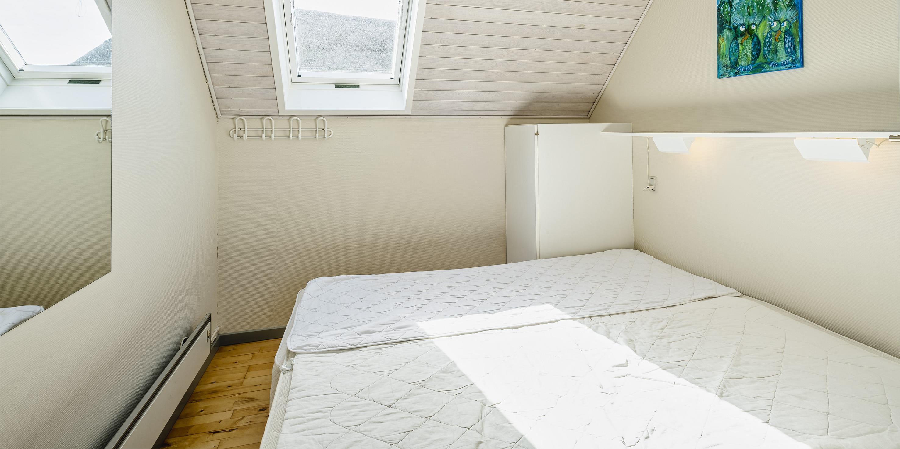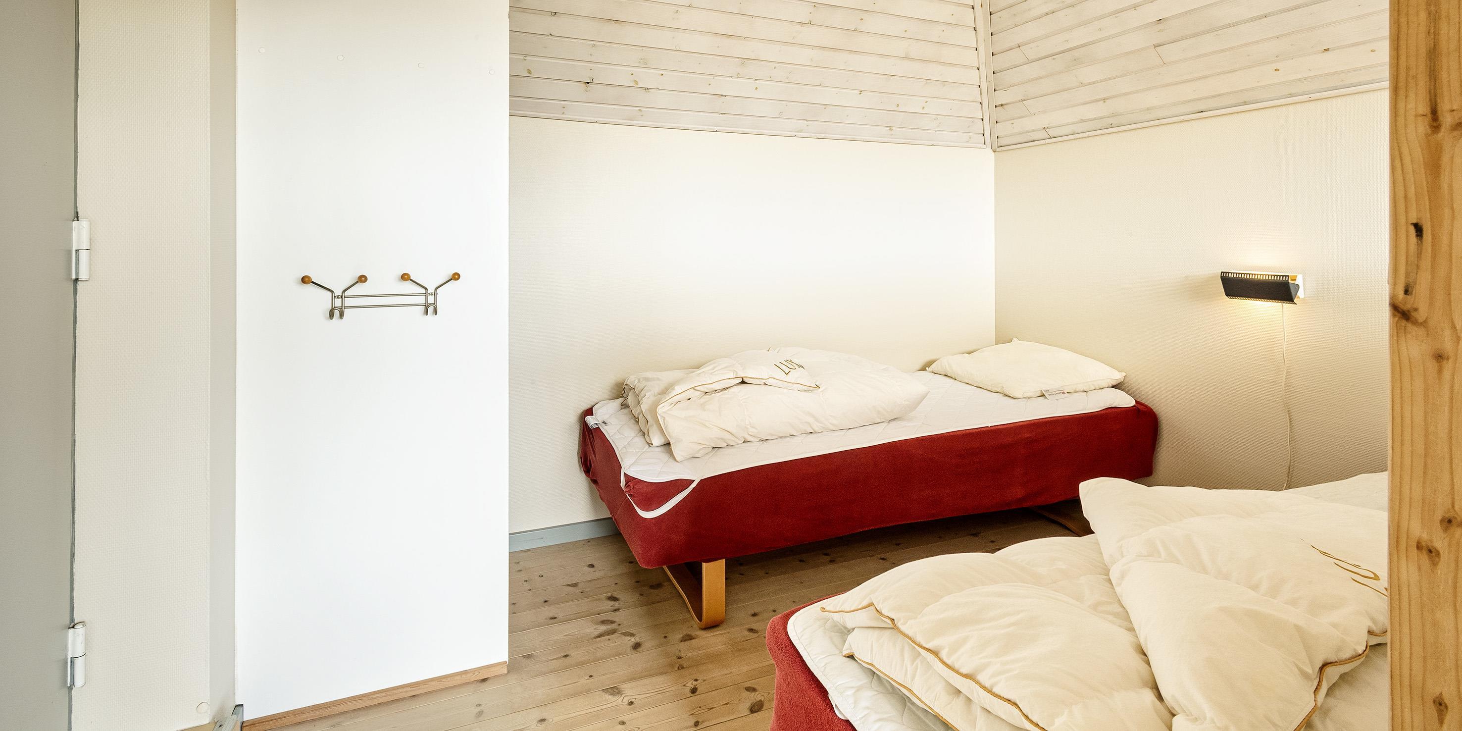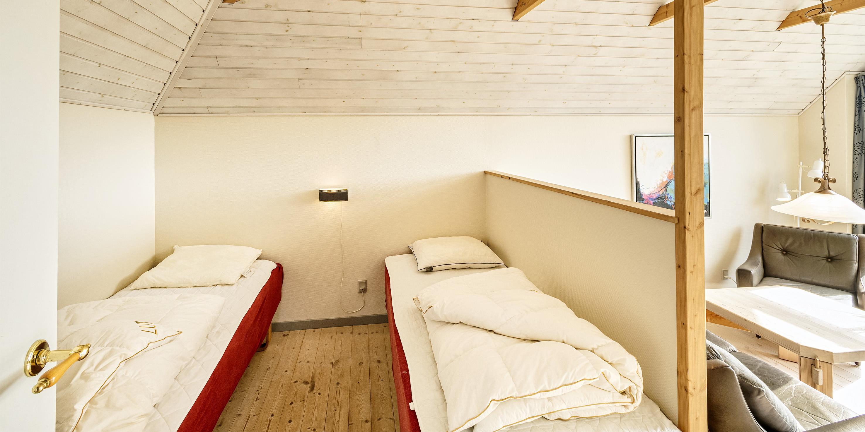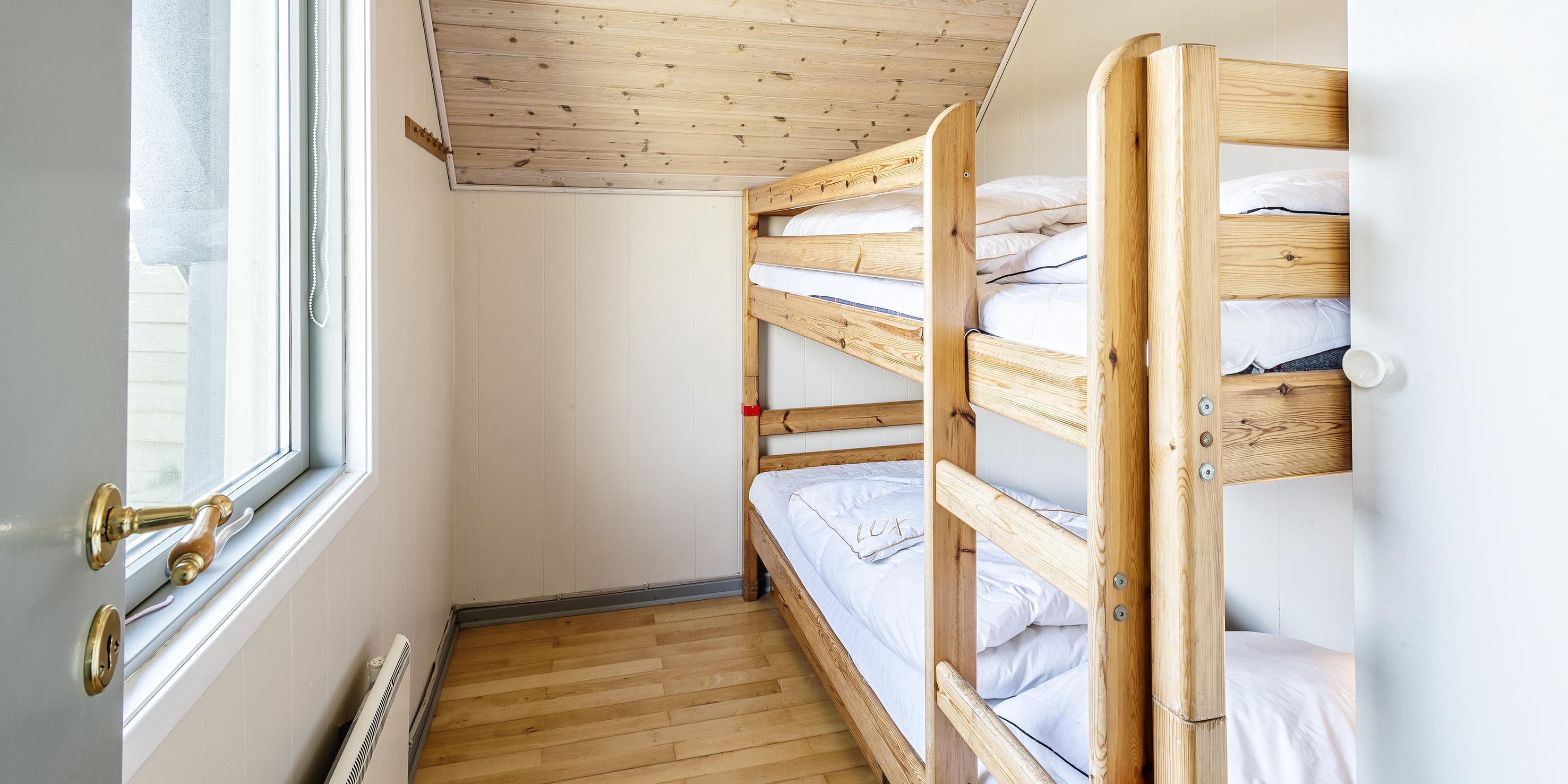 3 soveværelser. 1 med dobbeltseng 180x200 cm. 1 med køjeseng. 1 med 2 enkeltsenge (á 90x200 cm)