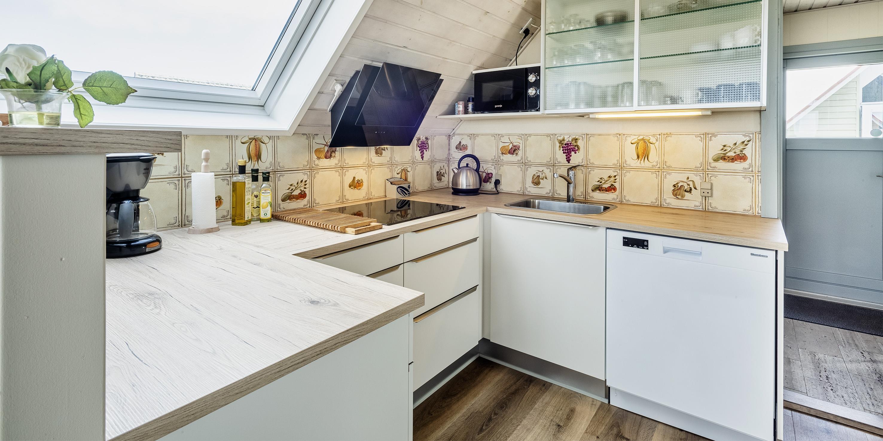 Indeholder: Entre indgang fra gårdhaven. Herfra er der adgang til huset opholdsrum med loft til kip og med store panoramavinduer. Opholdsrummet fremstår med nyt køkken fra 2020, spisestueafdeling med kig til brændeovnen. Stue med fjernsyn, Chrome cast, parabol (DR programmer) og brændeovn. Opgang til hems med lille stue med kig til vandet. Huset vinkel køkken er med opvaskemaskine, keramisk kogeplade, indbygningsovn, mikroovn og køleskab. Badeværelse med bruser/wc. 1 soveværelse med 1 dobbeltseng (fra 2021) og 1 soveværelse med 1 køjeseng. Kummefryser. der forefindes en varmepumpe i hovedhuset. Gæstehus: 1 soveværelse med 2 enkeltsenge samt lille siddehjørne. 3 soveværelser: DS + 2S + 2S. Gæstetoilet med vaskemaskine. Trådløs internet. Delvis lukket terrasse samt gårdhave. Husdyr er ikke tilladt - dog med undtagelse af én lille hund! byggeår 1962, renoveret 2020.