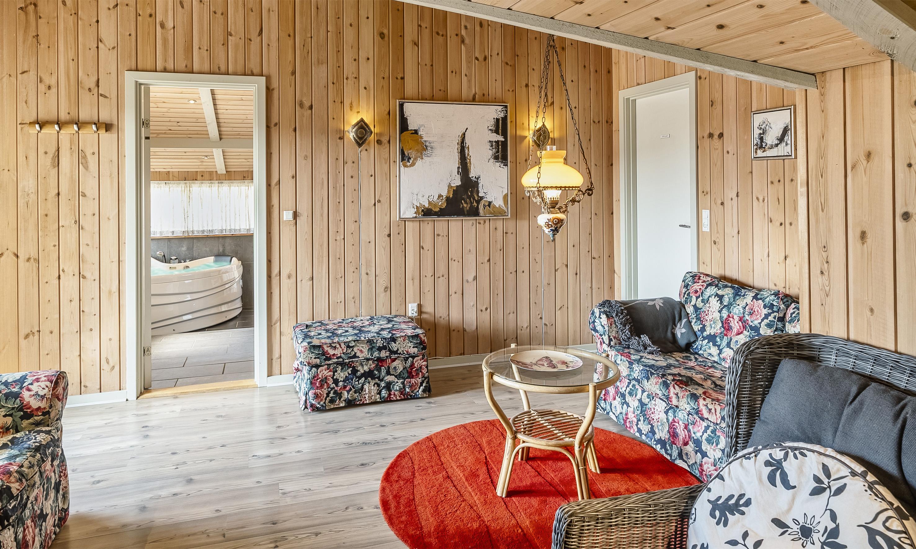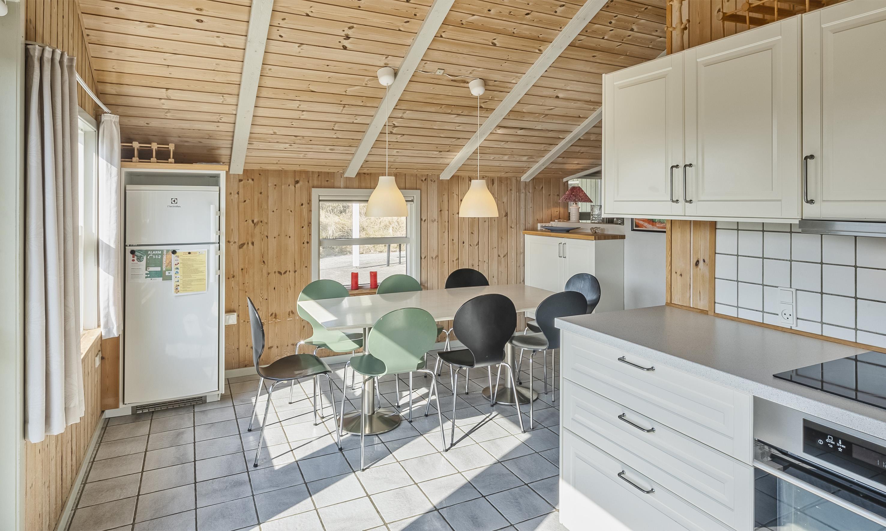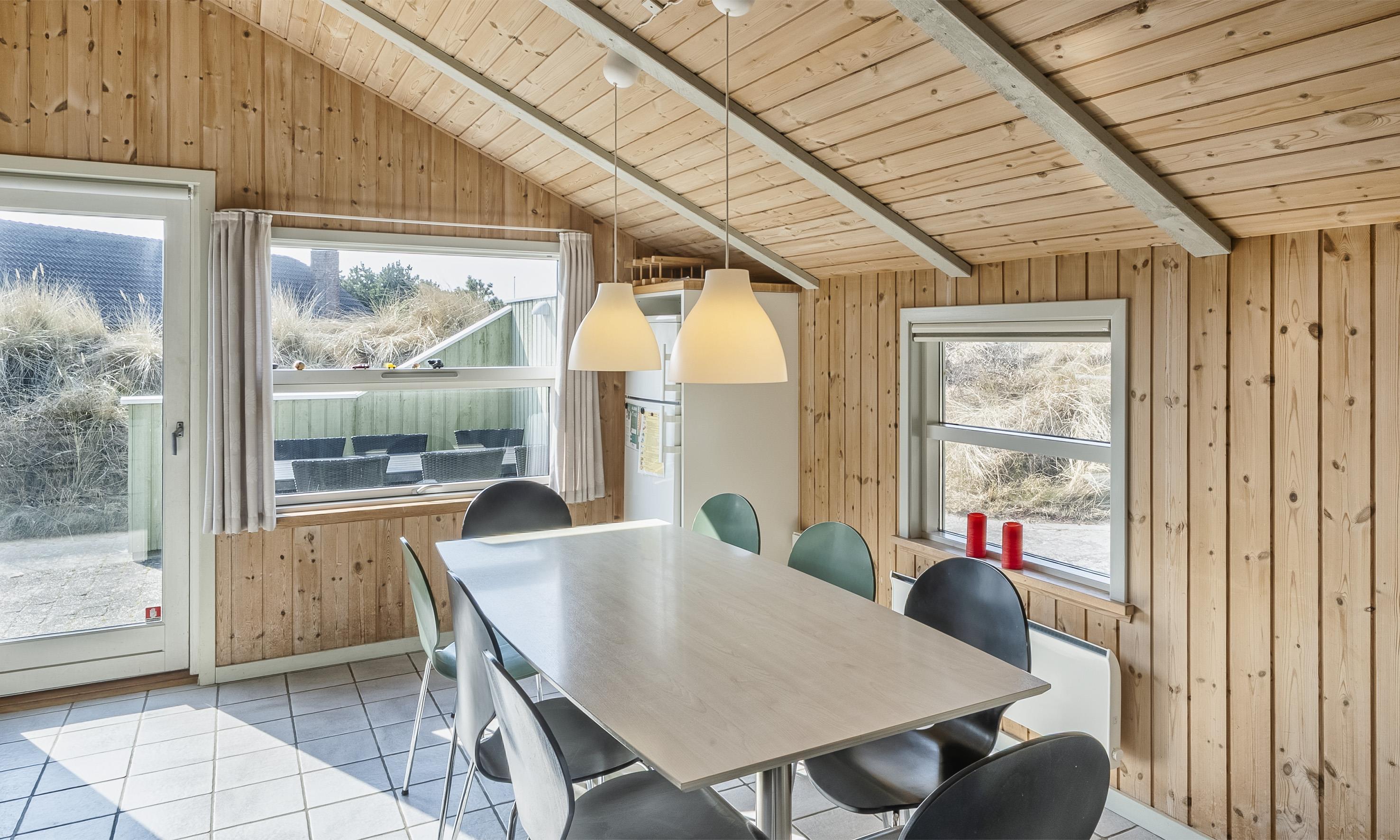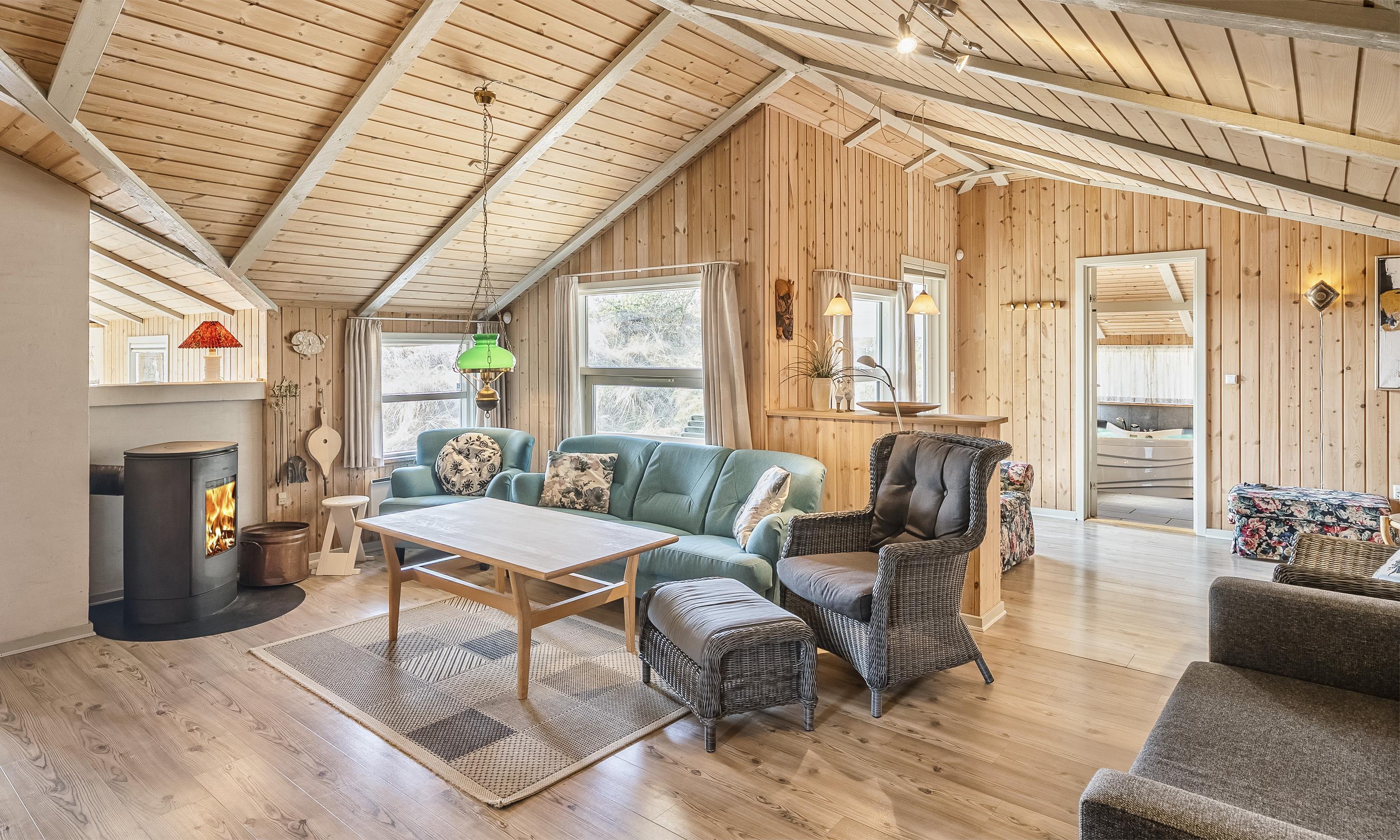 Meget flot sommerhus til 6 personer, beliggende på naturskøn klitgrund, ca. 200 meter fra stranden. Stue med brændeovn, Smart-Tv, parabol (DR programmer (7 styk)) og DVD-afpiller samt åbent køkken med opvaskemaskine, køle-fryseskab og mikroovn. Badeværelse med bruser/wc, sauna og vaskemaskine samt ekstra badeværelse med bruser/wc, spa. 3 soveværelser: DS + DS + 2S i køje. Gulvvarme i stuen. Rygning er ikke tilladt i huset. Delvis lukket terrasse. Trådløs Internetadgang (25/25). Byggeår 1988, renoveret 2009.