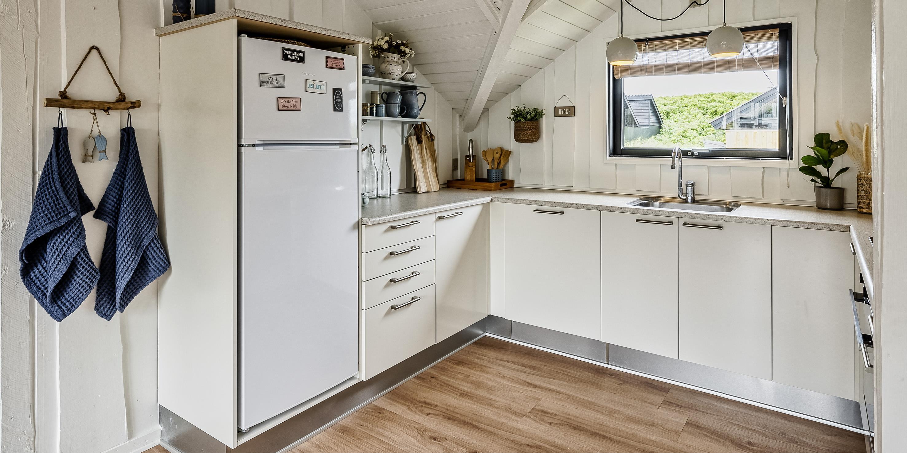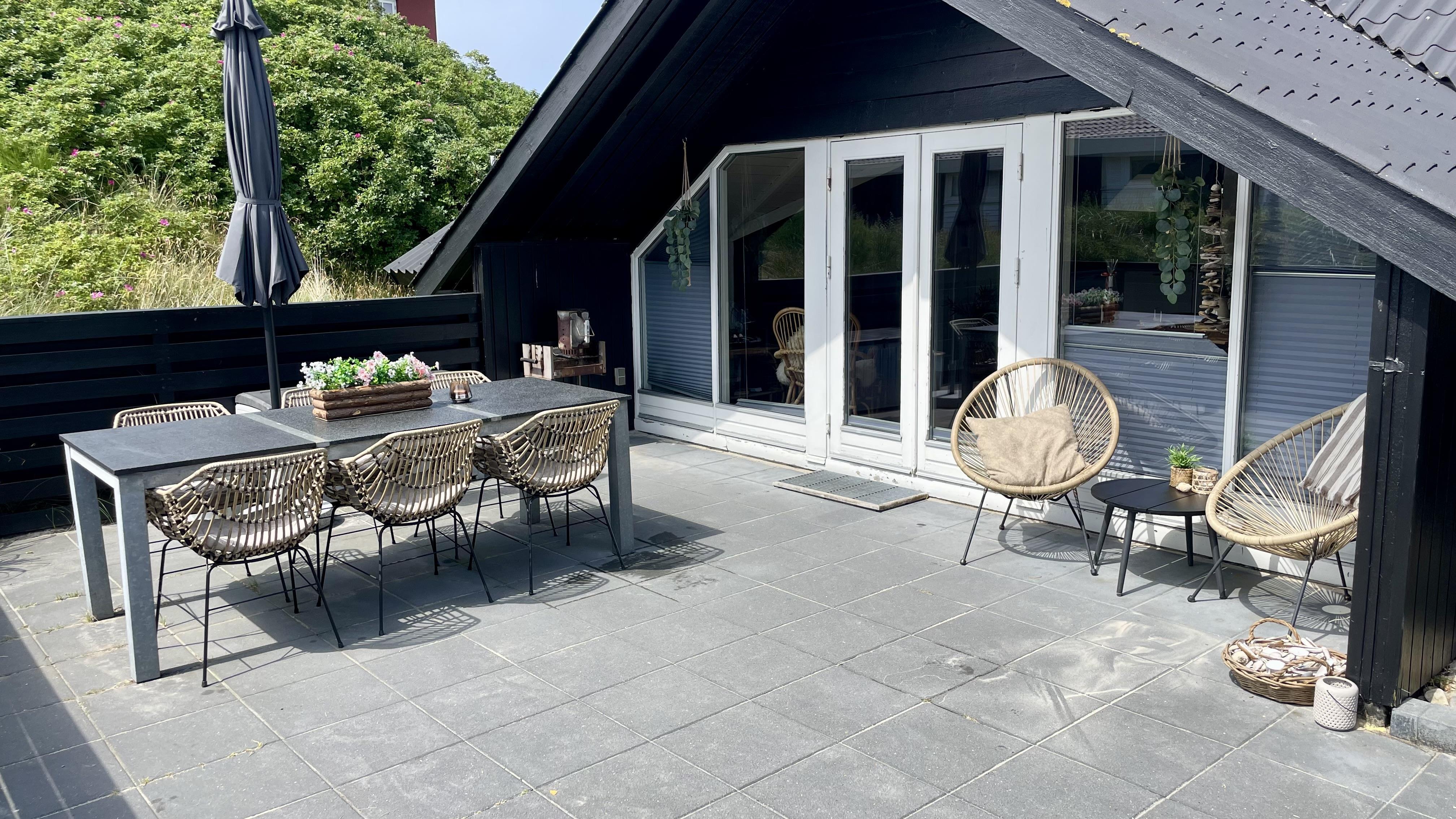 Hyggeligt sommerhus til 6 personer, beliggende på en lille natur grund i læ af klitterne, ca. 200 meter fra stranden. Stue med fjernsyn med Stofa sommerhuspakke, parabol og brændeovn. Trådløs internet. Spiseplads med udkik til terrassen. Nyere lyst køkken med opvaskemaskine, mikroovn og køle-/frysekombination. Badeværelse med bruser/wc samt gulvvarme. 3 soveværelser: 2S + 2S + 2S. Terrasse samt lille skur. Gynge til børnene. 1 hund tilladt er. Rygning er ikke tilladt. Byggeår 1975, renoveret 2022.