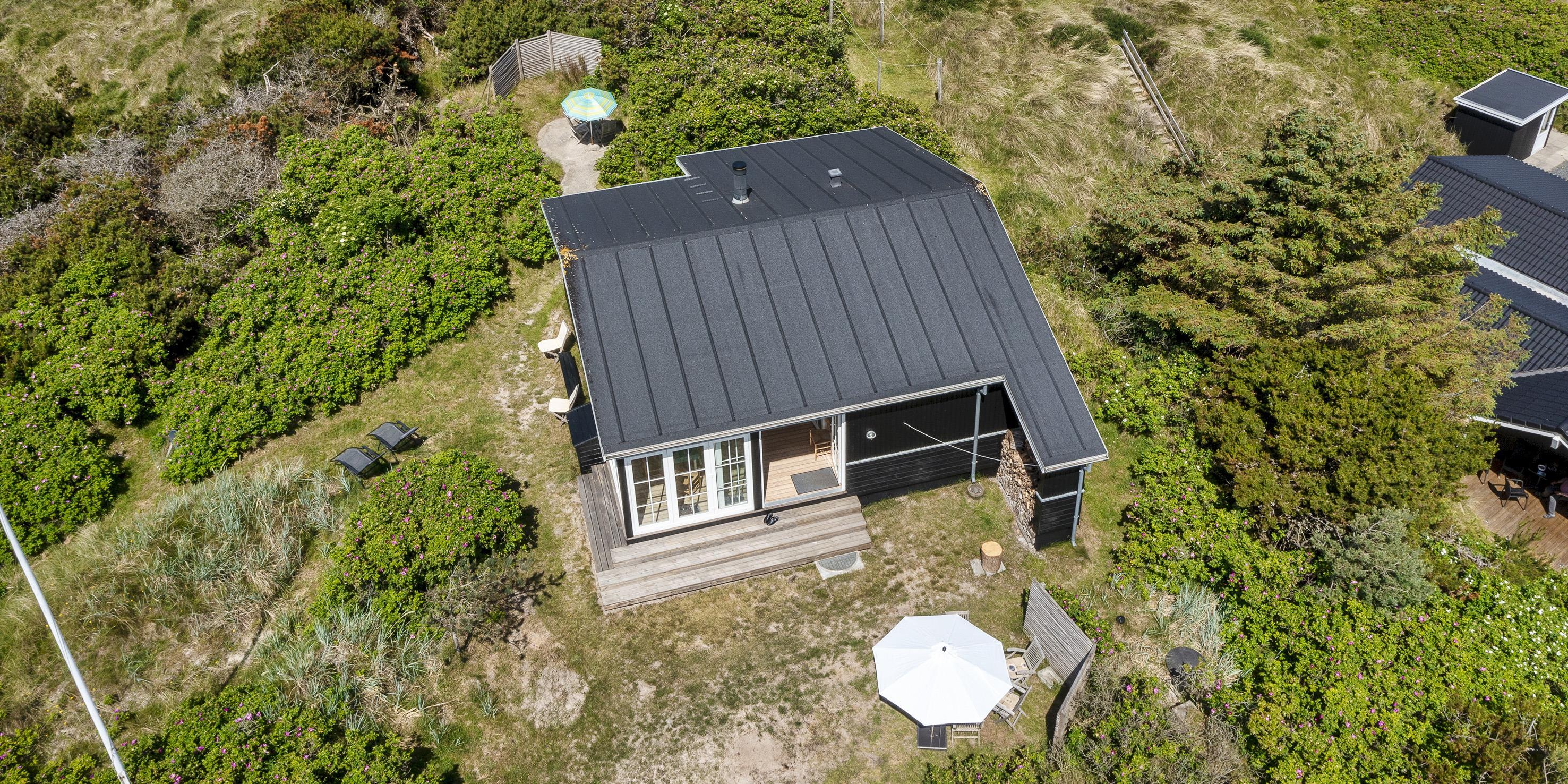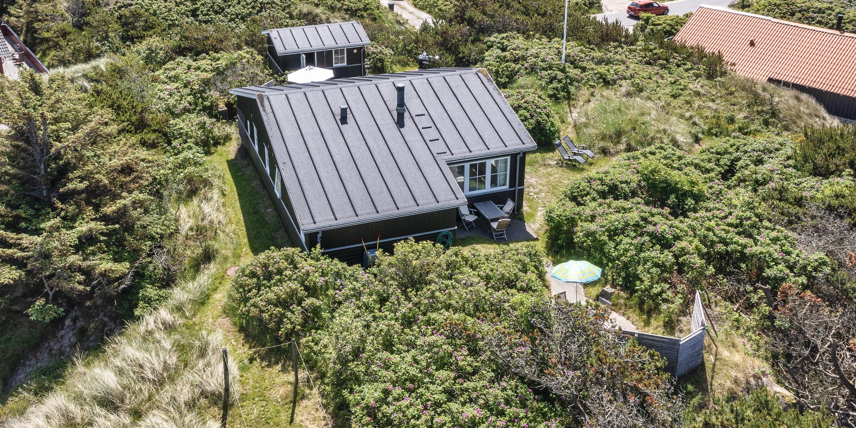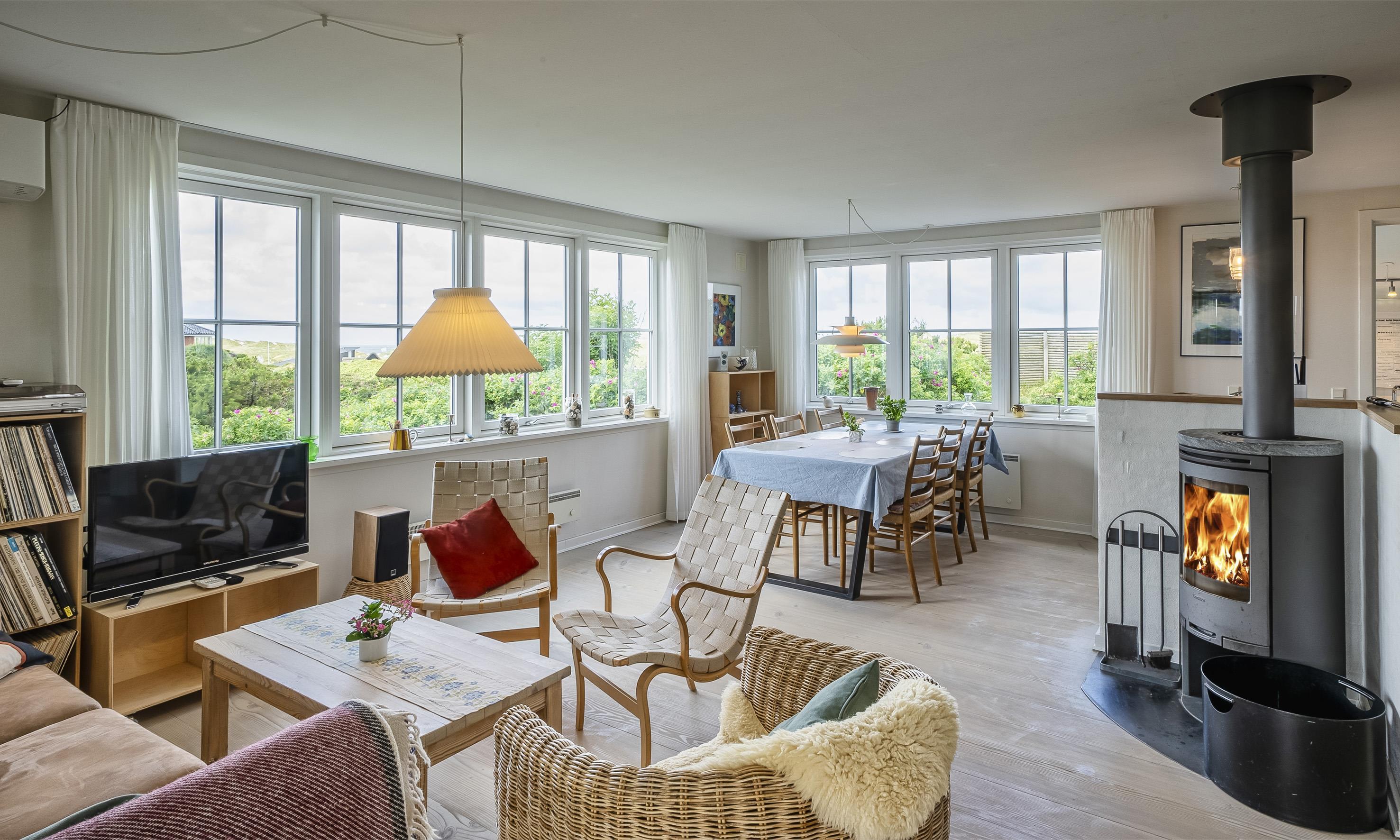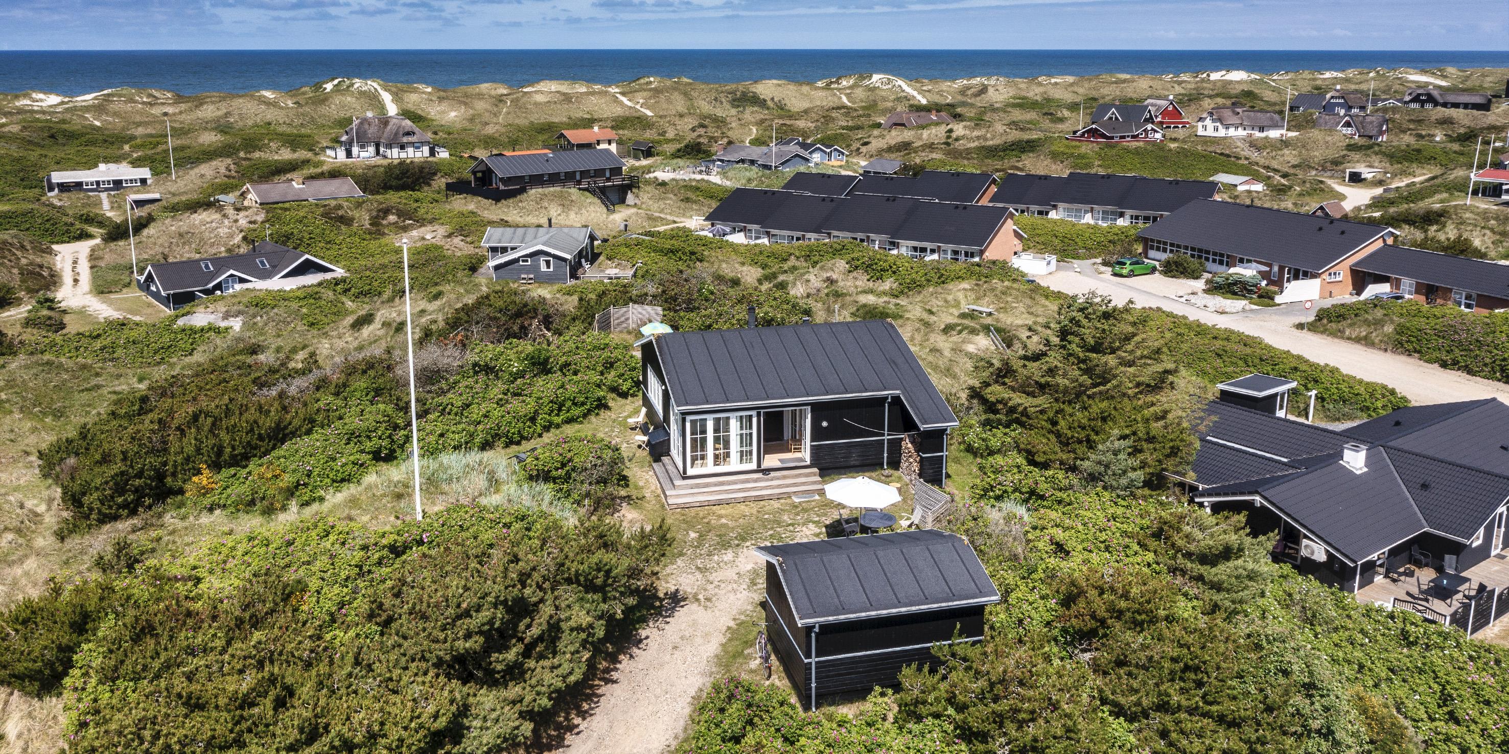 Fuldstændig ugeneret sommerhus "Knolden" til 6 Vejers fan, beliggende på en høj klitgrund ca. 150 meter fra stranden med havudsigt. Havestue med store skydedøre. Stor stue med brændeovn, grammofon og fjernsyn med parabol samt Chromecast. DR-programmerne kan tages over Wifi.(chromecast) Trådløs internetadgang (wi-fi). Varmepumpe. Køkken alrum med spiseplads, opvaskemaskine, ovn, keramisk kogeplade og køleskab. Lille fryser i udhuset. 3 soveværelser: DS + DS + 2S. Grovkøkken med vaskemaskine og udgang til terrasse. Badeværelse med bruser/wc og stor skydeskab. Rummelig udhus (17 m2) med sauna, tørretumler og en ekstra lille fryser. Udvendig terrasse med koldtvandsbruser (må kun benyttes om sommeren) Flere læ kroge som terrasse omkring huset. Rygning er ikke tilladt. Hdmi indgang til computer samt en printer på fjernsynet. Der er to cykler til fri afbenyttelse.