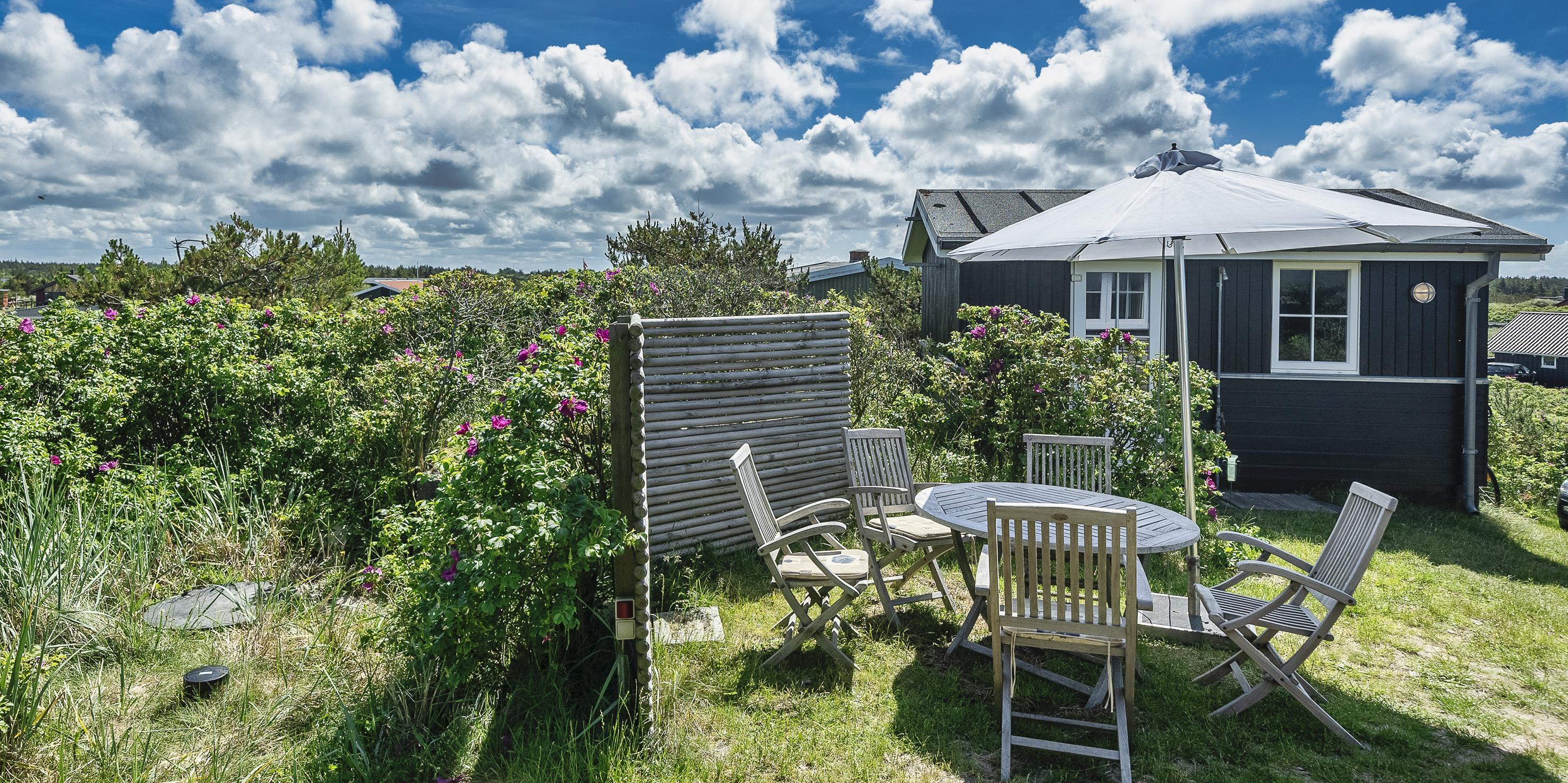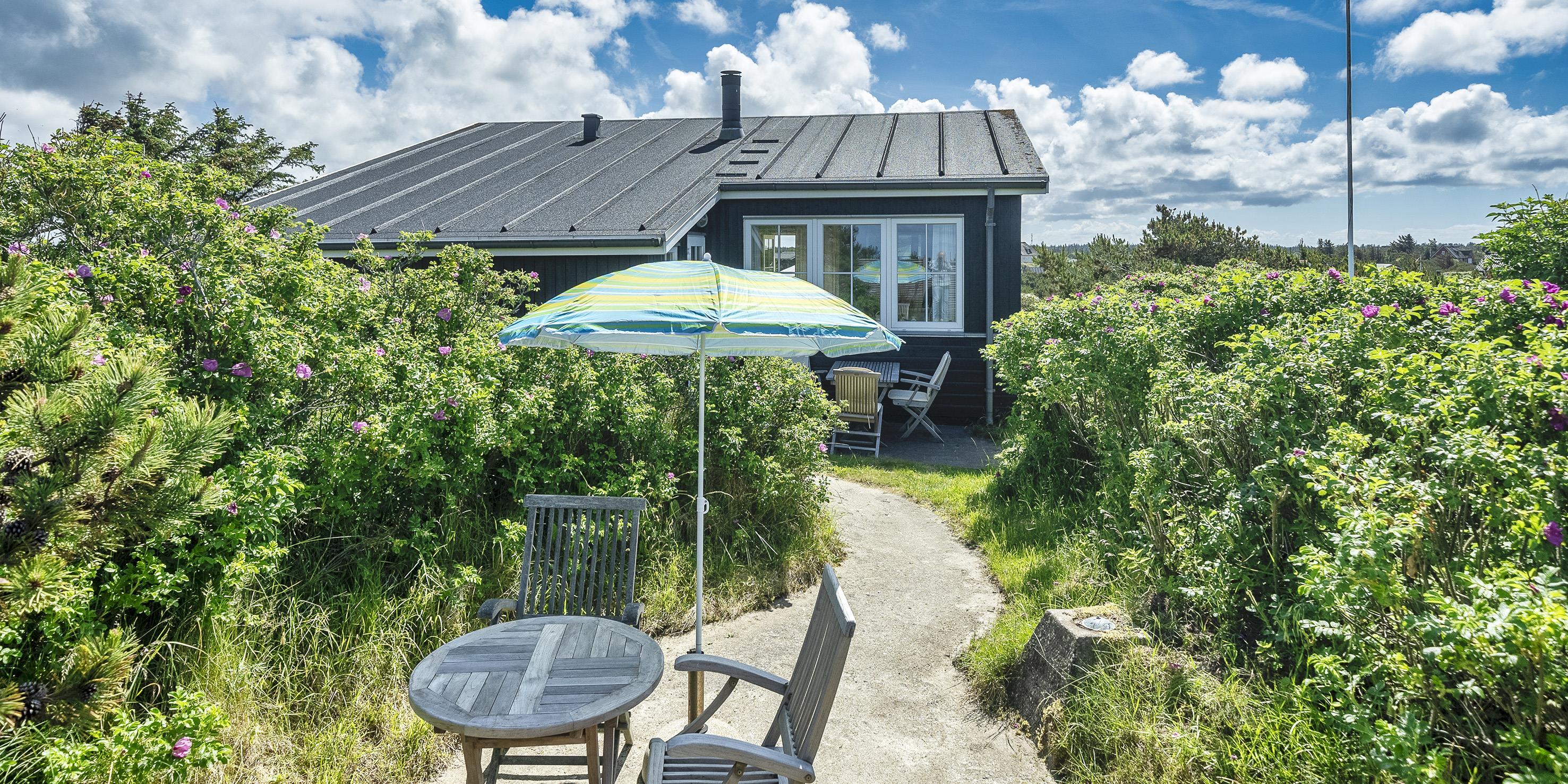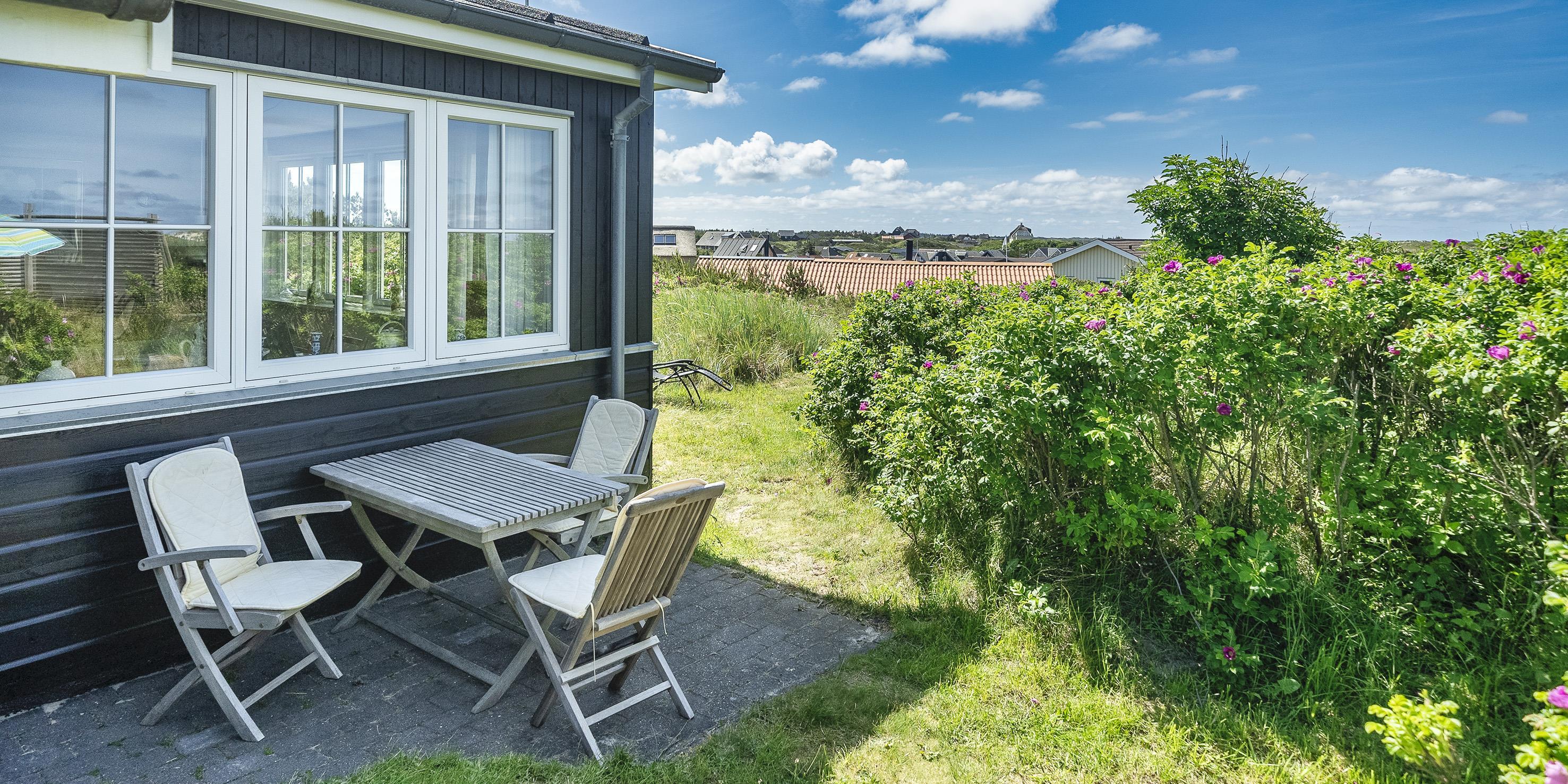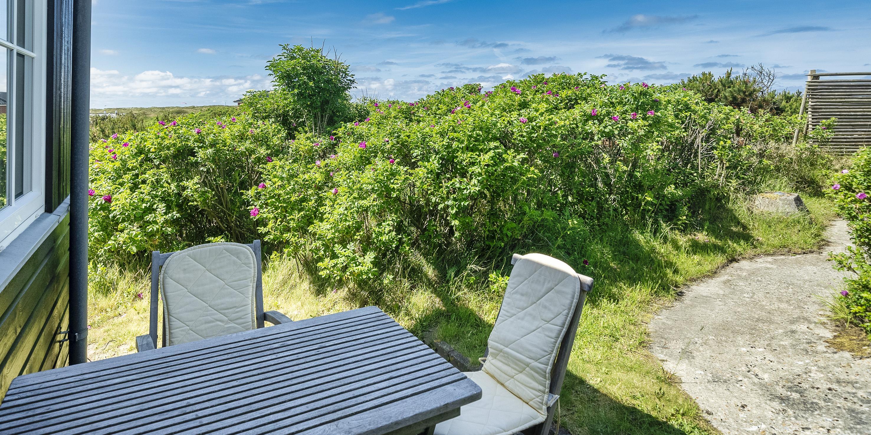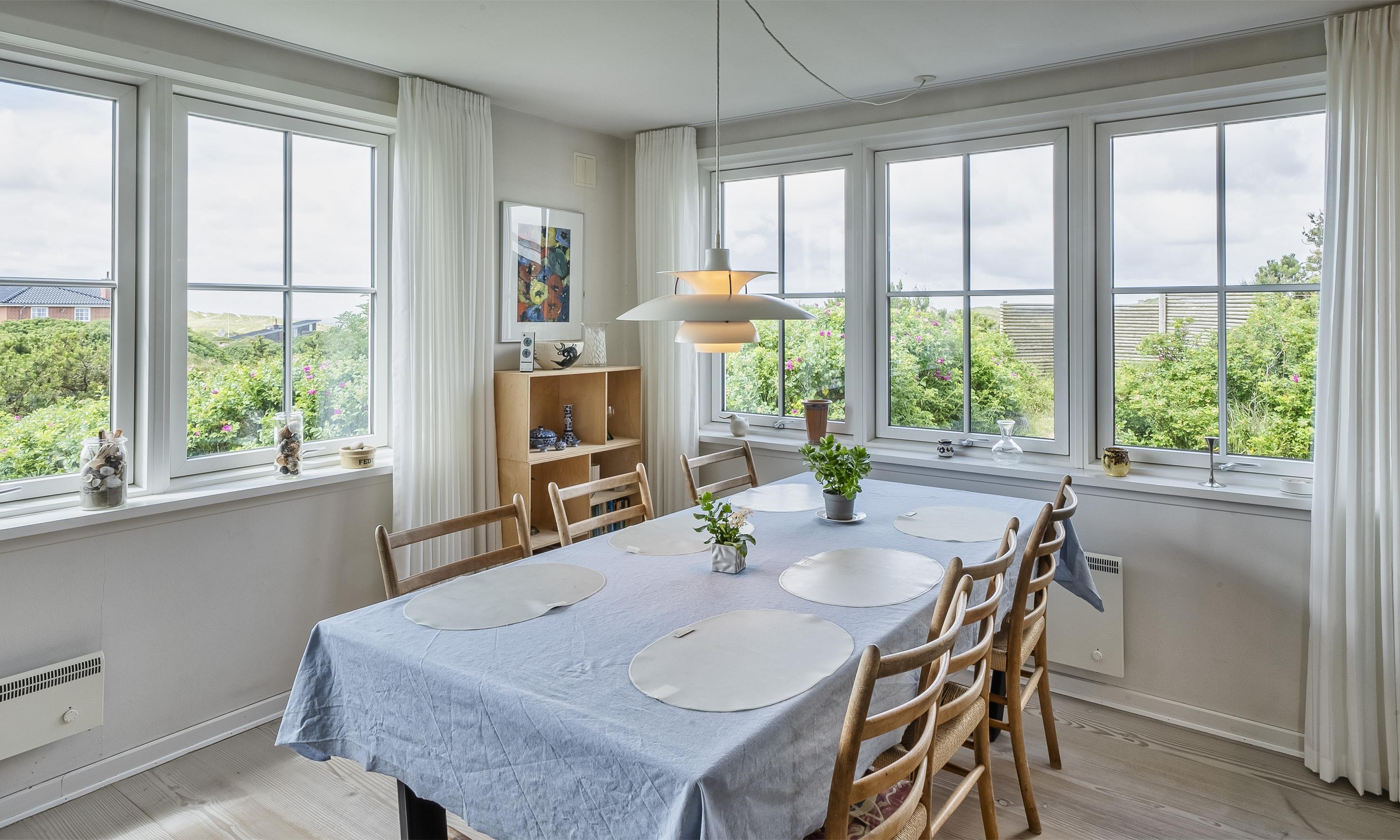 Fuldstændig ugeneret sommerhus "Knolden" til 6 Vejers fan, beliggende på en høj klitgrund ca. 150 meter fra stranden med havudsigt. Havestue med store skydedøre. Stor stue med brændeovn, grammofon og fjernsyn med parabol samt Chromecast. DR-programmerne kan tages over Wifi.(chromecast) Trådløs internetadgang (wi-fi). Varmepumpe. Køkken alrum med spiseplads, opvaskemaskine, ovn, keramisk kogeplade og køleskab. Lille fryser i udhuset. 3 soveværelser: DS + DS + 2S. Grovkøkken med vaskemaskine og udgang til terrasse. Badeværelse med bruser/wc og stor skydeskab. Rummelig udhus (17 m2) med sauna, tørretumler og en ekstra lille fryser. Udvendig terrasse med koldtvandsbruser (må kun benyttes om sommeren) Flere læ kroge som terrasse omkring huset. Rygning er ikke tilladt. Hdmi indgang til computer samt en printer på fjernsynet. Der er to cykler til fri afbenyttelse.