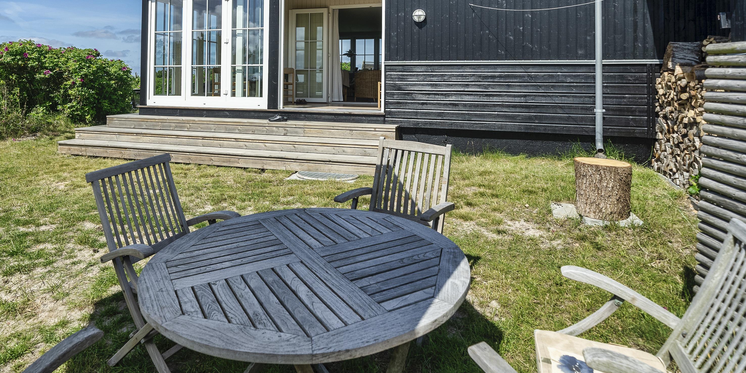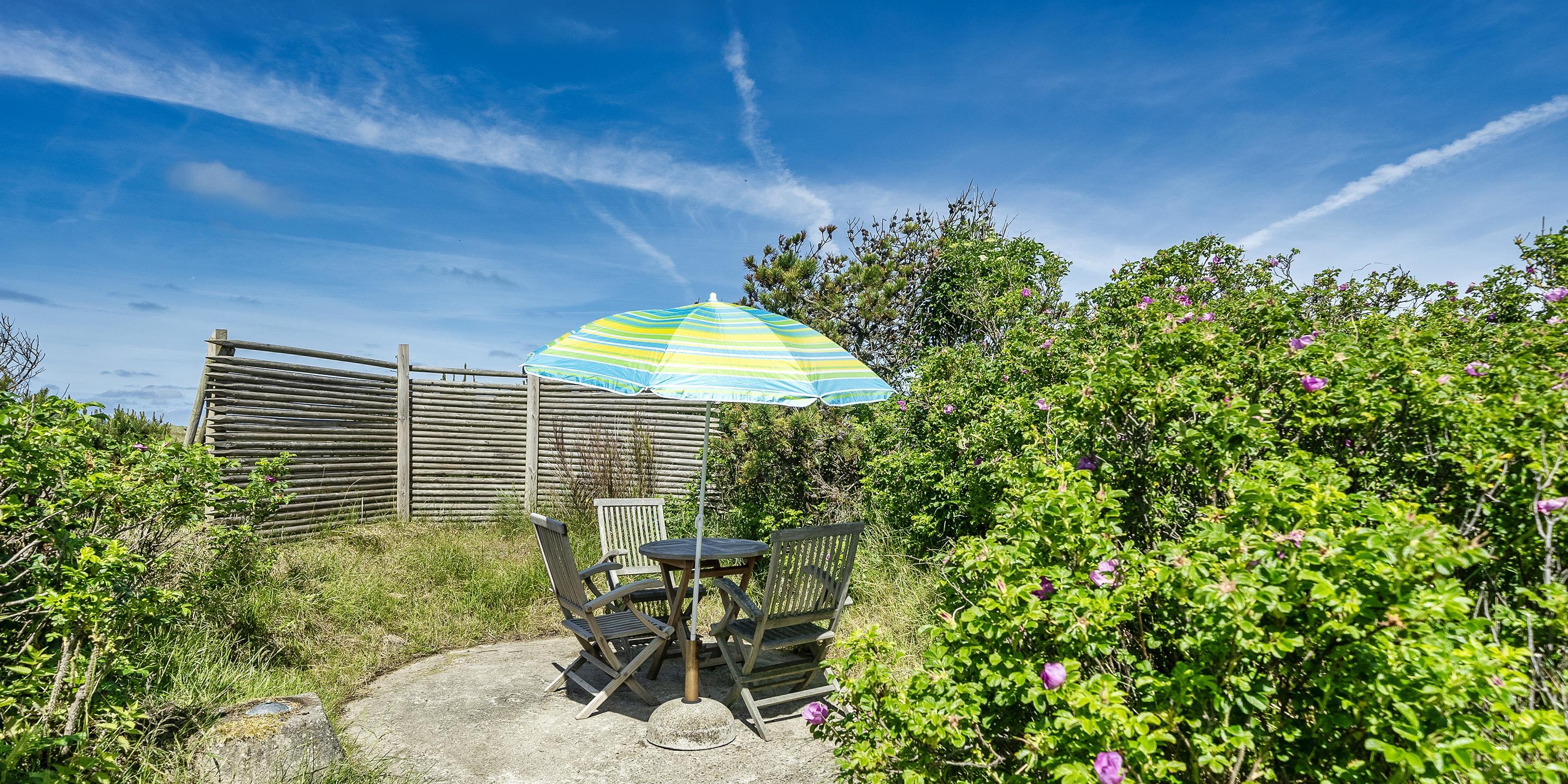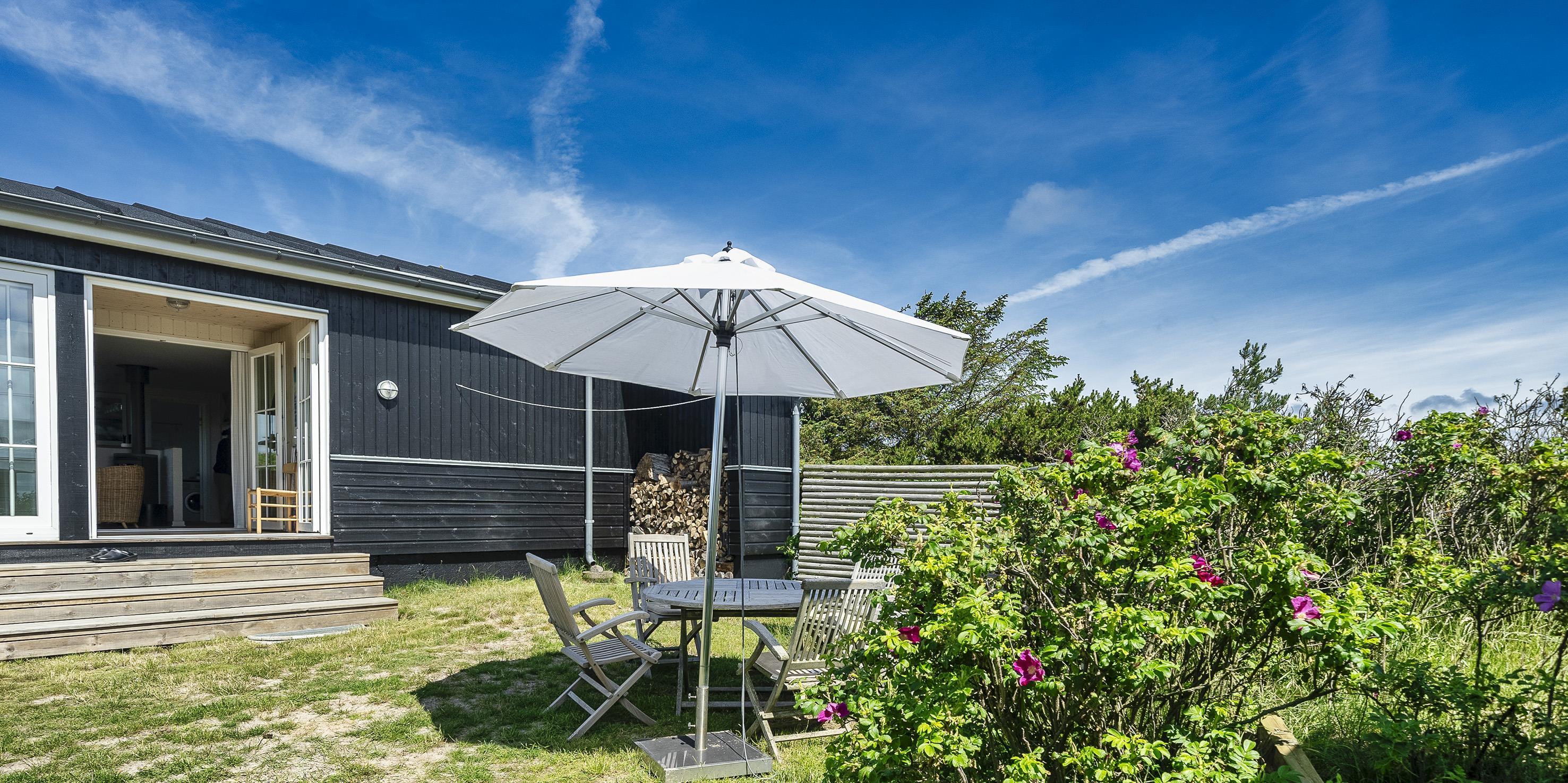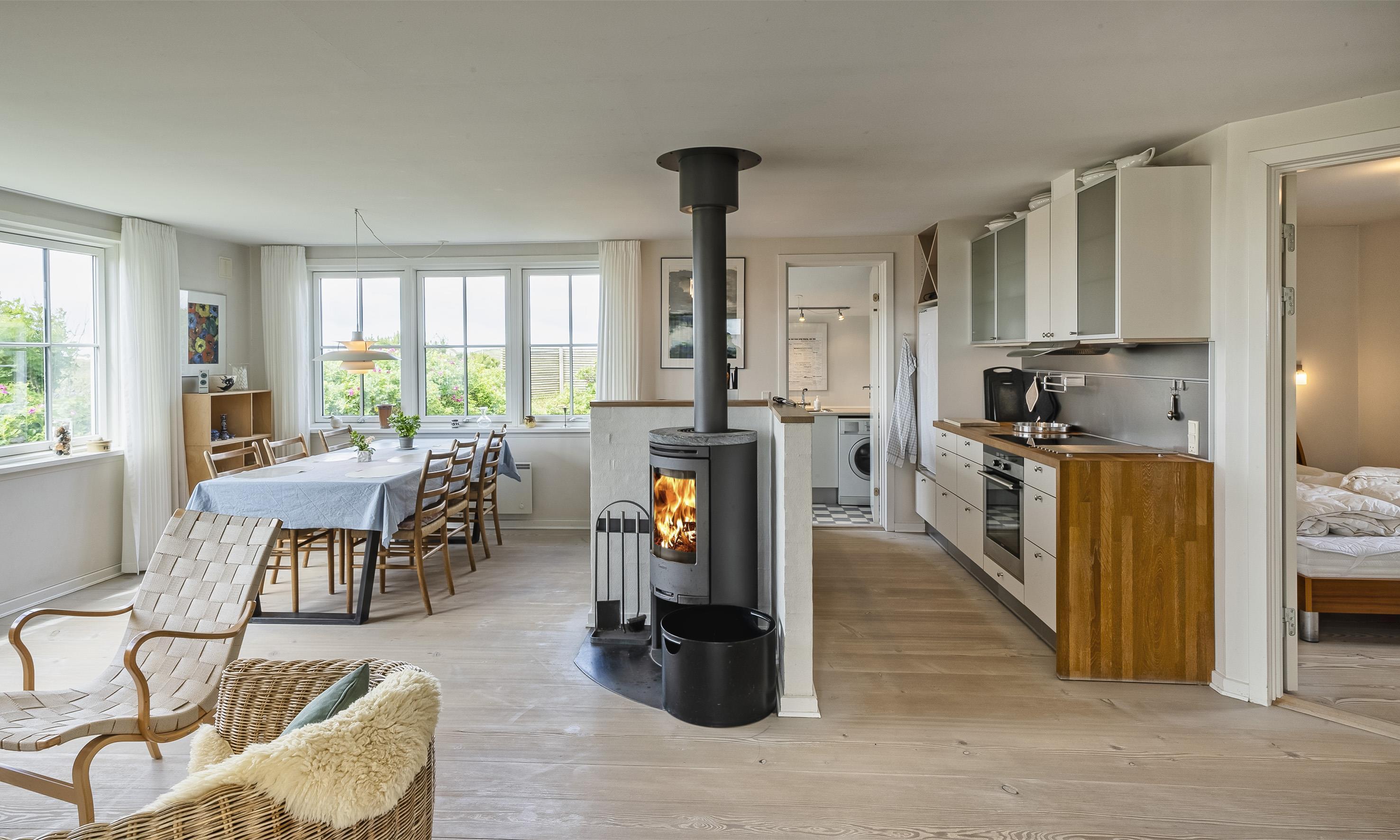 Fuldstændig ugeneret sommerhus "Knolden" til 6 Vejers fan, beliggende på en høj klitgrund ca. 150 meter fra stranden med havudsigt. Havestue med store skydedøre. Stor stue med brændeovn, grammofon og fjernsyn med parabol samt Chromecast. DR-programmerne kan tages over Wifi.(chromecast) Trådløs internetadgang (wi-fi). Varmepumpe. Køkken alrum med spiseplads, opvaskemaskine, ovn, keramisk kogeplade og køleskab. Lille fryser i udhuset. 3 soveværelser: DS + DS + 2S. Grovkøkken med vaskemaskine og udgang til terrasse. Badeværelse med bruser/wc og stor skydeskab. Rummelig udhus (17 m2) med sauna, tørretumler og en ekstra lille fryser. Udvendig terrasse med koldtvandsbruser (må kun benyttes om sommeren) Flere læ kroge som terrasse omkring huset. Rygning er ikke tilladt. Hdmi indgang til computer samt en printer på fjernsynet. Der er to cykler til fri afbenyttelse.