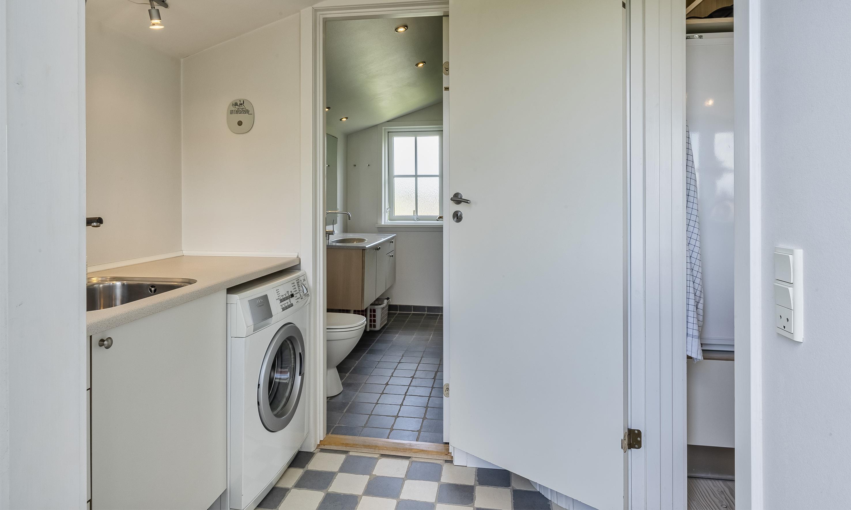 Bad med toilet, bruser og vask