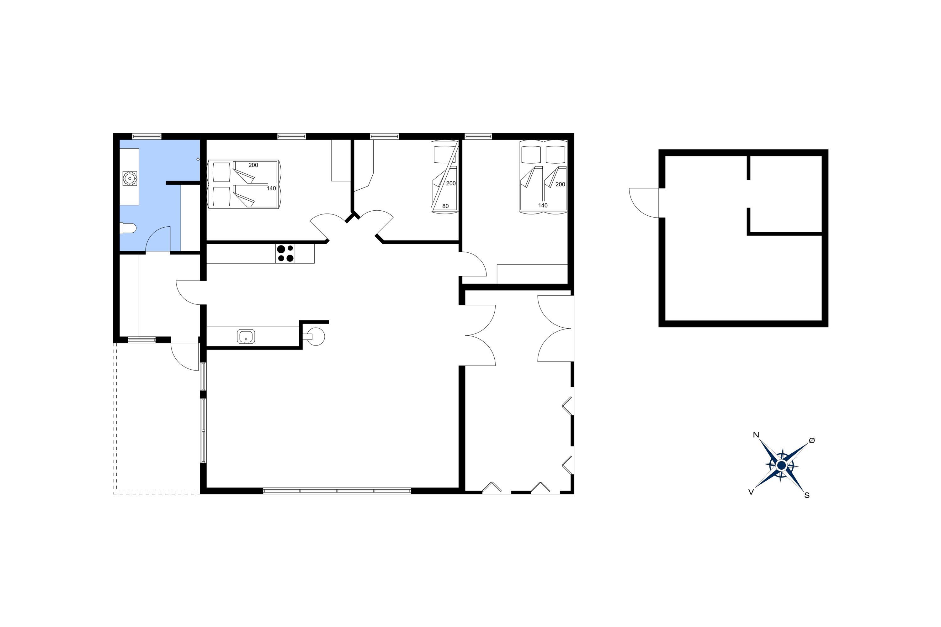 - Afstand til restaurant 200 m