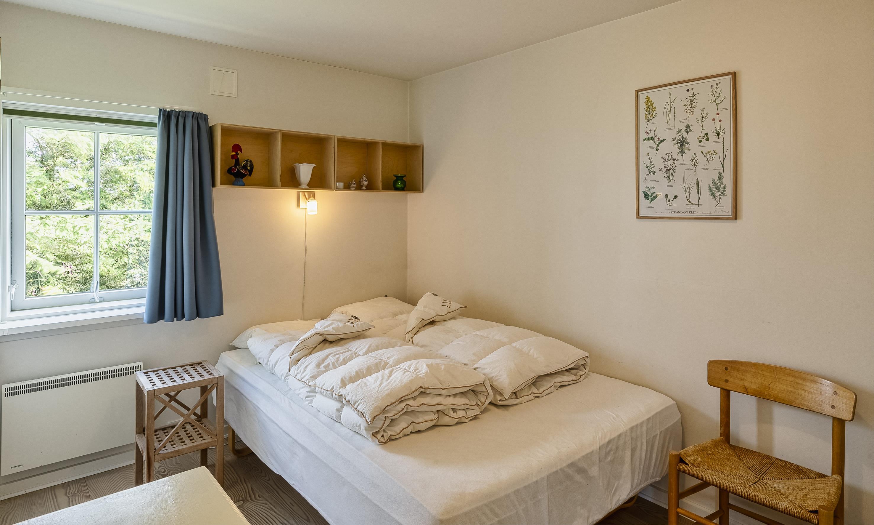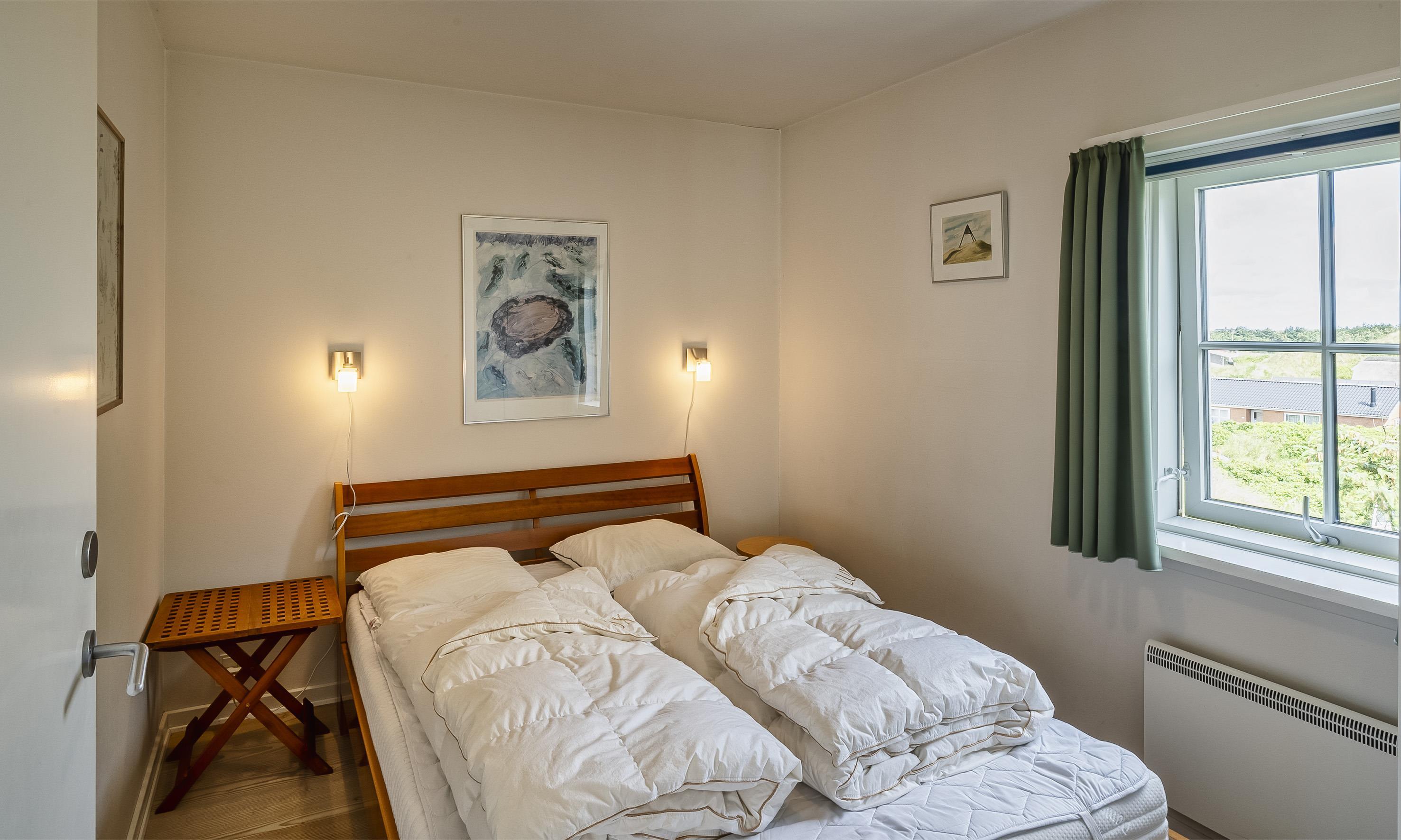 3 soveværelser. 1 med dobbeltseng 140x200 cm. 1 med dobbeltseng 160x200 cm. 1 med køjeseng