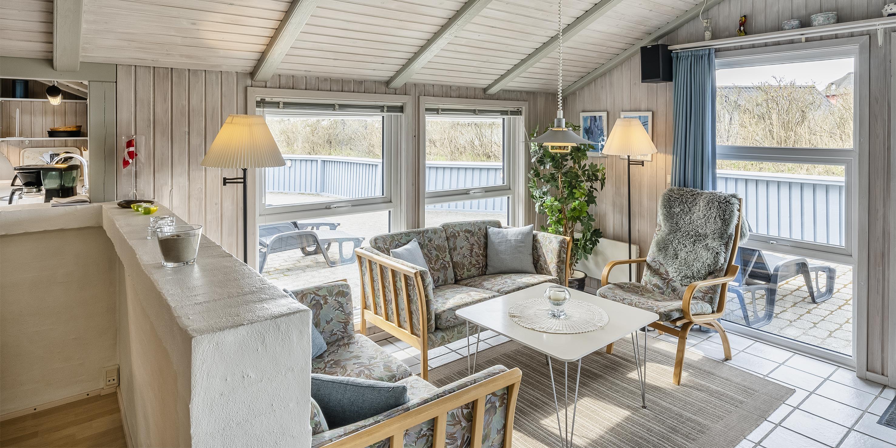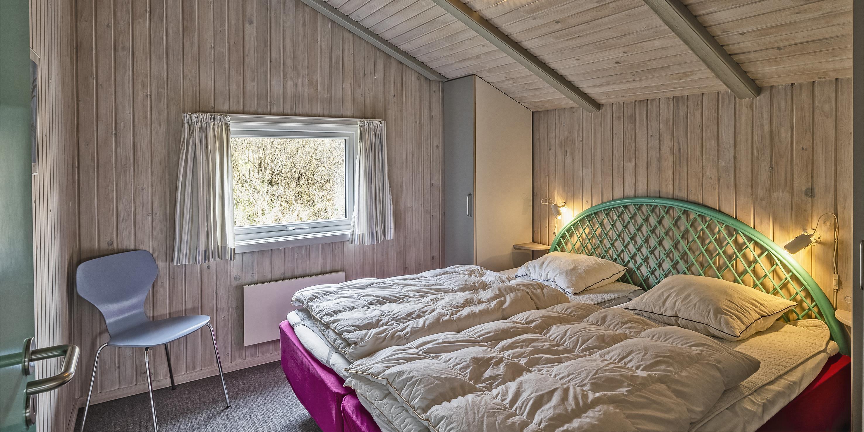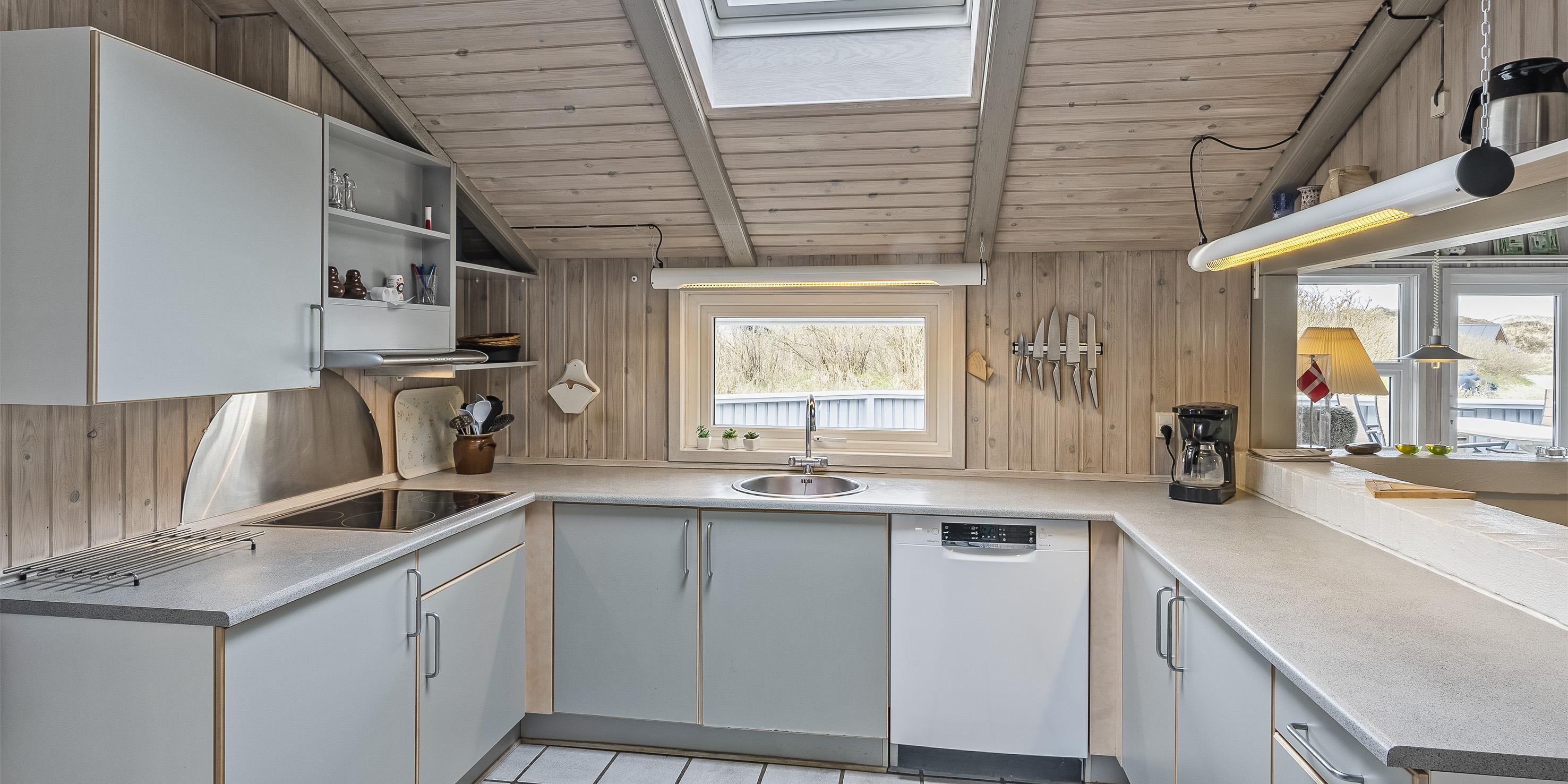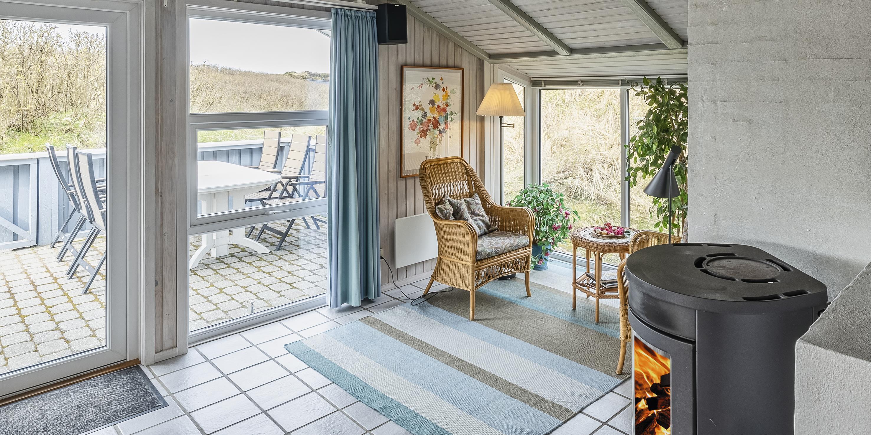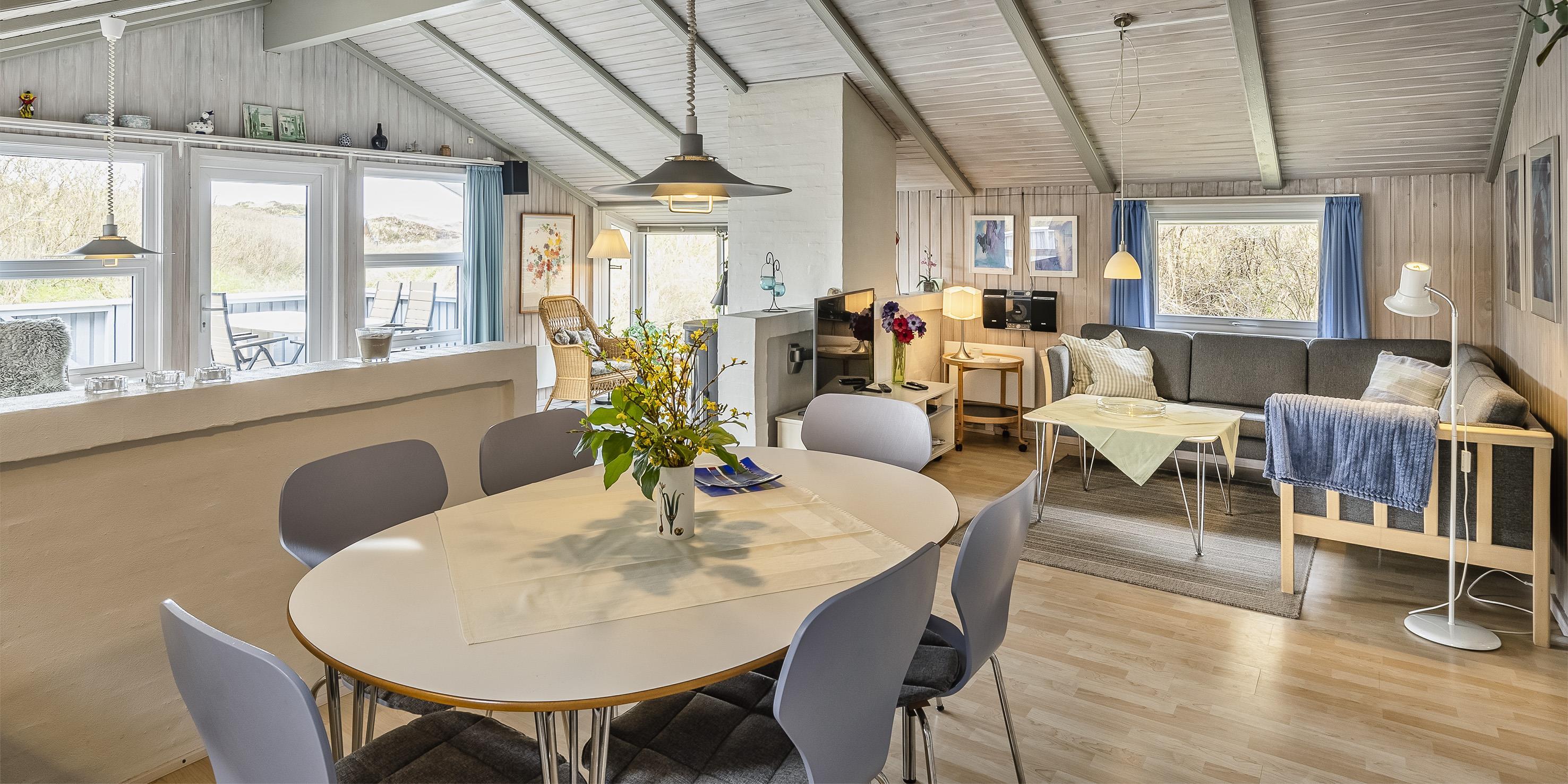 Smagfuldt sommerhus til 6 personer, beliggende på naturskøn klitgrund, ca. 150 meter fra stranden. Køkken med opvaskemaskine og køle-/ frysekombination og mikroovn. gulvarme i køkken. Stor stue med brændeovn, fjernsyn og parabol (DR programmer) Smart TV. Trådløs internetadgang. Badeværelse med bruser/wc, standvandsspa og sauna. Gæstetoilet med bruser. Vaskemaskine og tørretumbler. 3 soveværelser: DS + DS + 2S. 2 soveværelser med hver 1 dobbeltseng og 1 soveværelse med 2 enkeltsenge. Huset råder over en varmepumpe. Med denne varmepumpe er der mulighed for at reducere eludgifterne, da den er energibesparende. Stor lukket terrasse. Grund med panoramaudsigt! Rygning er ikke tilladt. Hund er tilladt - Byggeår 1992.