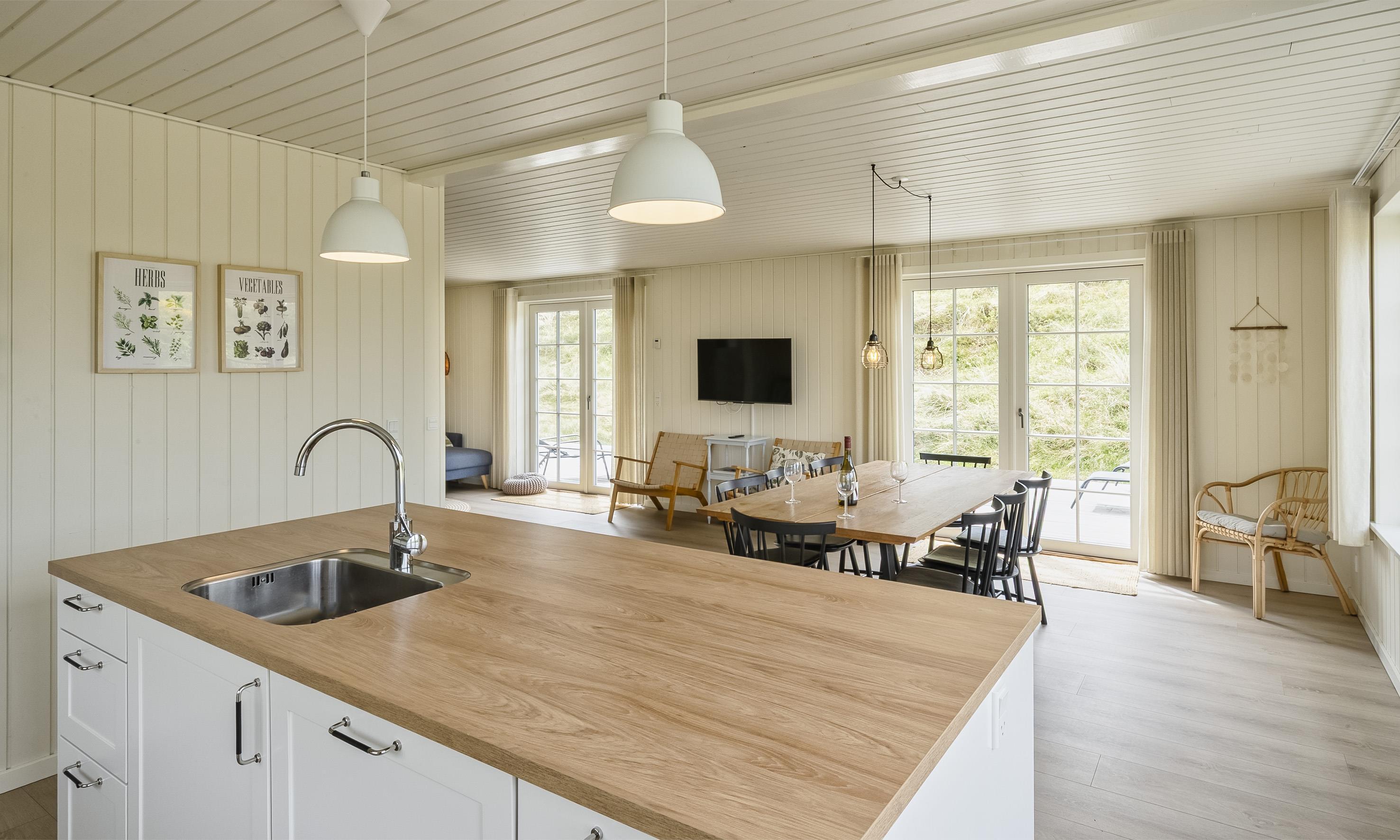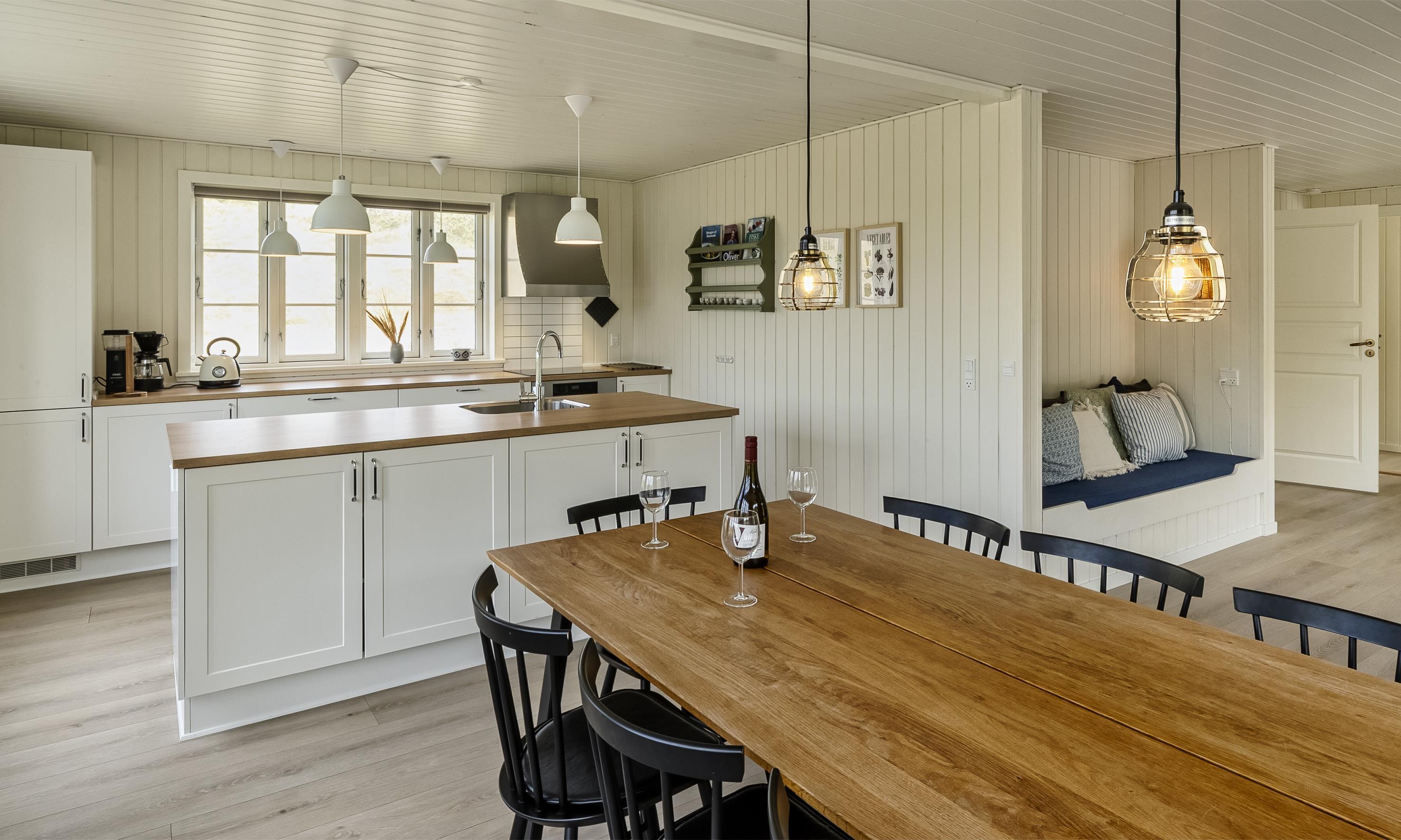 Sommerhuset byder på en skøn atmosfære i en moderne, nordisk stil.