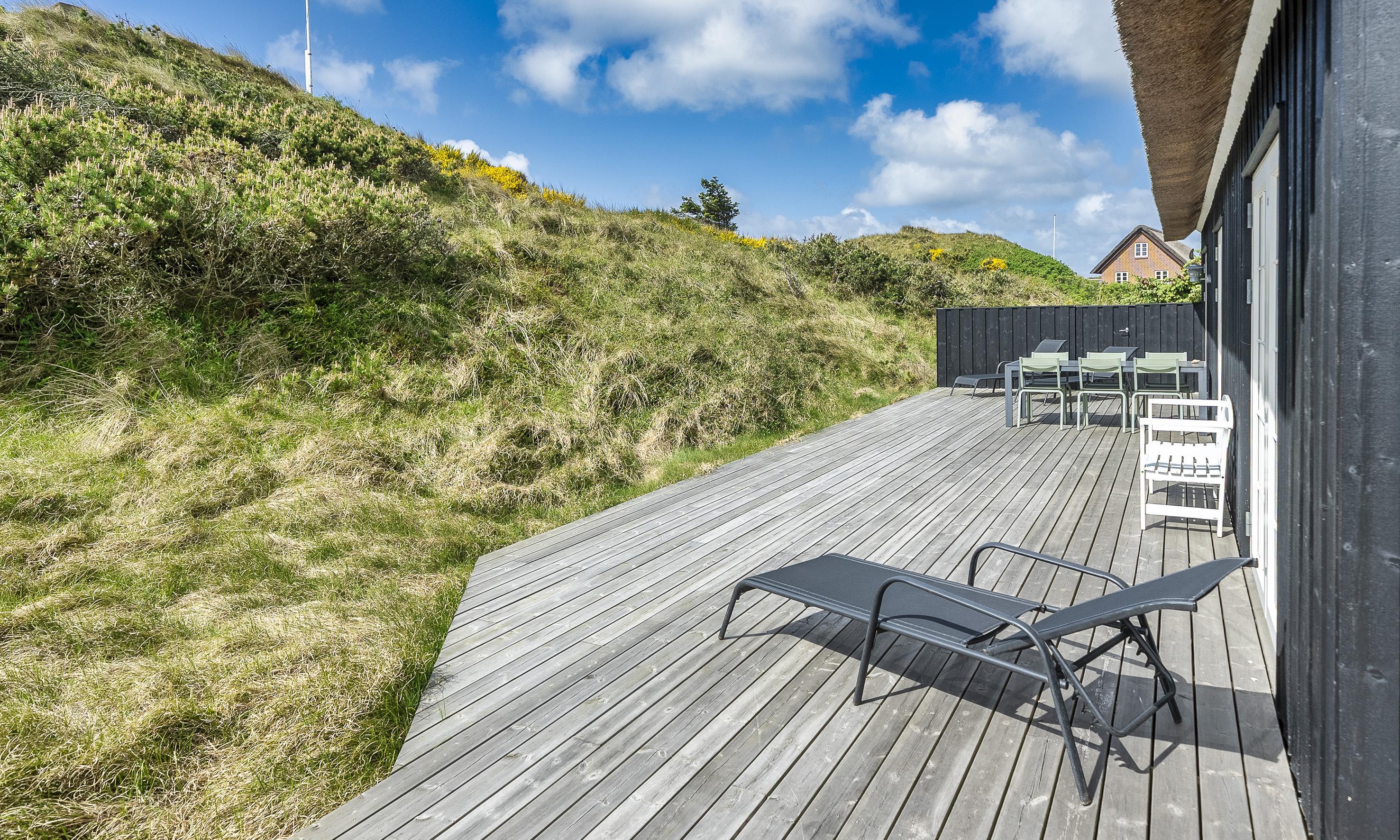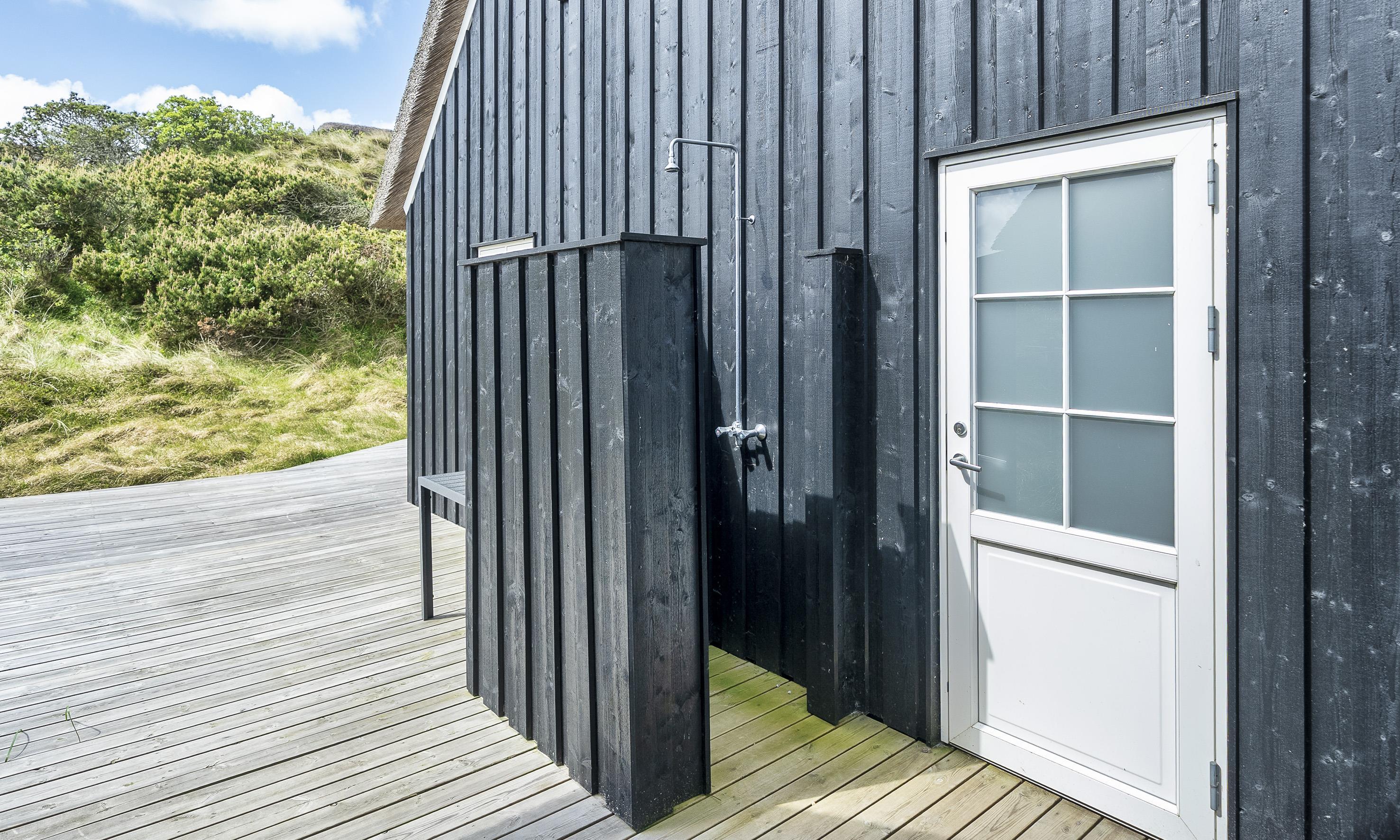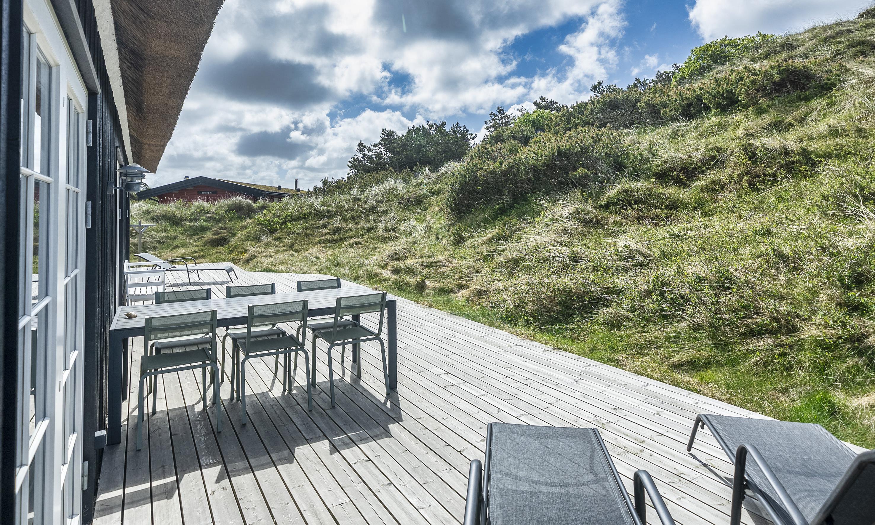 De udvendige faciliteter byder på flotte solnedgange, der kan nydes fra den omkringliggende terrasse. Sommerhuset ligger på en klitgrund, ca. 400 meter fra stranden samt kort afstand til indkøb og restaurant. Grunden grænser op til større fredet naturområde mod nord, hvor man har mulighed for at gå gåture i klitplantagen eller på stranden.