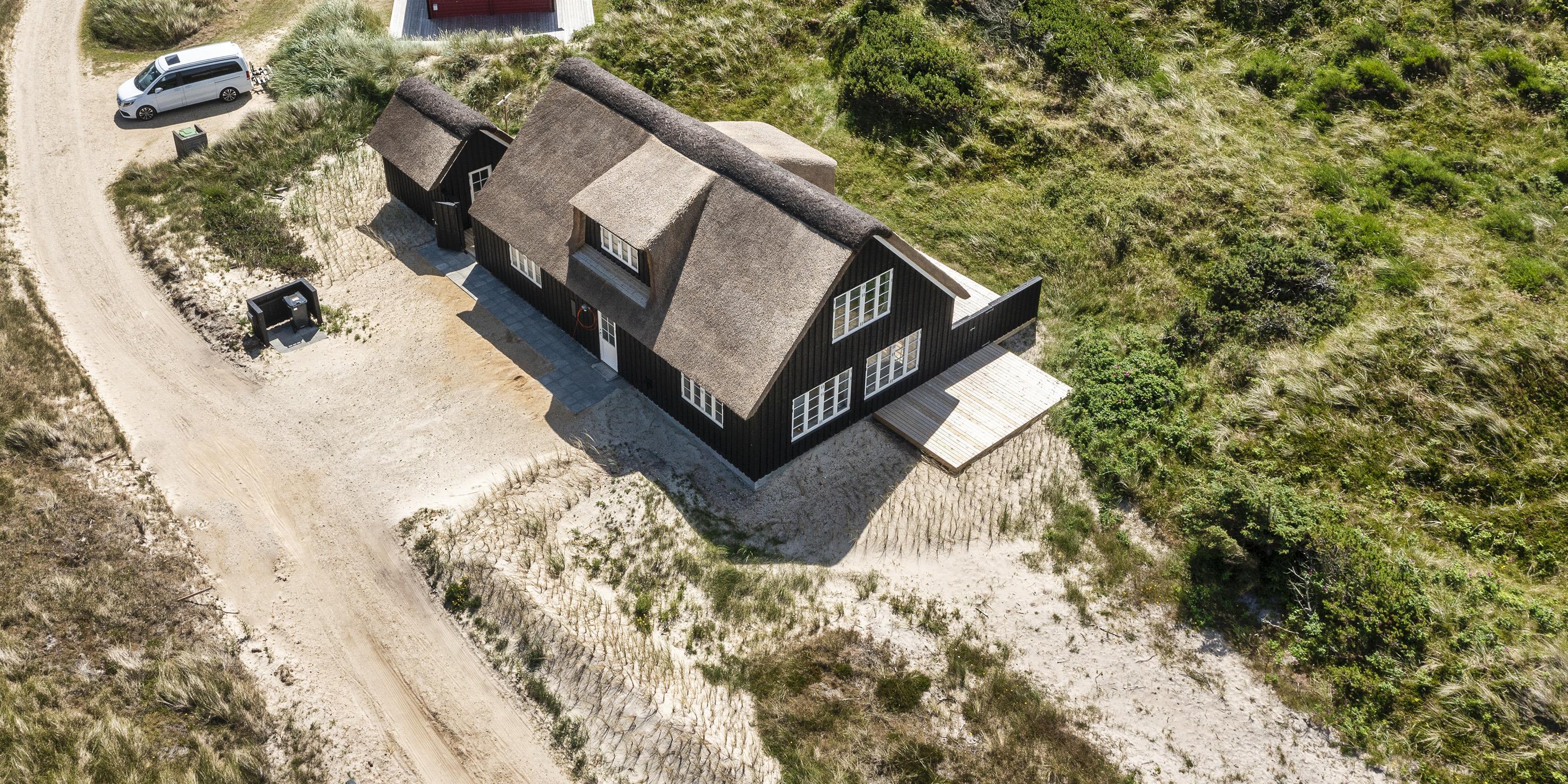Spændende nybygget sommerhus til 8 personer i Vejers Strand. Sommerhuset er bygget i kvalitetsmaterialer, i et moderne og trendy design, som passer godt ind i omgivelserne. Sommerhuset er på i alt 157 m2.