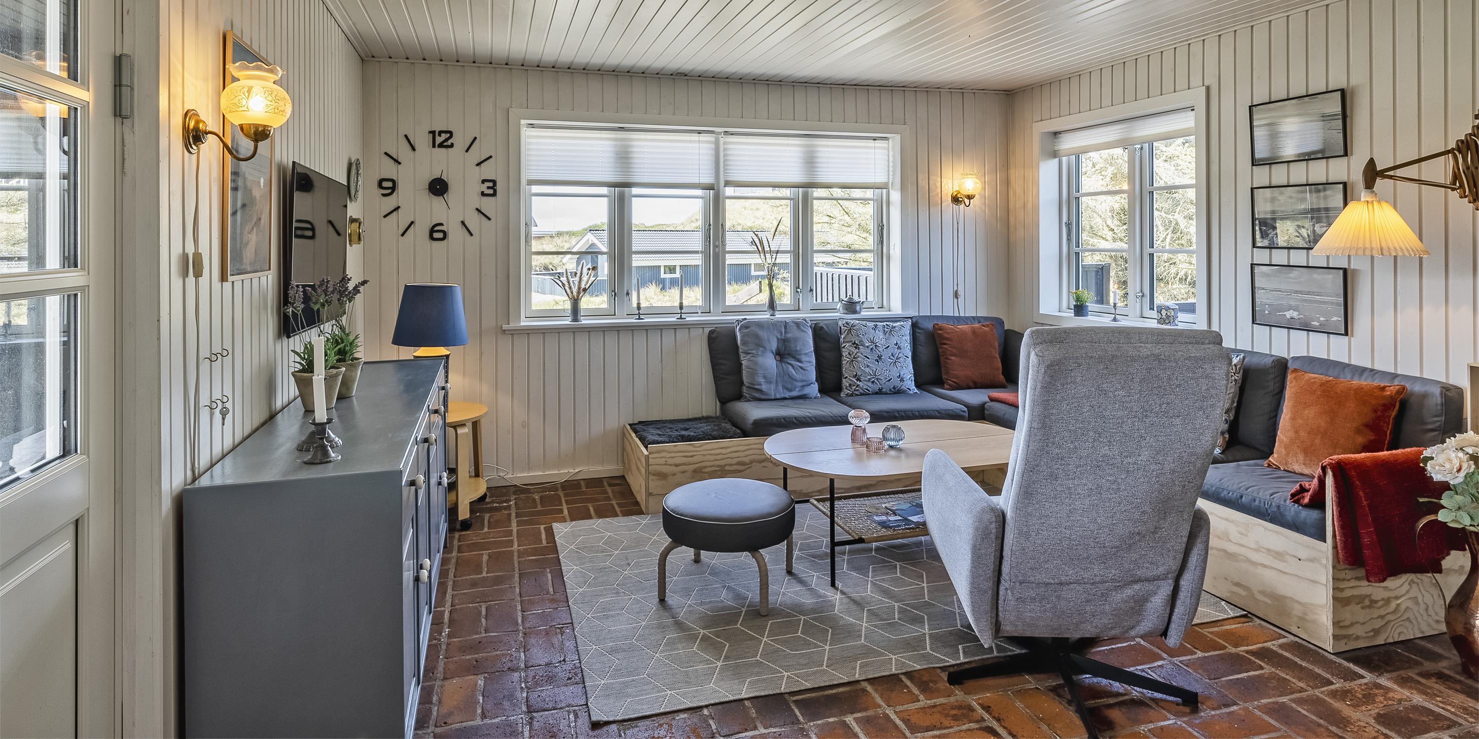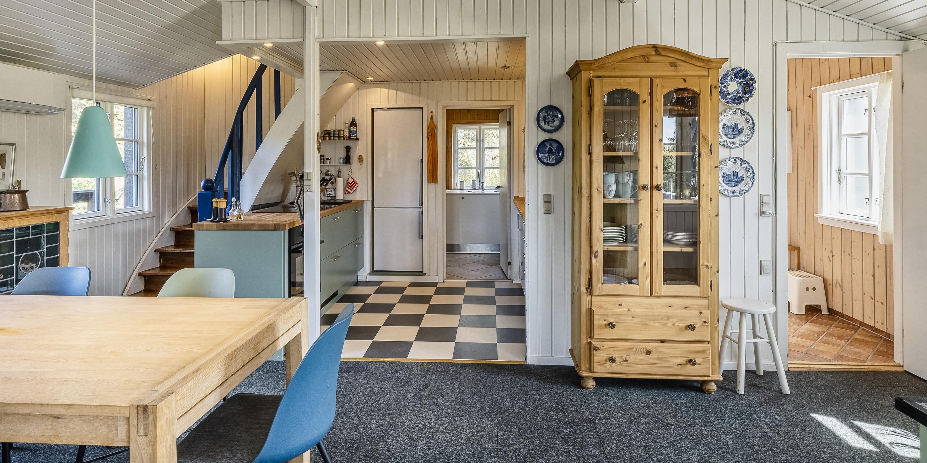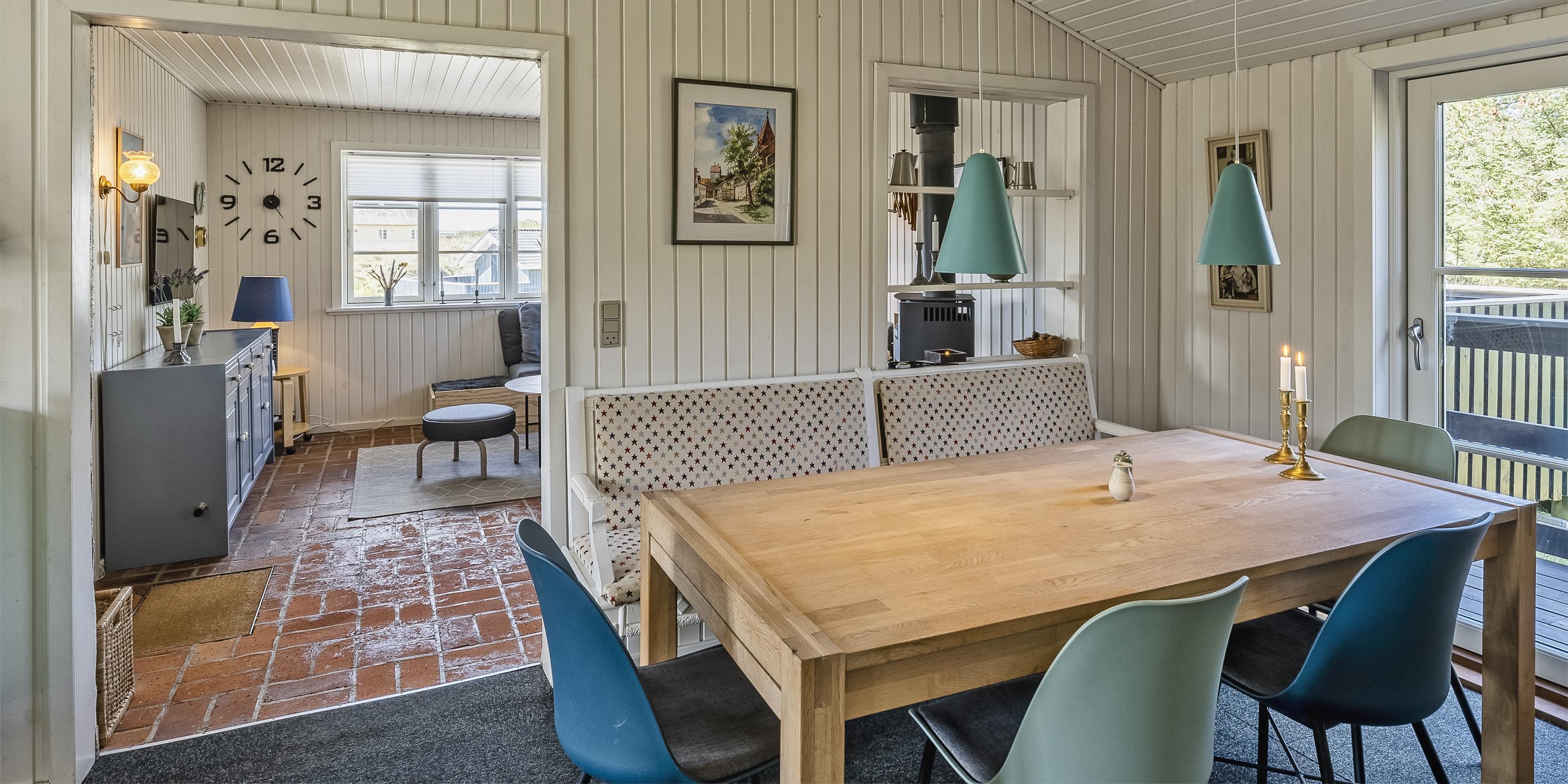 Flot sommerhus i 2 etager til 6 personer, ca. 200 meter fra stranden. Stue med brændeovn, Smart TV og Chromecast. Åbent køkken med opvaskemaskine, Induktions komfur, mikroovn og udgang til vestvendt terrasse. Badeværelse med bruser/wc og badekar. Stort bryggers med håndvask, vaskemaskine og tørretumbler. 1. sal: 2 soveværelser med hver 1 dobbeltseng, heraf et med balkon mod syd samt 1 soveværelse med 2 enkeltsenge. 3 soveværelser: DS + DS + 2S. Gæstetoilet med bruser. Trådløst internetadgang. Katte er ikke tilladt. Rygning ikke tilladt, Varmepumpe. Delvis lukket terrasse mod vest. Byggeår 1940, renoveret 2008 og 2022.