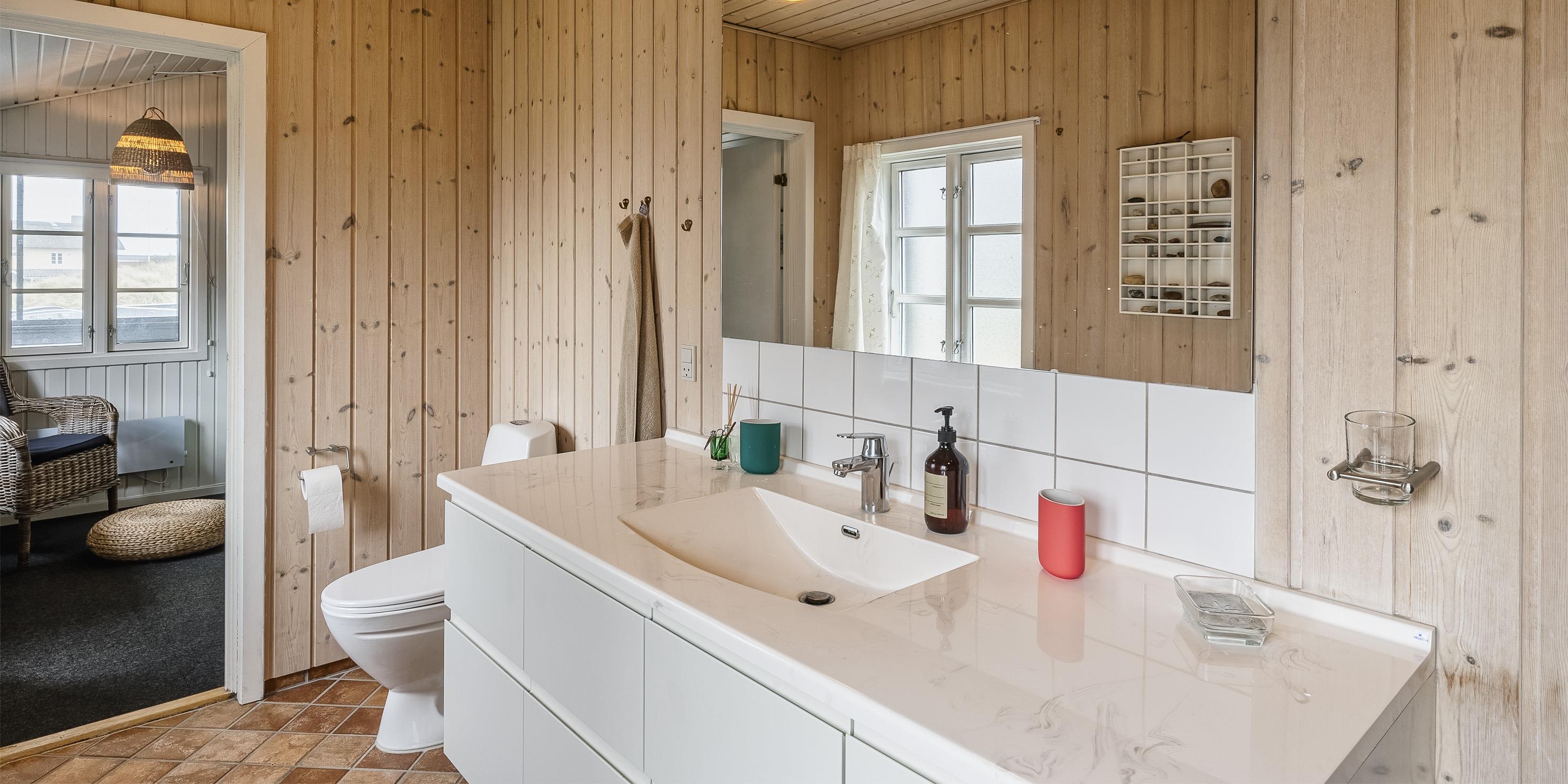 Bad med toilet, bruser og vask