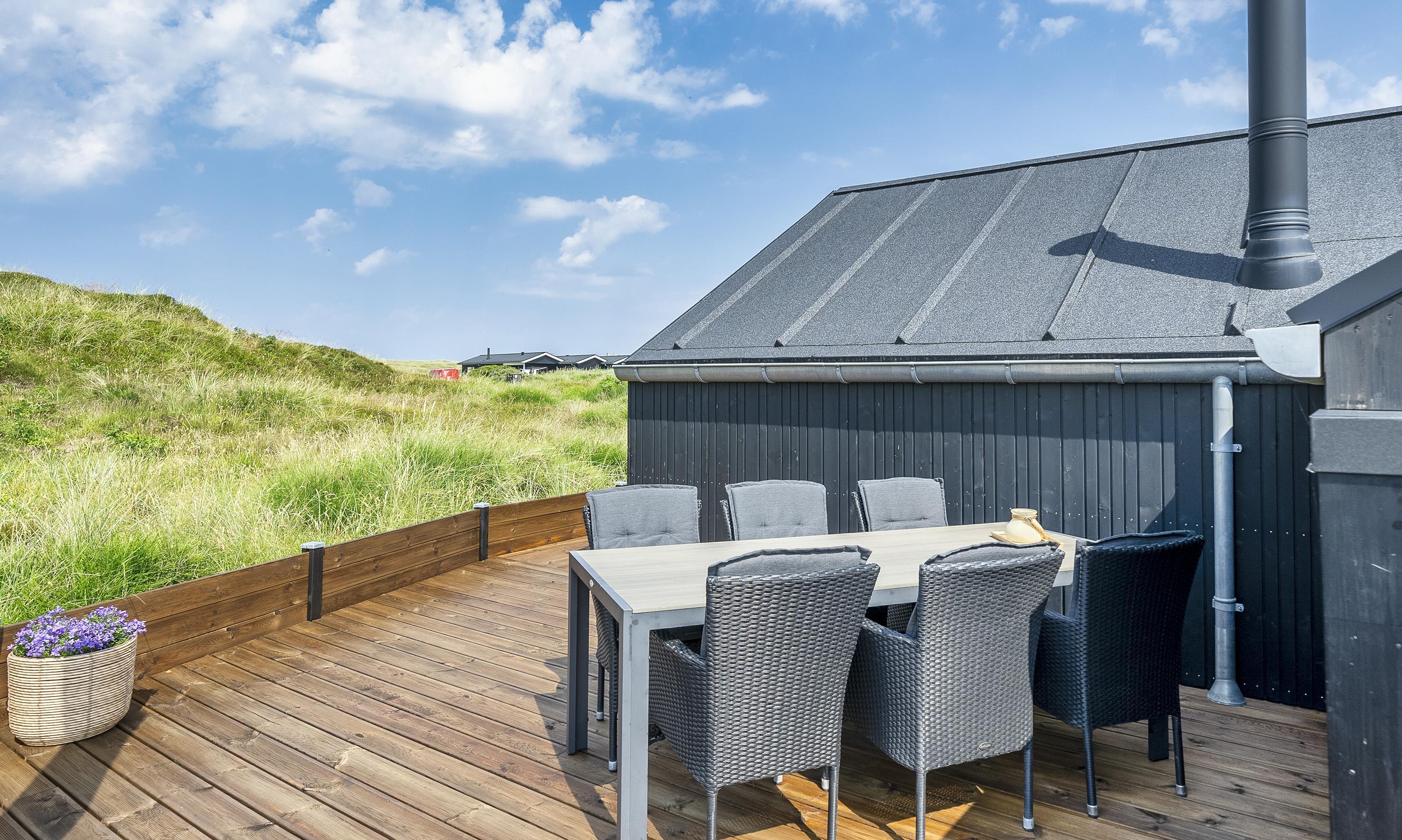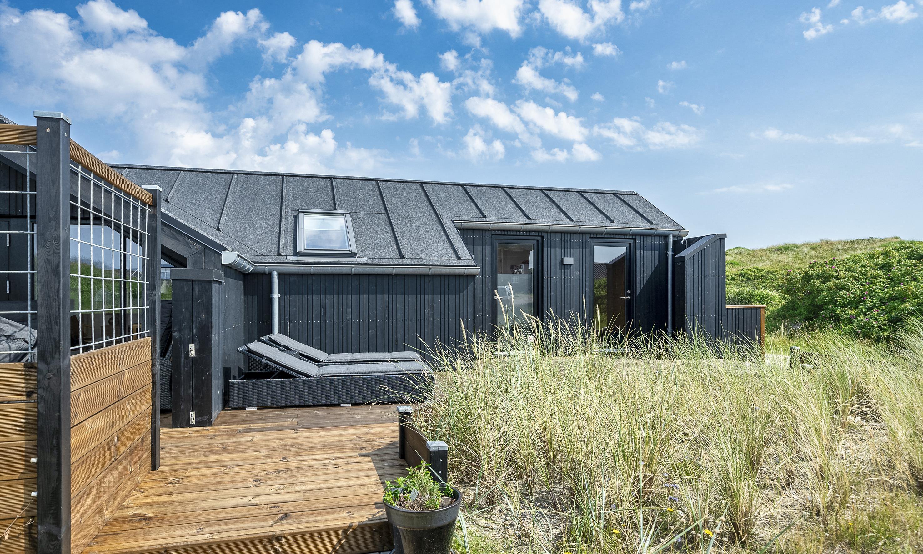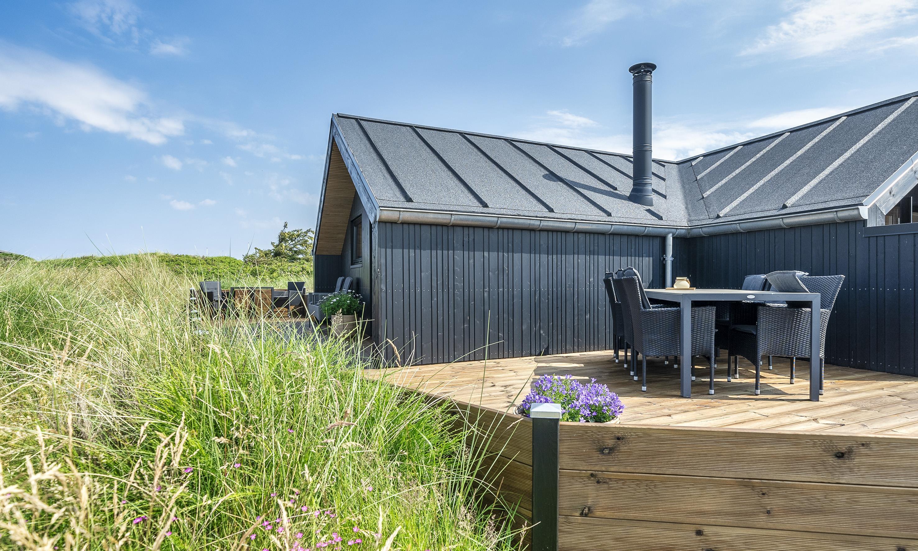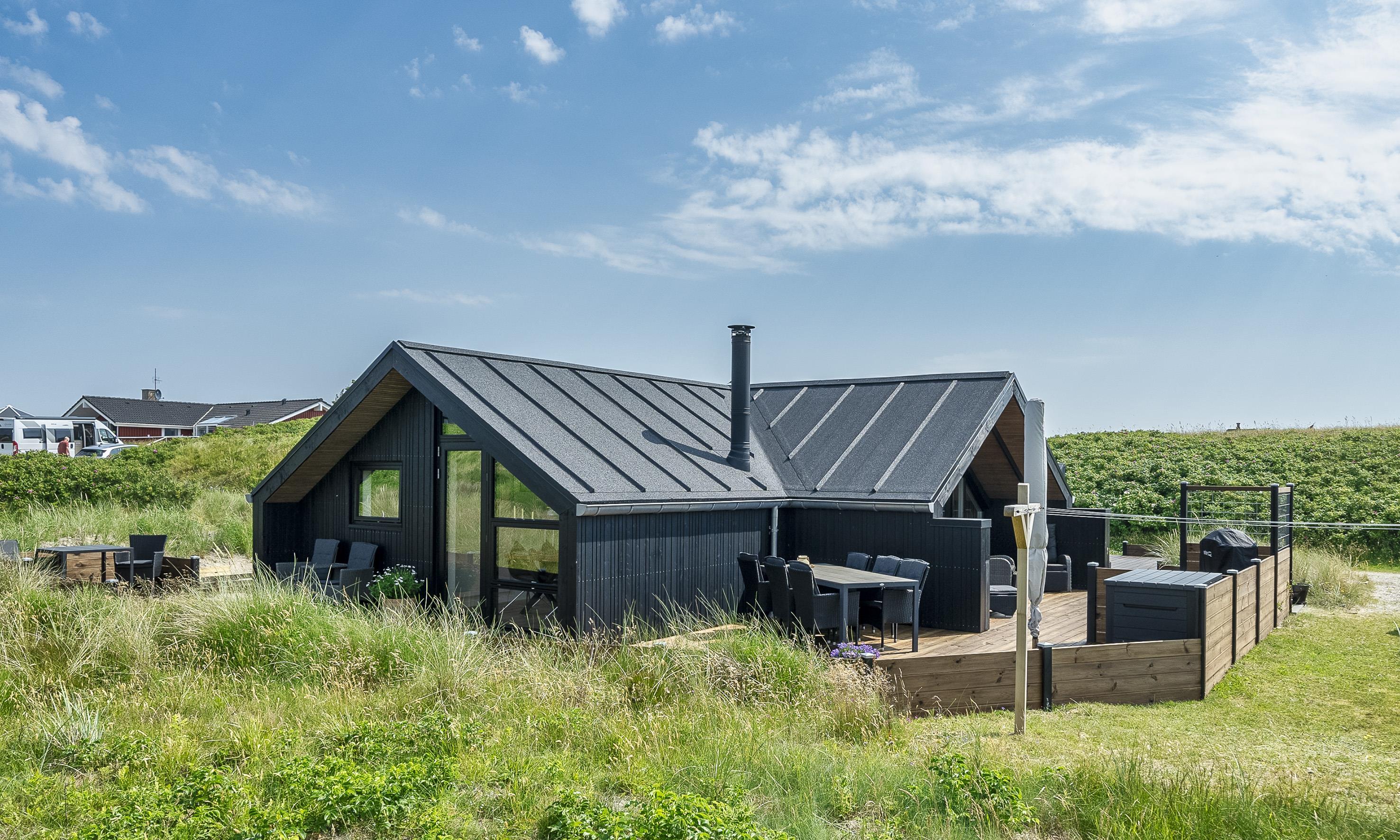 Nyrenoveret og hyggeligt sommerhus til 6 personer, beliggende på en lille skøn natur grund i klitterne, ca. 100 meter fra stranden. Huset er på 90 m2. Stue med brændeovn, fjernsyn og danske og tyske programmer via Stofa sommerhuspakke, Smart TV, Google Chrome Cast,Bluethoos Højtaler. Spiseplads med fansastisk udsigt til klitter og solnedgang. Nyere lyst køkken med opvaskemaskine, mikroovn og køle-/frysekombination. Nyt dejligt badeværelse med bruser, toilet, håndvask og gulvvarme. Sauna. 3 soveværelser: DS + 2S + 2S. Trådløs internetforbindelse (200/200 Mbit). Varmepumpe. Der er adgang til Oksbøl badeland i 2026. Delvis lukket træterrasse og til de små gæster er der en sandkasse. Udebruser om sommeren samt gasgrill med gasflaske. Ladestik til elbil (Type 2).