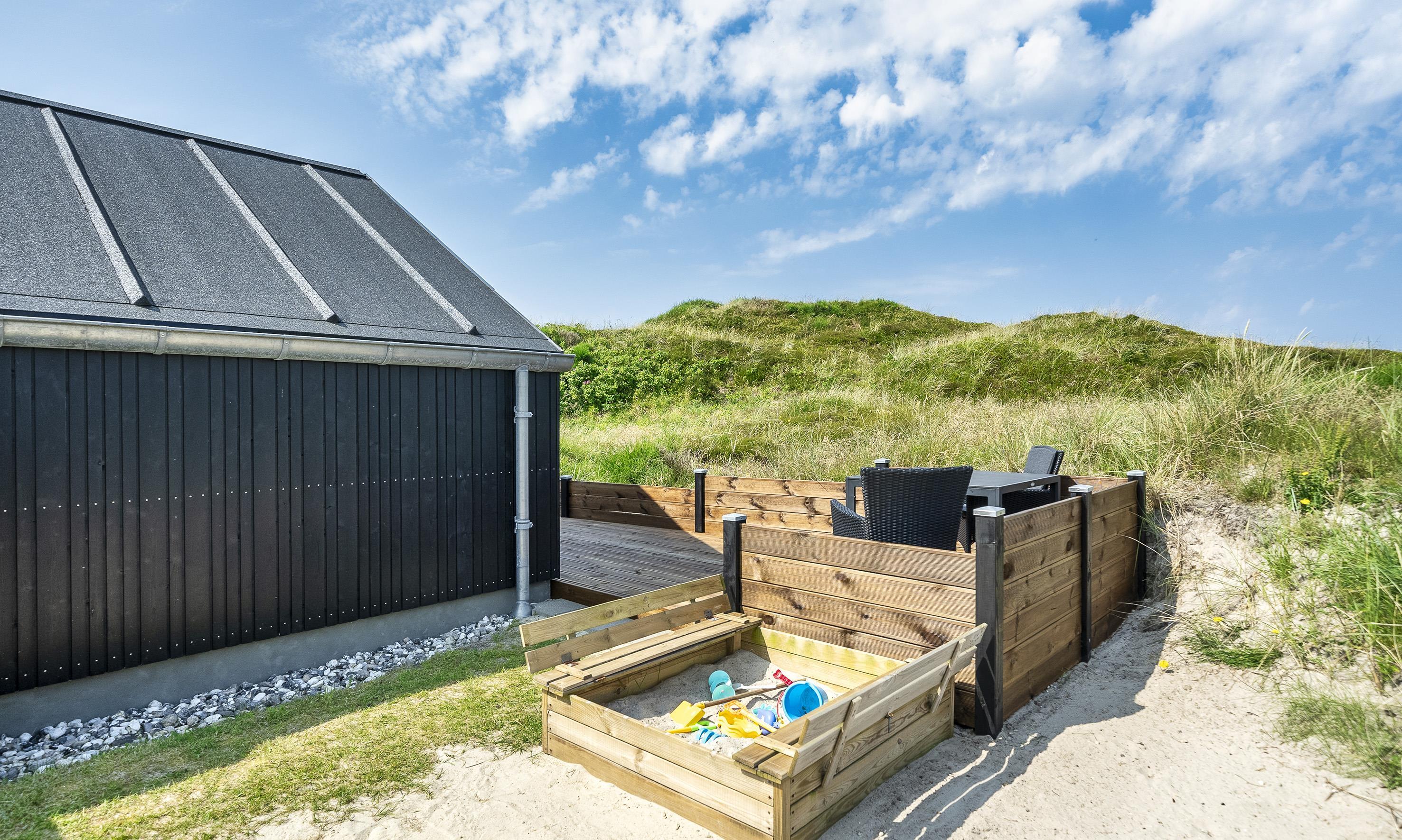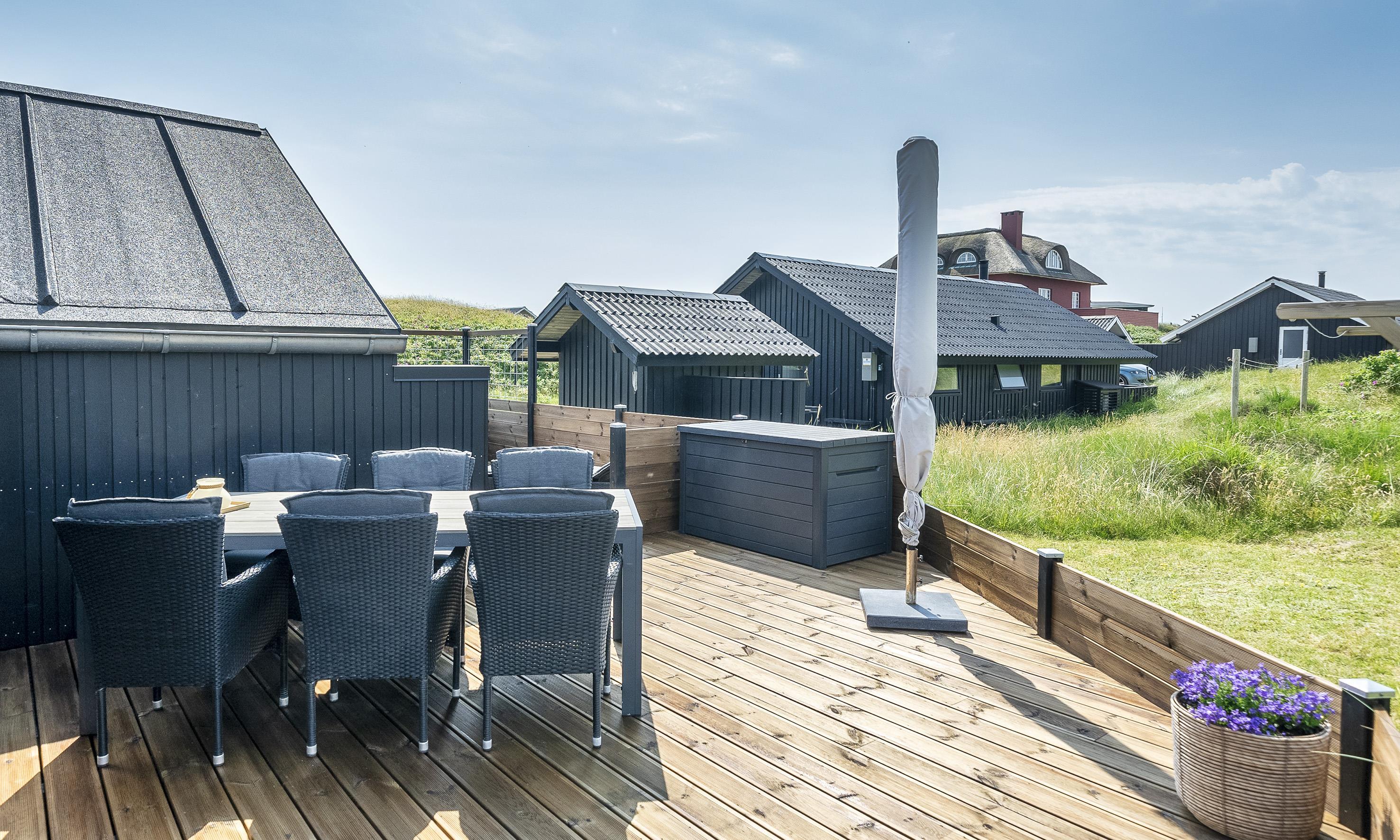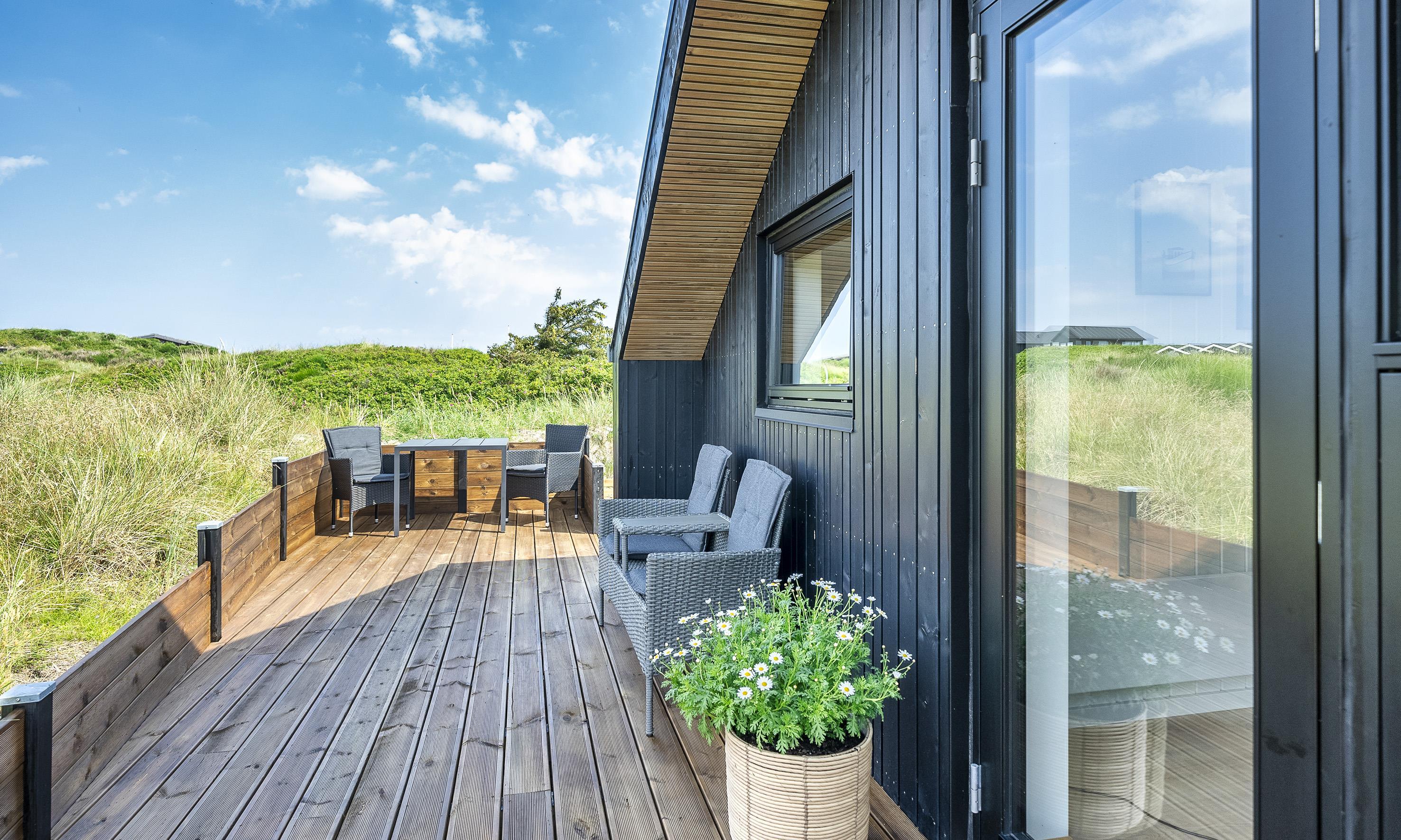 Nyrenoveret og hyggeligt sommerhus til 6 personer, beliggende på en lille skøn natur grund i klitterne, ca. 100 meter fra stranden. Huset er på 90 m2. Stue med brændeovn, fjernsyn og danske og tyske programmer via Stofa sommerhuspakke, Smart TV, Google Chrome Cast,Bluethoos Højtaler. Spiseplads med fansastisk udsigt til klitter og solnedgang. Nyere lyst køkken med opvaskemaskine, mikroovn og køle-/frysekombination. Nyt dejligt badeværelse med bruser, toilet, håndvask og gulvvarme. Sauna. 3 soveværelser: DS + 2S + 2S. Trådløs internetforbindelse (200/200 Mbit). Varmepumpe. Der er adgang til Oksbøl badeland i 2026. Delvis lukket træterrasse og til de små gæster er der en sandkasse. Udebruser om sommeren samt gasgrill med gasflaske. Ladestik til elbil (Type 2).