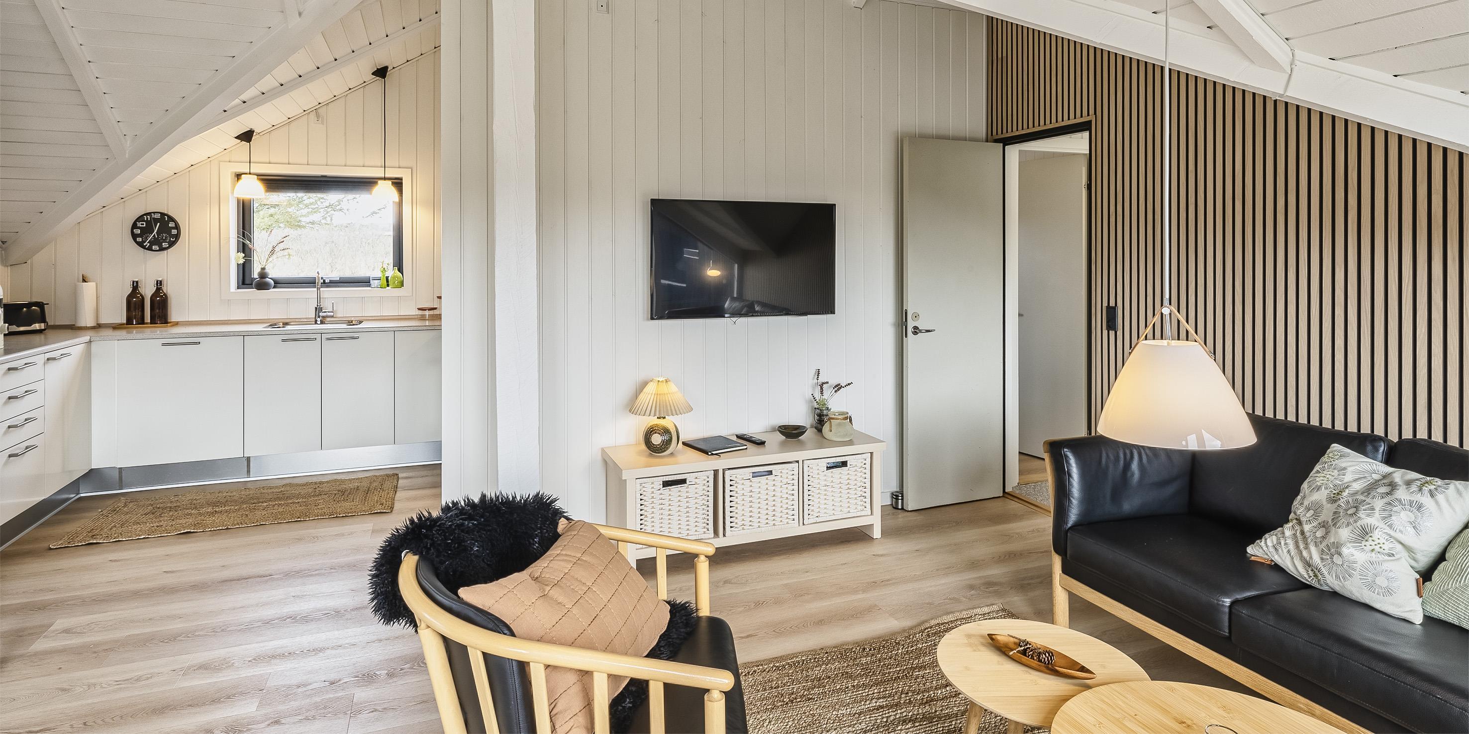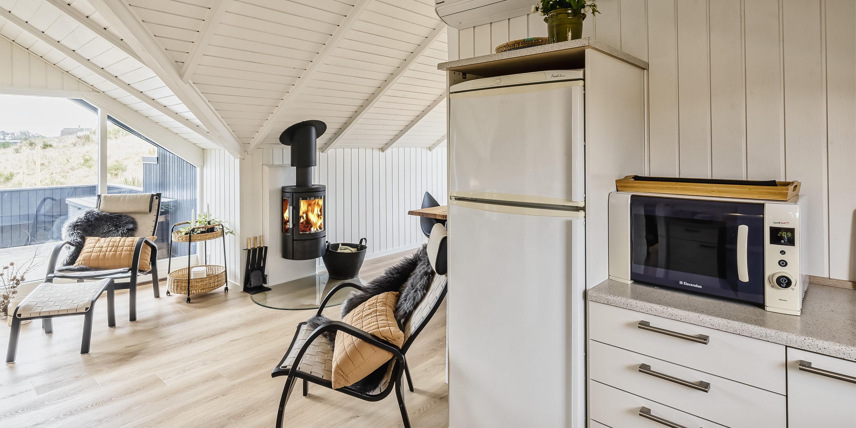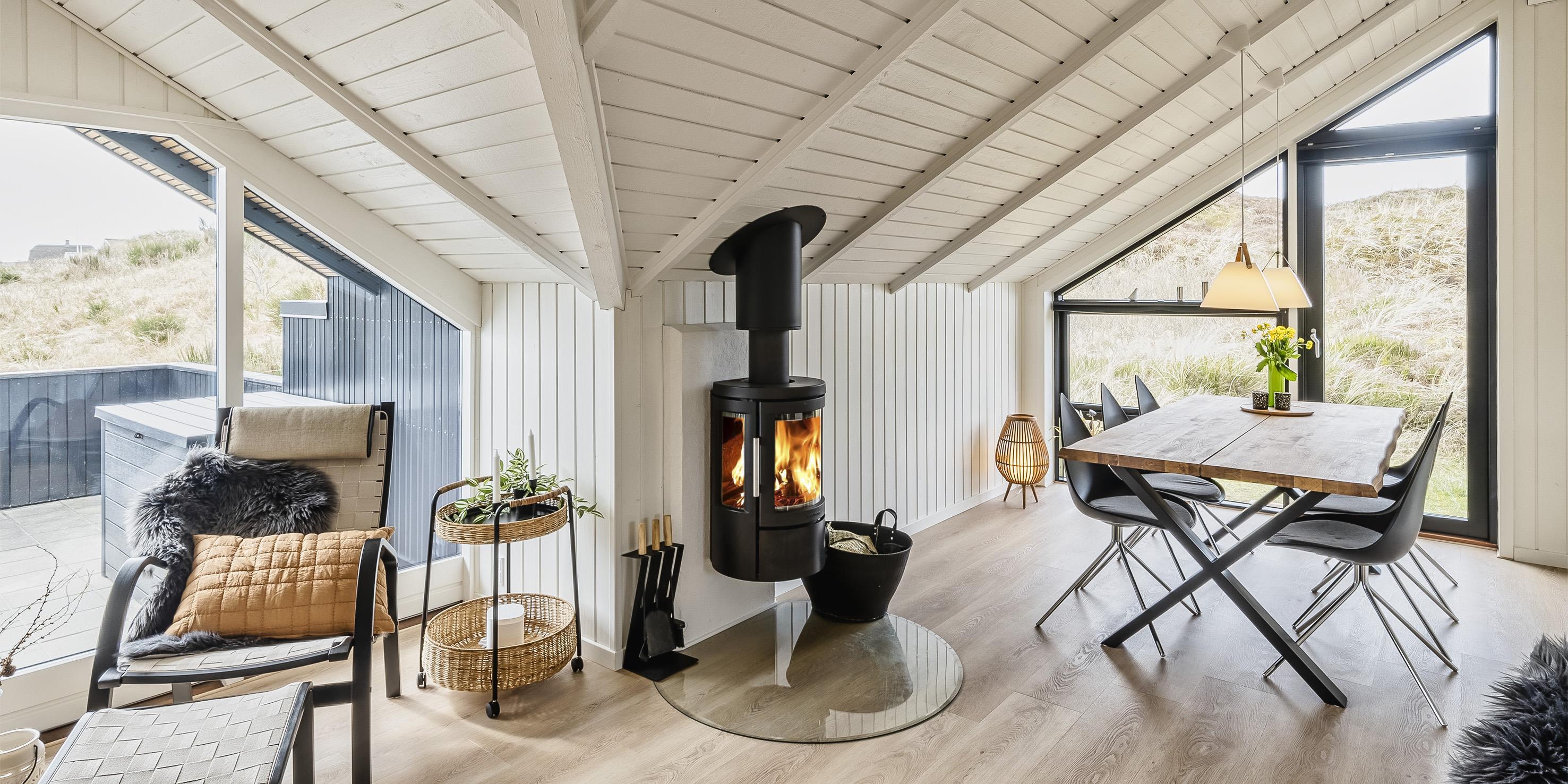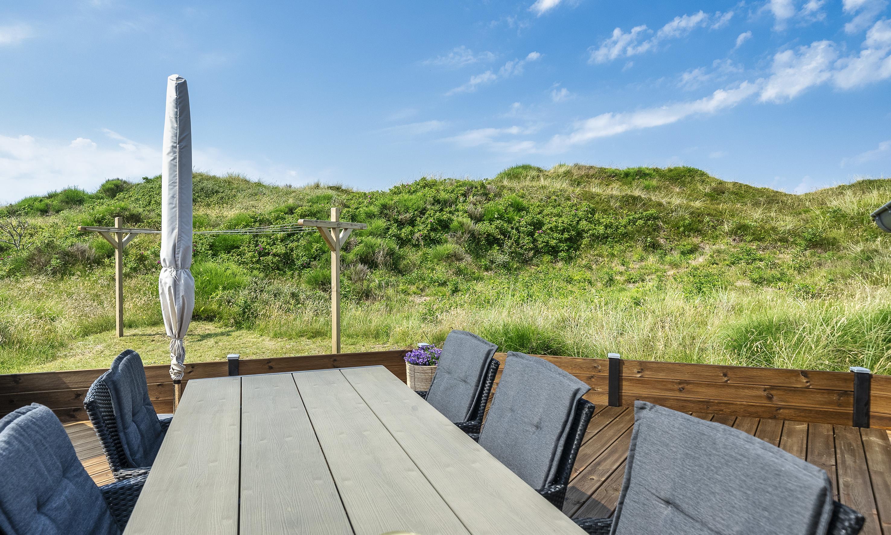 Nyrenoveret og hyggeligt sommerhus til 6 personer, beliggende på en lille skøn natur grund i klitterne, ca. 100 meter fra stranden. Huset er på 90 m2. Stue med brændeovn, fjernsyn og danske og tyske programmer via Stofa sommerhuspakke, Smart TV, Google Chrome Cast,Bluethoos Højtaler. Spiseplads med fansastisk udsigt til klitter og solnedgang. Nyere lyst køkken med opvaskemaskine, mikroovn og køle-/frysekombination. Nyt dejligt badeværelse med bruser, toilet, håndvask og gulvvarme. Sauna. 3 soveværelser: DS + 2S + 2S. Trådløs internetforbindelse (200/200 Mbit). Varmepumpe. Der er adgang til Oksbøl badeland i 2026. Delvis lukket træterrasse og til de små gæster er der en sandkasse. Udebruser om sommeren samt gasgrill med gasflaske. Ladestik til elbil (Type 2).