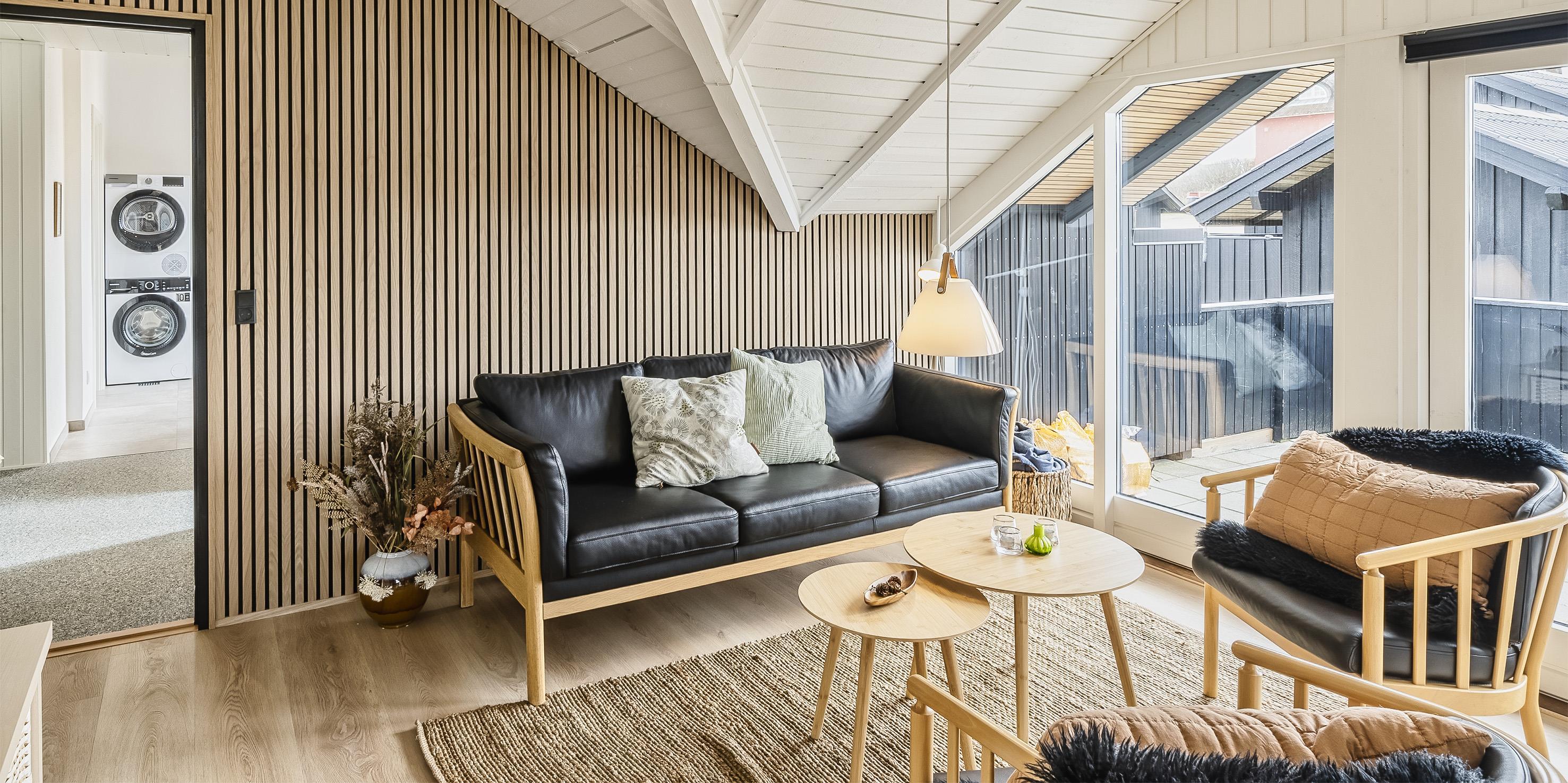 3 soveværelser. 1 med dobbeltseng 180x200 cm. 1 med 2 enkeltsenge (á 90x200 cm). 1 med køjeseng