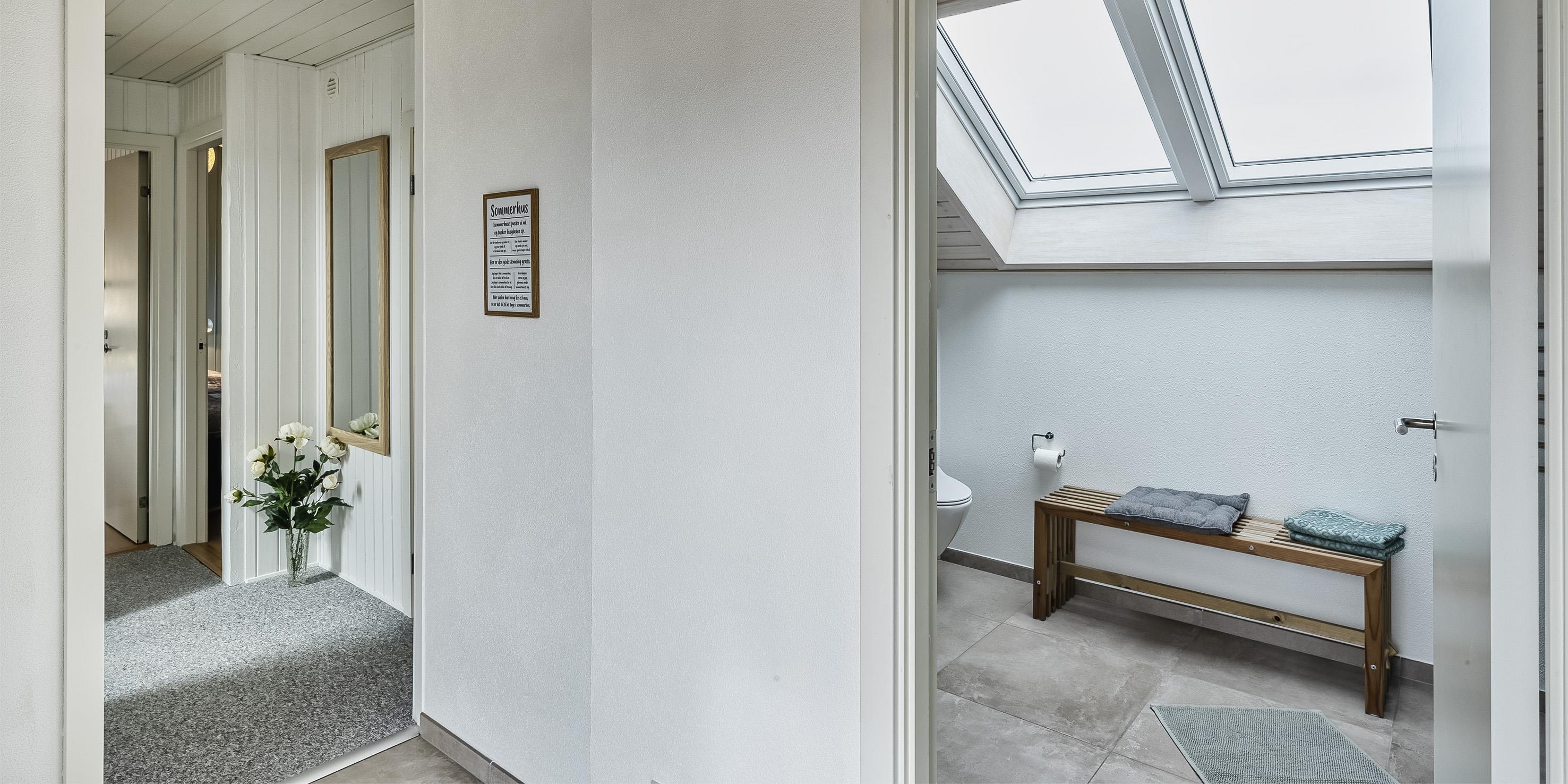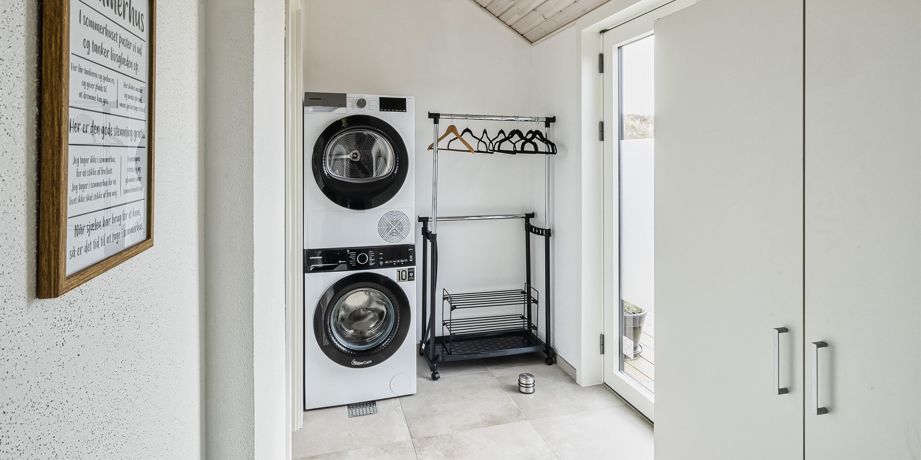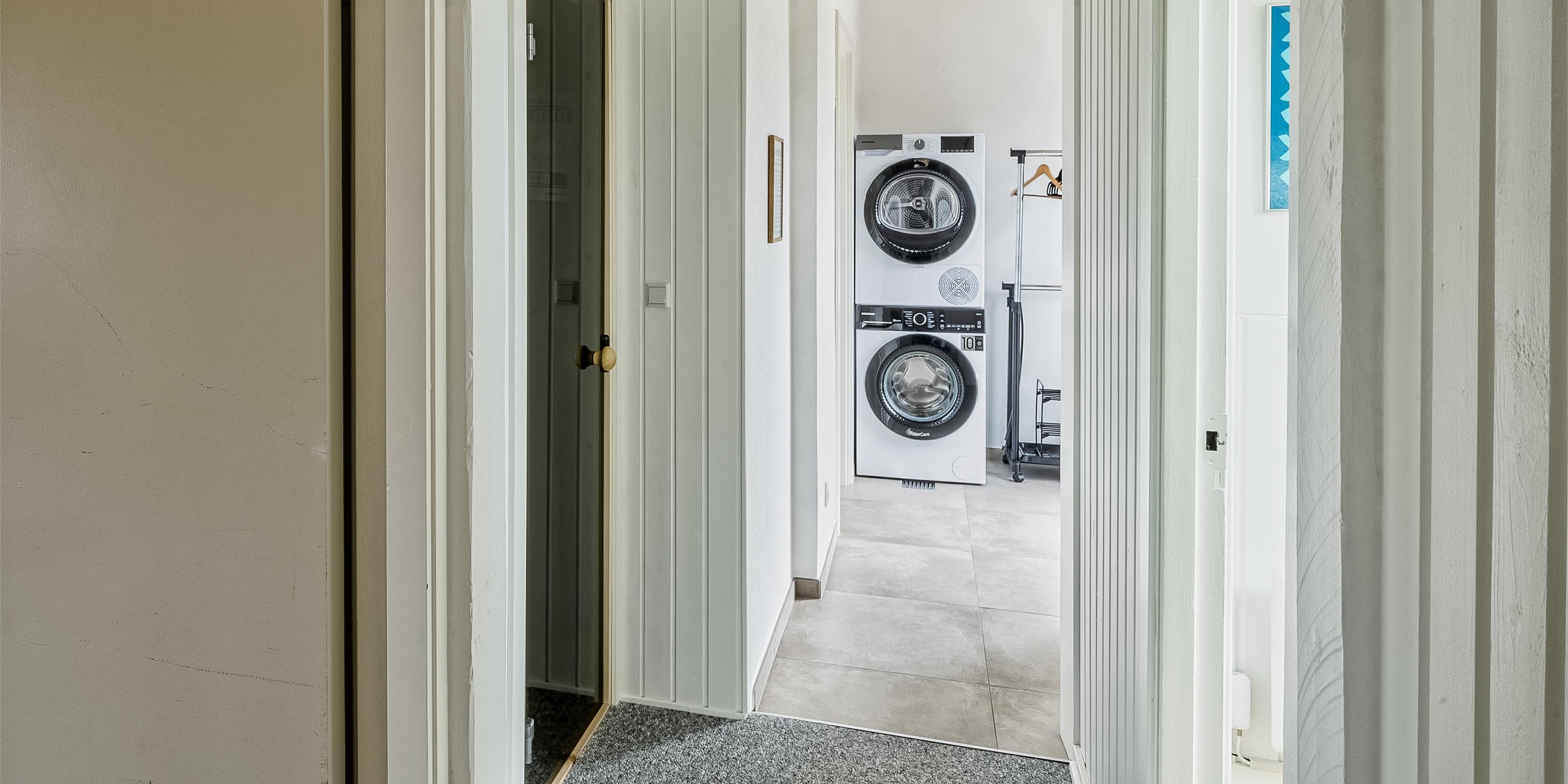 Der er opført en ny tilbygning med gang hvor der bla. er vaskemaskine og tørretumbler samt badeværelset. Der er gulvarme i begge rum.