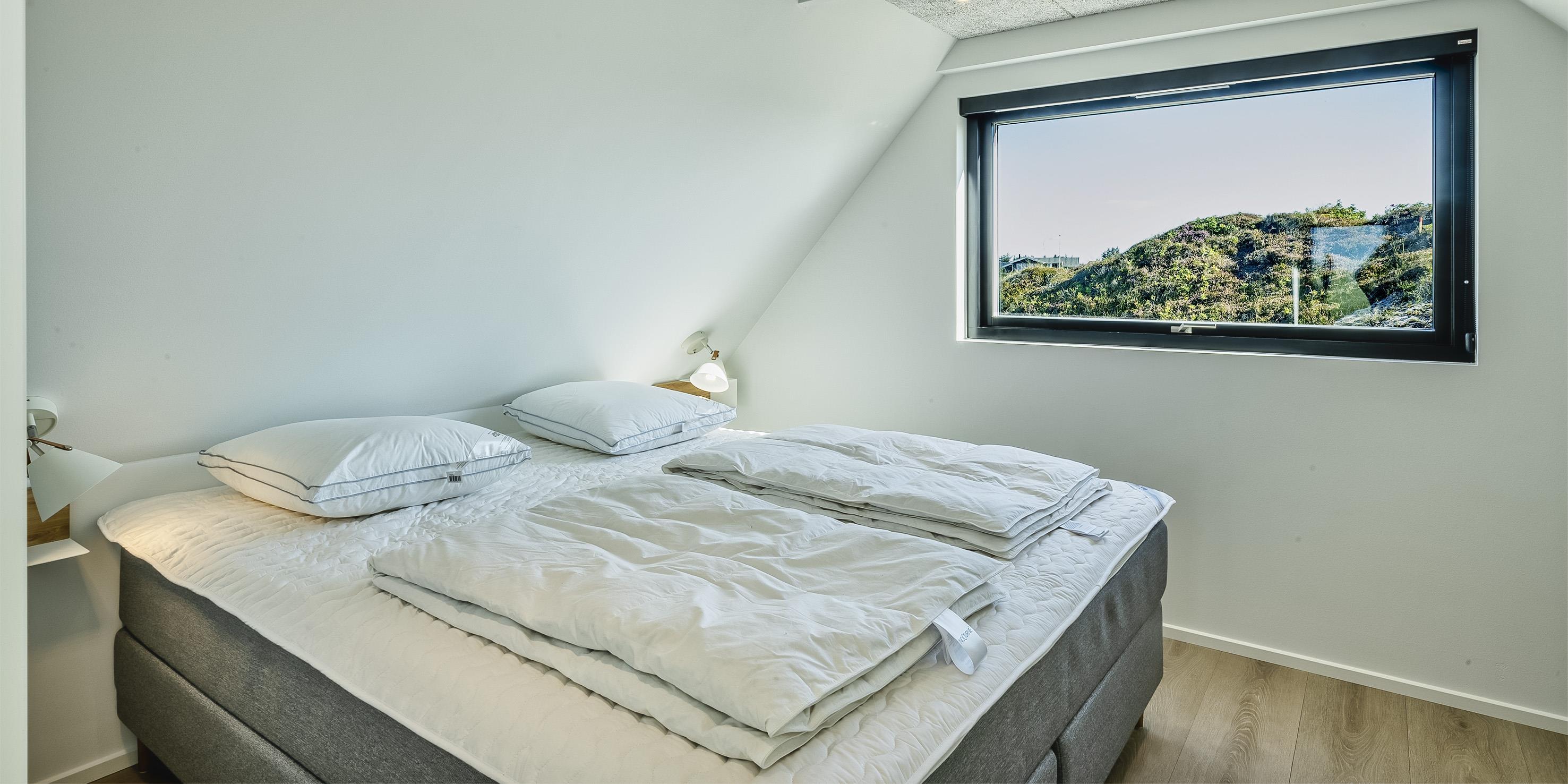 3 soveværelser med dobbeltseng 180x200 cm. 1 dobbeltmadras i alkove i stue