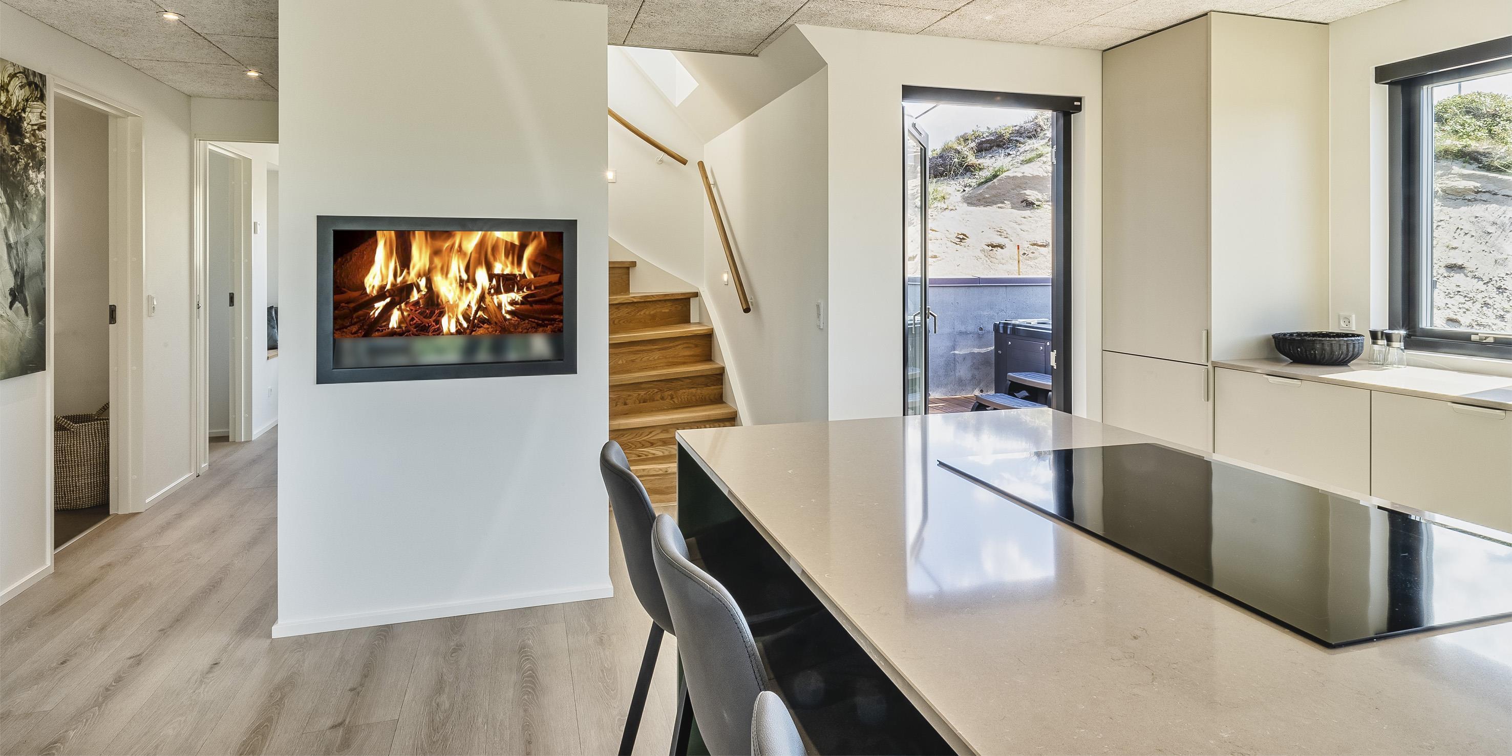 Smart Tv og Google Chrome Cast for modtagelse af danske- og udenlandske kanaler. Trådløs Internetadgang. Huset har en Bio Pejs hvor der kun må bruges Bio Ethanol. En flaske kan købes på kontor, den koster 40,- dkr.. Huset har en gas grill, som må benyttes. Gas til grillen skal selv medbringes, samt skal grillen stilles rengjort tilbage efter brug.