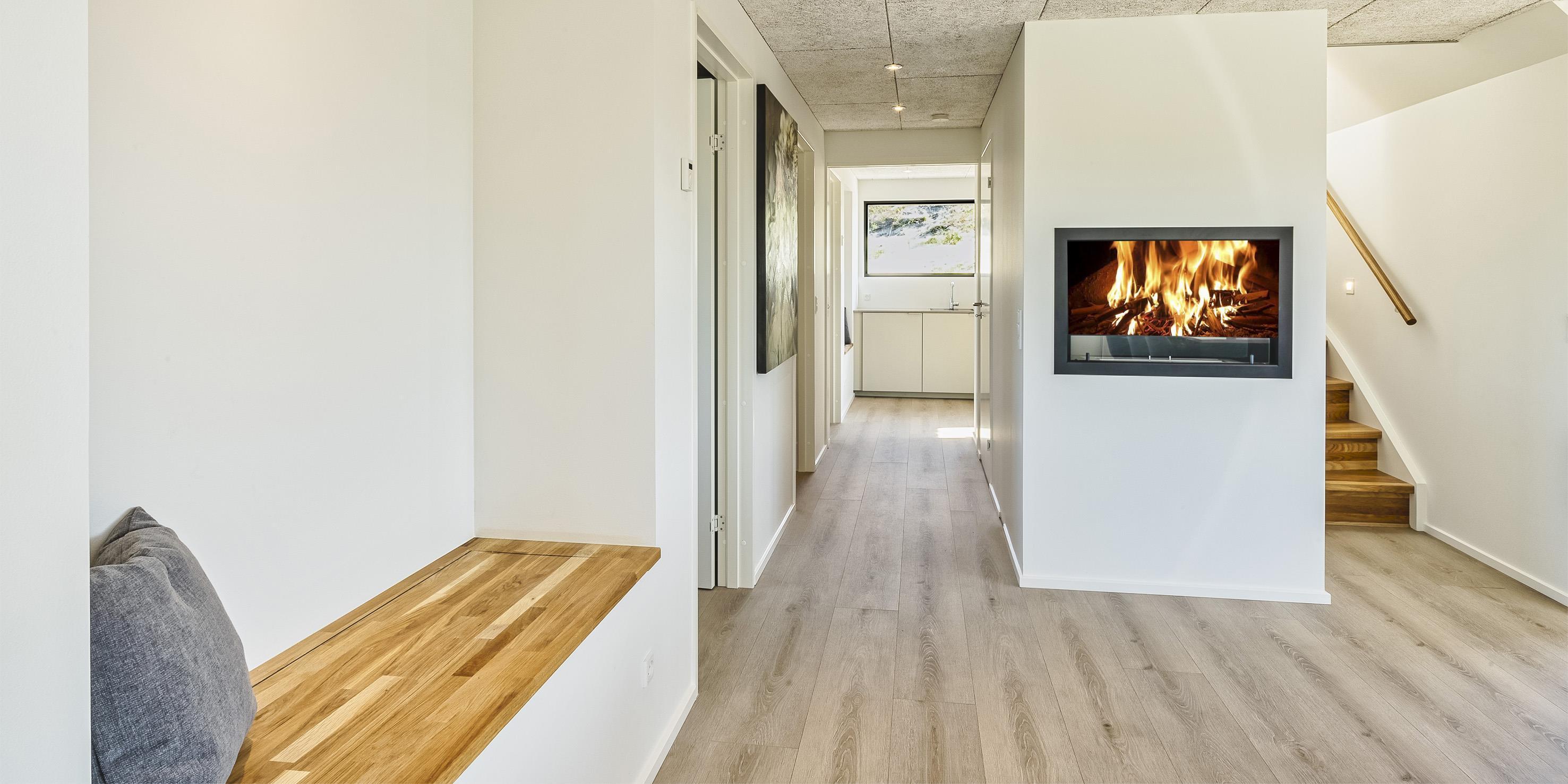 Huset opvarmes med gulvvarme og varmepumpe, hvorved der er et lavt energiforbrug. Der betales ekstra for vand.