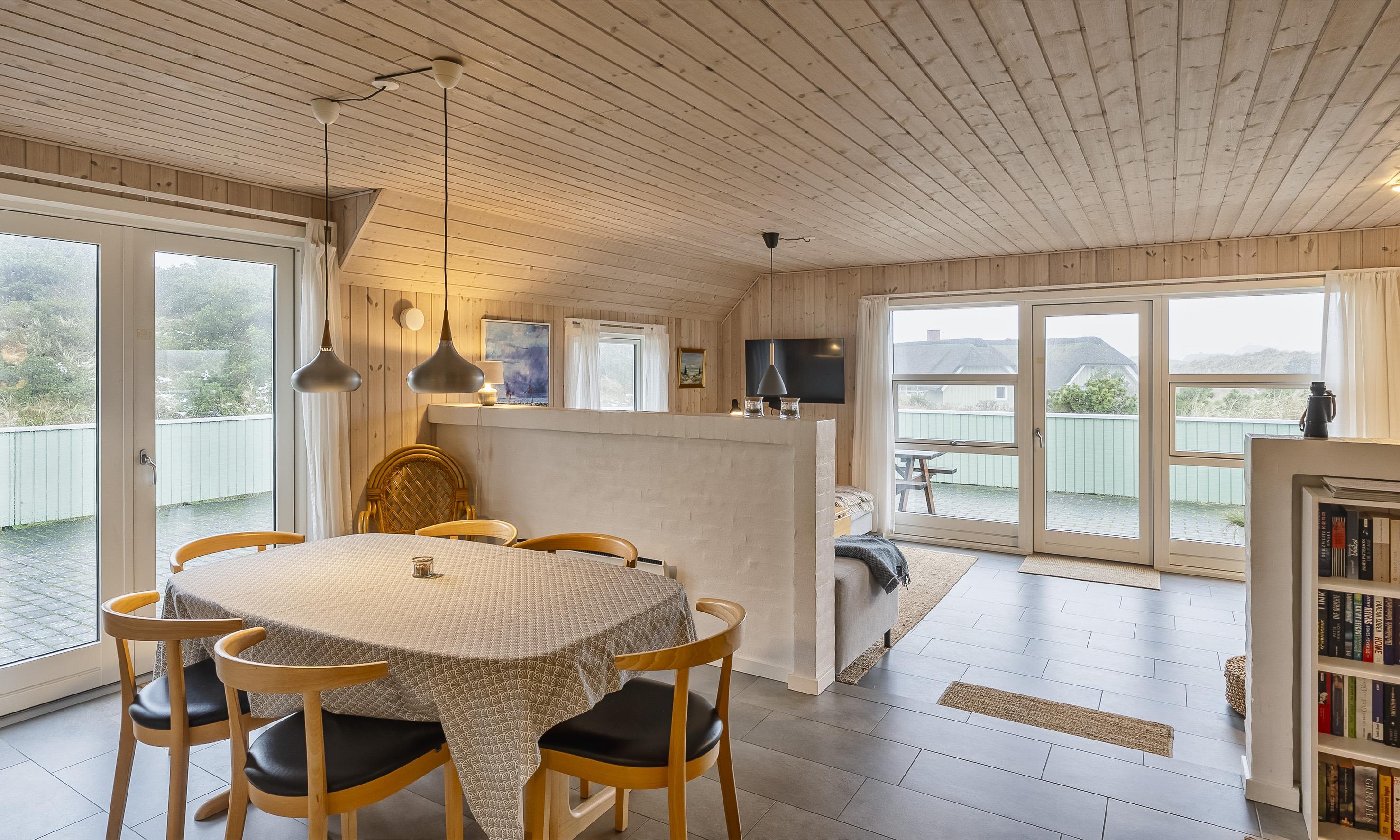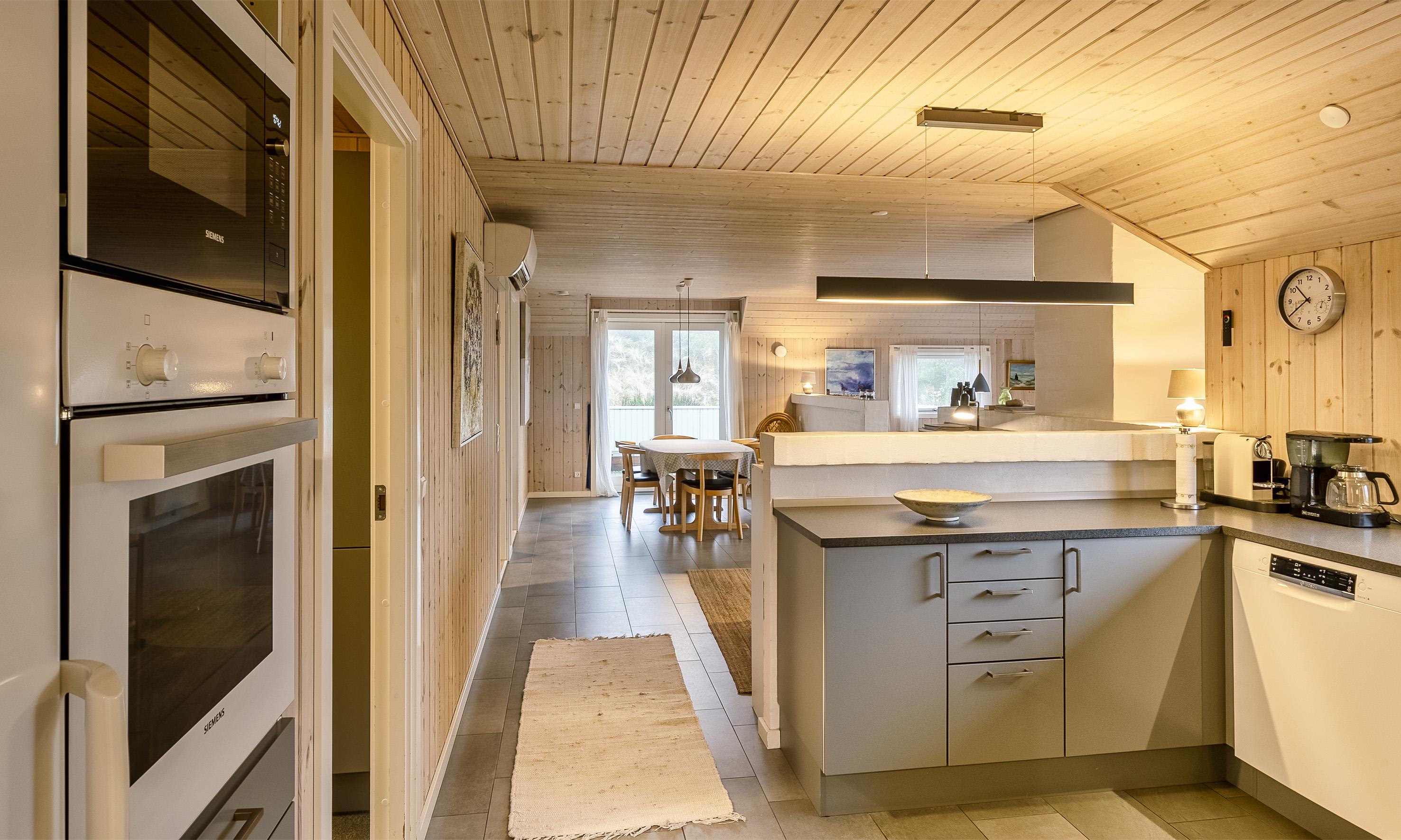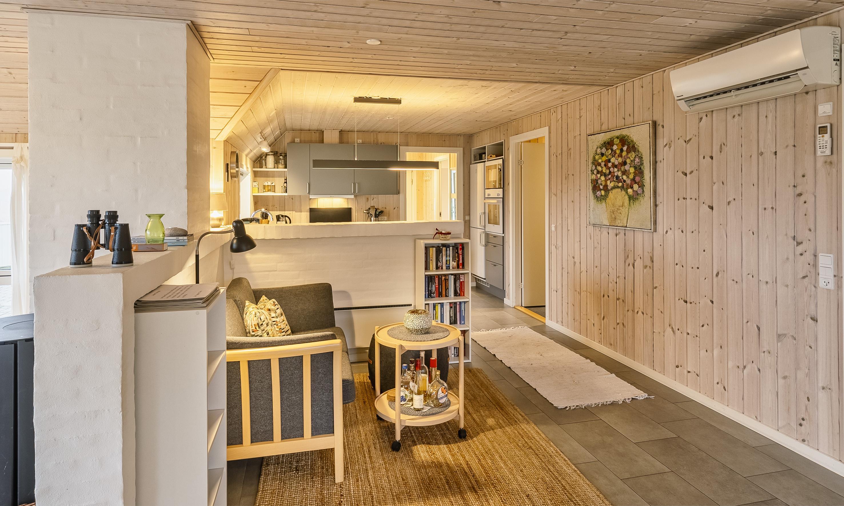 Huset indeholder: Entre/mellemgang, herfra er der indgang til gæstetoilet. Stort badeværelse med bruseniche, hjørnespa, sauna, vaske arrangement og toilet, separat WC og et baderum med bruser, vaskemaskine og tørretumbler. Fra mellemgangen kommer man over i et dejligt lyst køkken-alrum. Det velfungerende u-køkken fremstår med grå låger og køkkenet afgrænses med en halvvæg til hyggekrog med en 2 personers sofa, Ydermere fremstår alrummet med en åben spiseafdeling og terrassedør ud mod syd. 3 Soveværelser: DS+ DS + 2S. Anneks isoleret og opvarmet med køjeseng til 2 personer. Nedsænket pejsestue med et trin ned. Pejsestuen med hjørnesofa, hvor fra der er kig til brændeovnen og fjernsyn med satellitkanaler og danske programmer (DR-kanaler). Endvidere fremstår pejsestuen med 1 højrygged lænestole, tæt ved brændeovnen hvorfra varmen kan nydes. Udgang til stor lukket terrasse hvoraf en del er overdækket. Trådløs internetadgang. Byggeår 2019. Ungdomsgrupper er ikke tilladt.