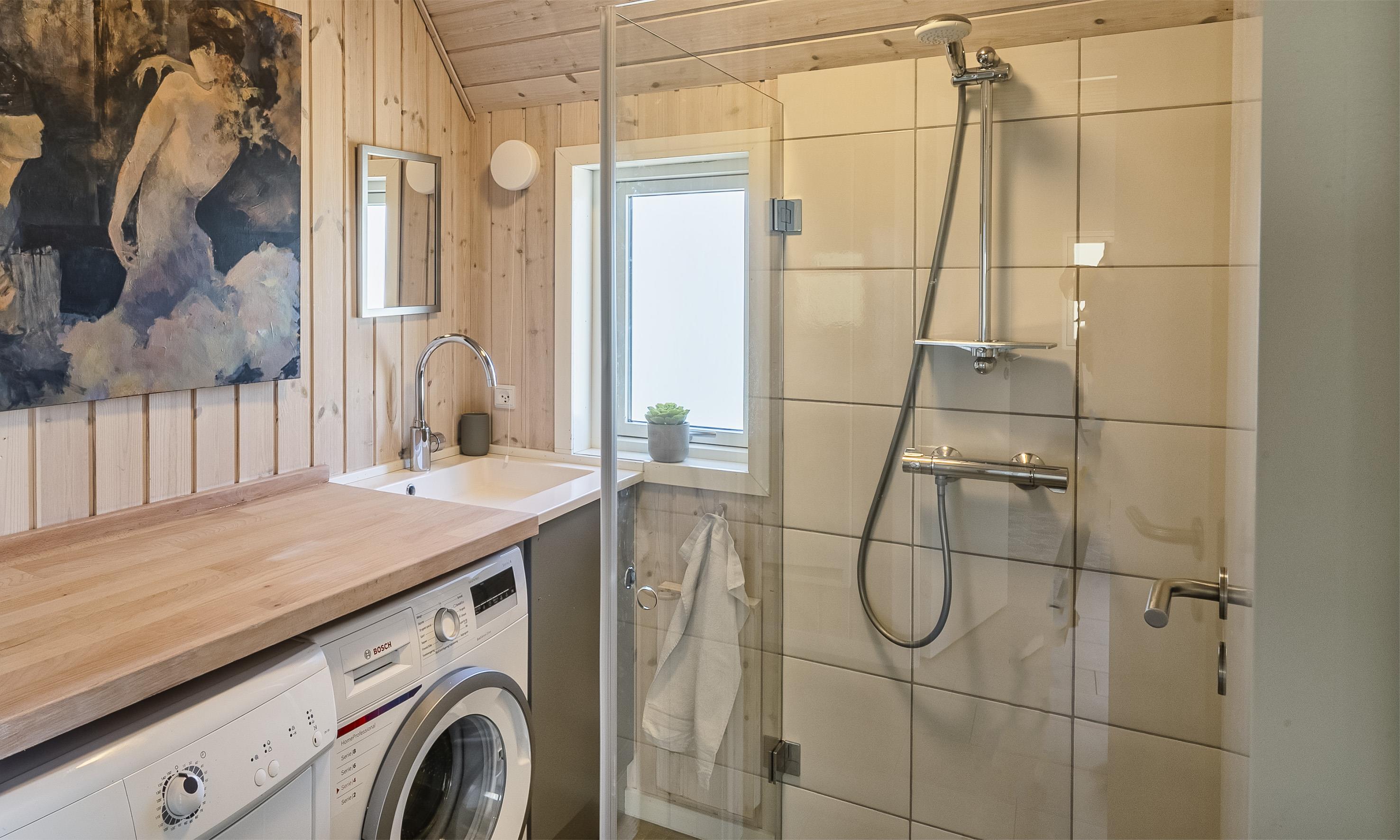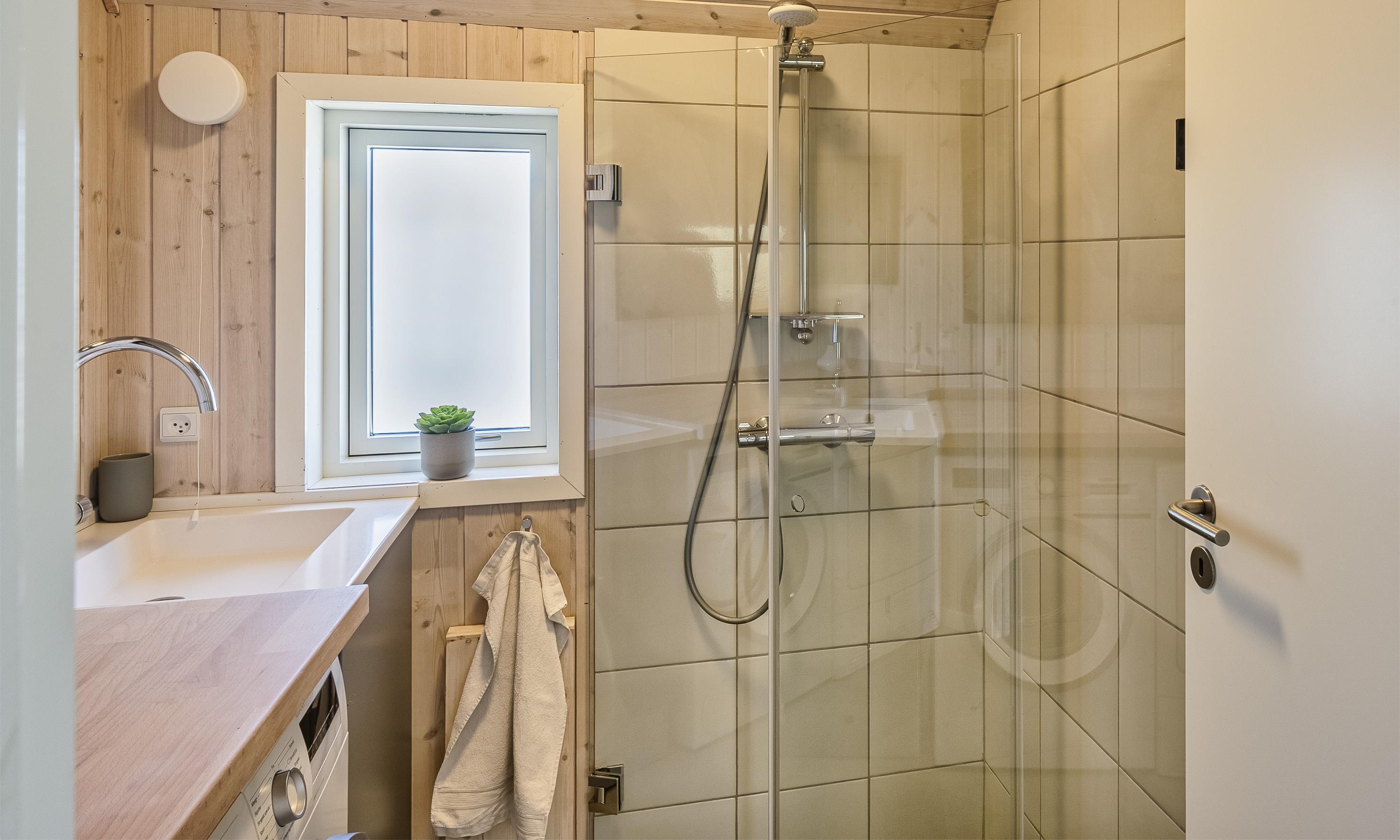 Badeværelse med bruser og vask