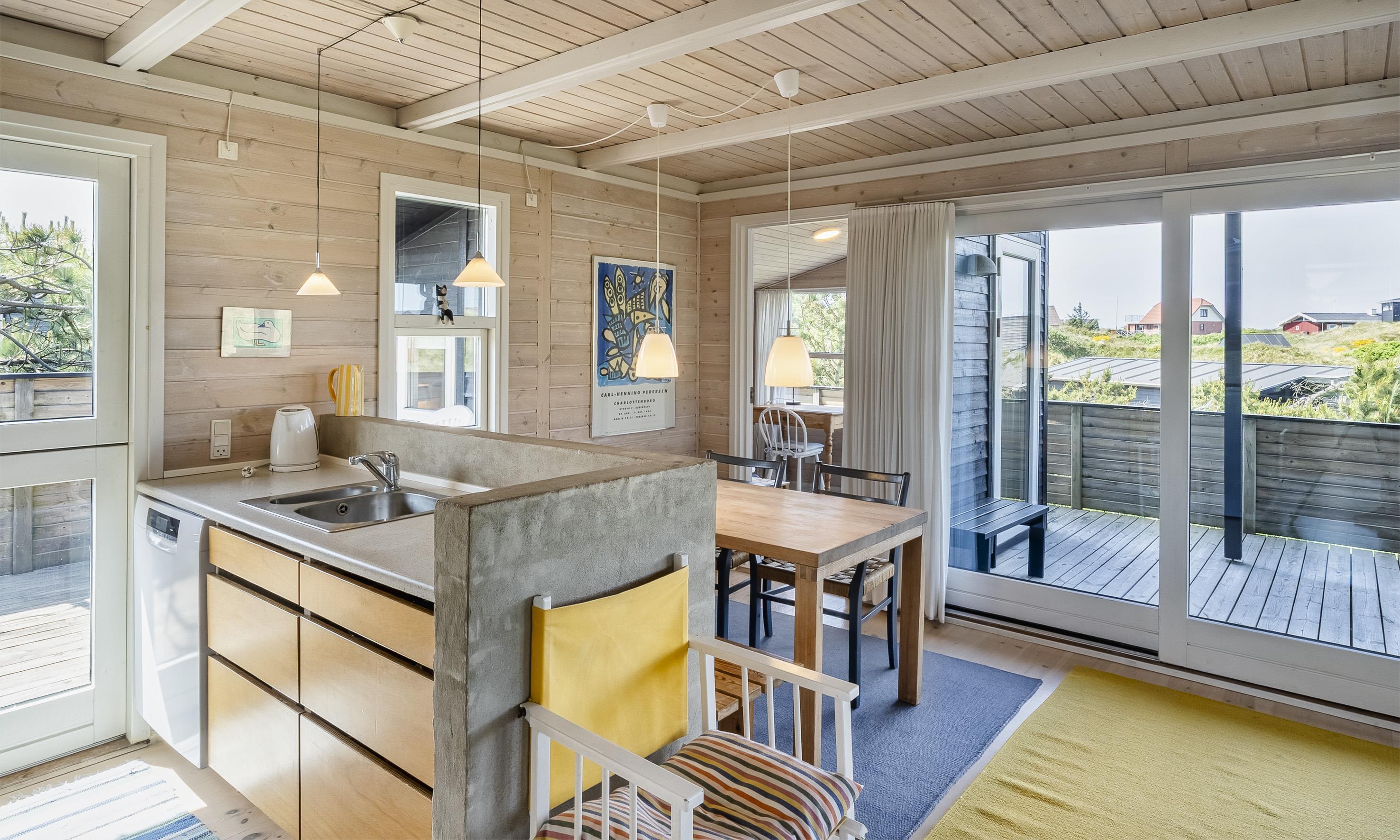 Smagfuldt sommerhus til 6 personer, beliggende på naturskøn klitgrund, ca. 300 meter fra stranden. Stue med brændeovn, fjernsyn og parabol (danske og tyske programmer) samt åbent køkken med opvaskemaskine og mikroovn. Badeværelse med bruser/wc. Vaskemaskine. 3 soveværelser: DS + DS+ 2S. Det ene soveværelse med dobbeltseng er i forbindelse med stuen - adskilt med en skydedør og kan også fungere som tv stue. Trådløs internet. Varmepumpe, Dejlig, delvis lukket terrasse. Rygning er ikke tilladt. Husdyr er ikke tilladt! Byggeår 1975, renoveret 1996. Fra 2024 ladestander til El-biler.