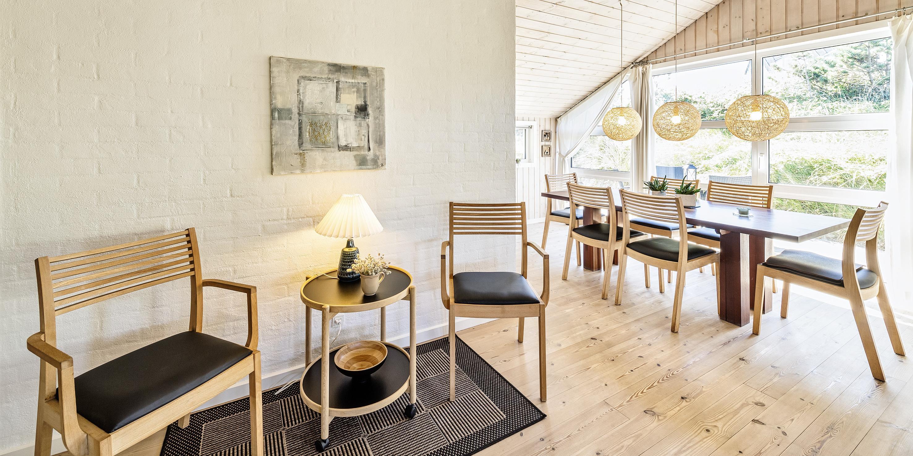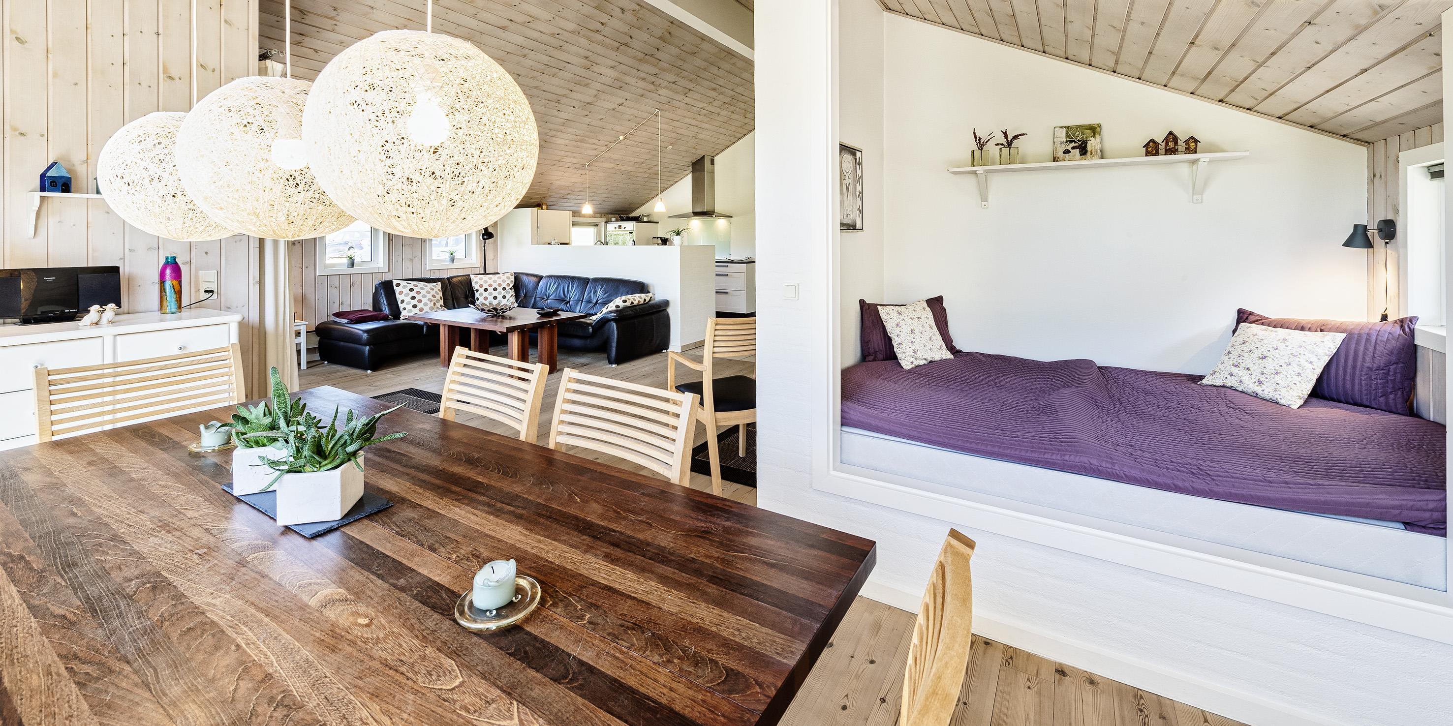 Smagfuldt sommerhus til 6-8 personer, ca. 200 meter fra stranden. Dejlig stue med brændeovn, Chrome Cast, fjernsyn (danske programmer via Norlys). Alkove. Varmepumpe. Åbent køkken med opvaskemaskine og mikroovn samt køle-/frysekombination. 3 soveværelser: DS + DS + 2S. Badeværelse med bruser/wc, sauna og spa. Vaskemaskine og tørretumbler. Værdiboks. Trådløs internet. Lukket, samt delvis overdækket terrasse.Husdyr er ikke tilladt - dog med undtagelse af én lille hund! Rygning er ikke tilladt. Byggeår 2005.