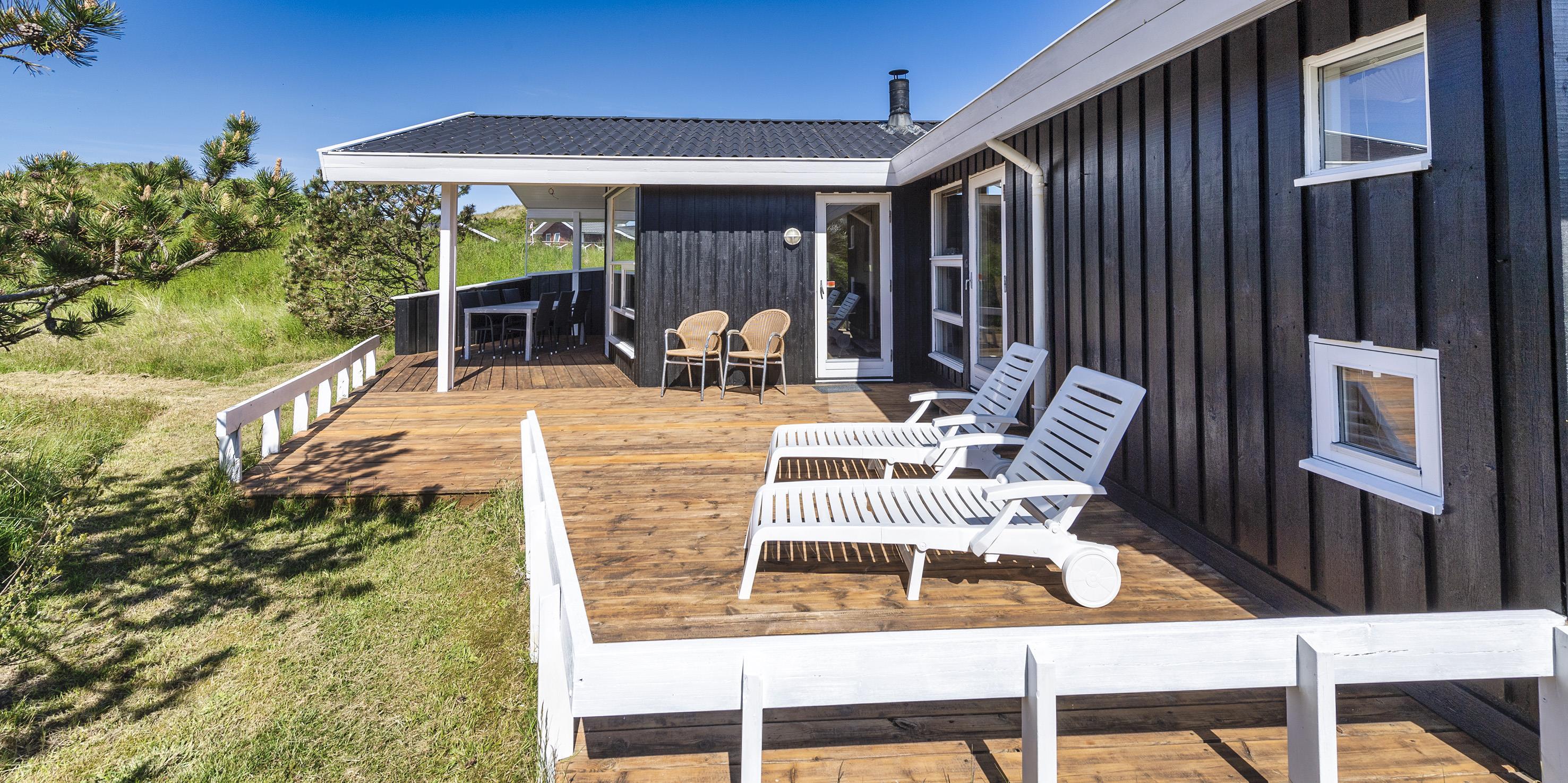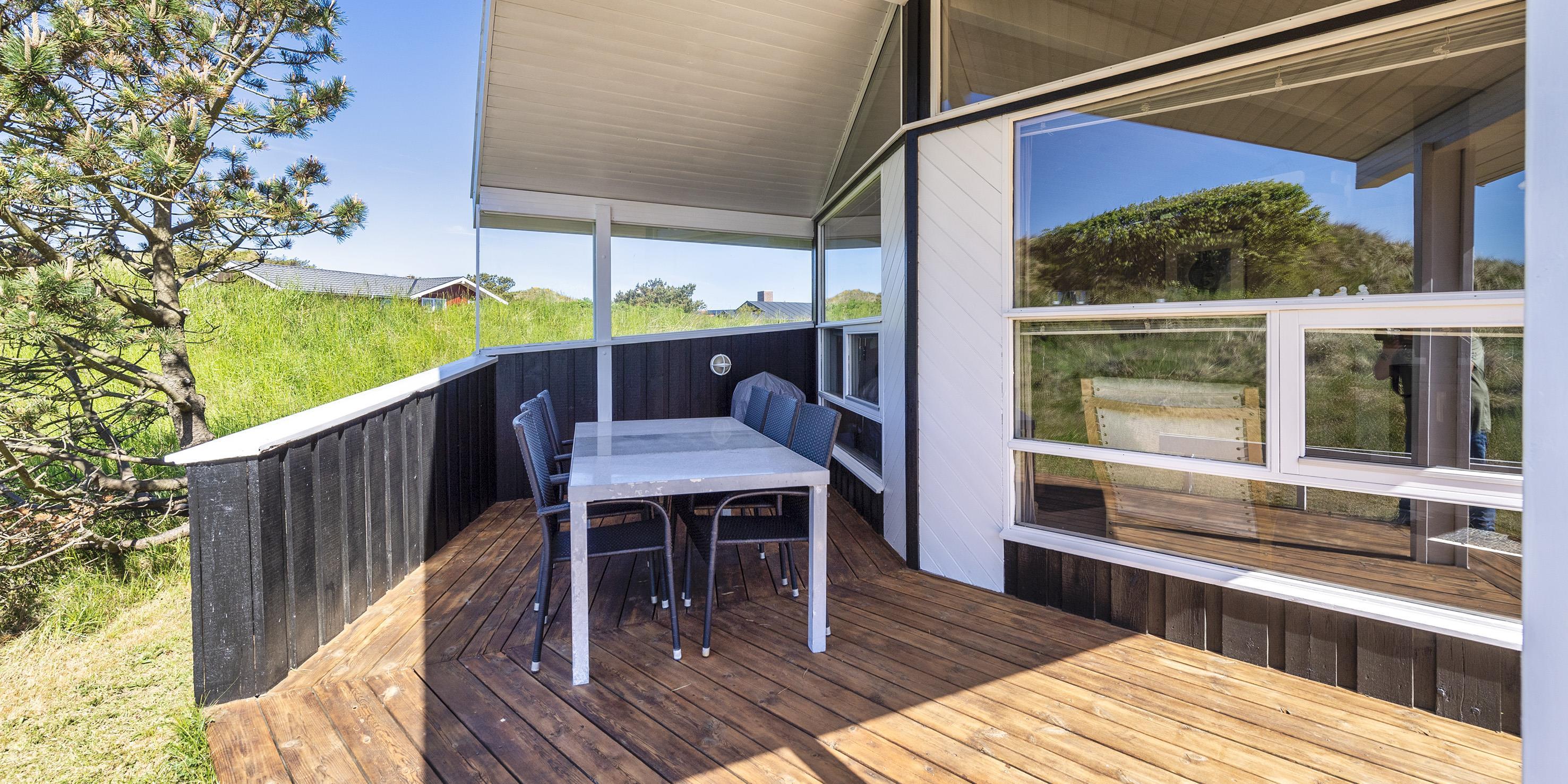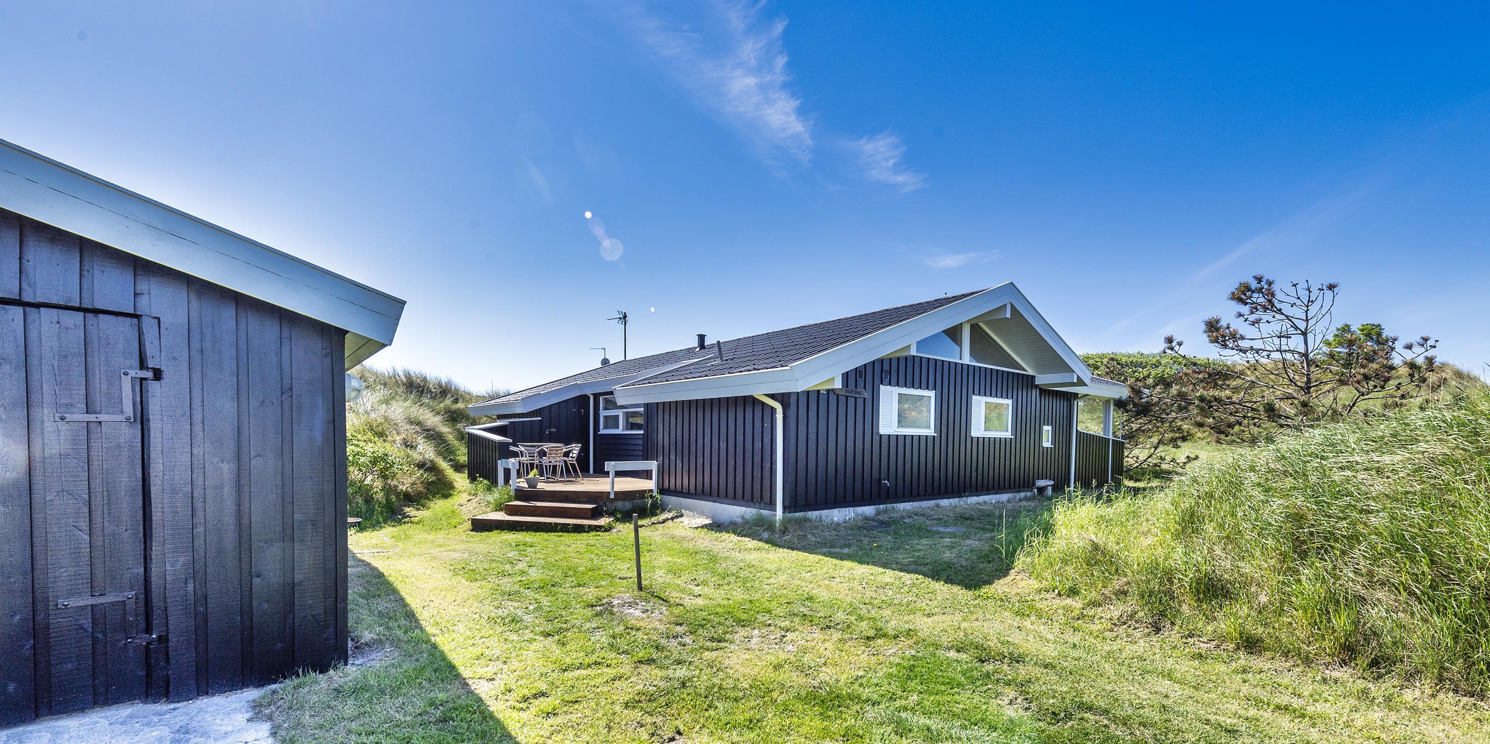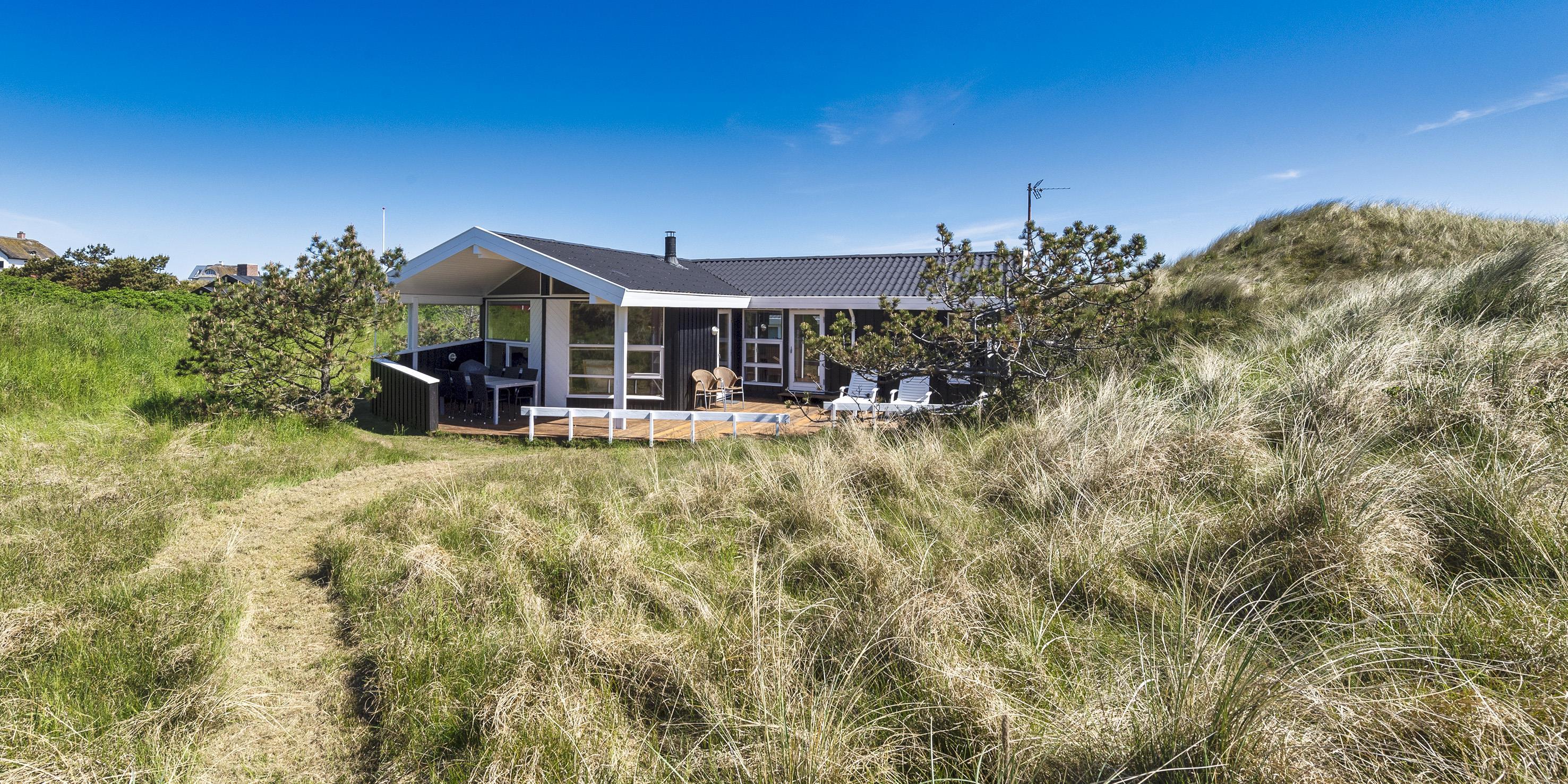 Meget flot og lys sommerhus til 6 personer, beliggende på naturskøn ugeneret klitgrund, ca. 200 meter fra stranden. Åbent køkken med opvaskemaskine, mikroovn og spisestue. Stue med brændeovn, Smart-Tv crome cast, DVD-afspiller og parabol. Trådløs internet. Badeværelse med bruser/wc og sauna. 3 soveværelser: DS + DS + 2S. Strømbesparende varmepumpe. Redskabsrum. Stor, delvis overdækket terrasse. Sandkasse. Husdyr må maksimalt være 30 cm høje og må ikke på sofa og i senge. Rygning er ikke tilladt. Byggeår 1988.