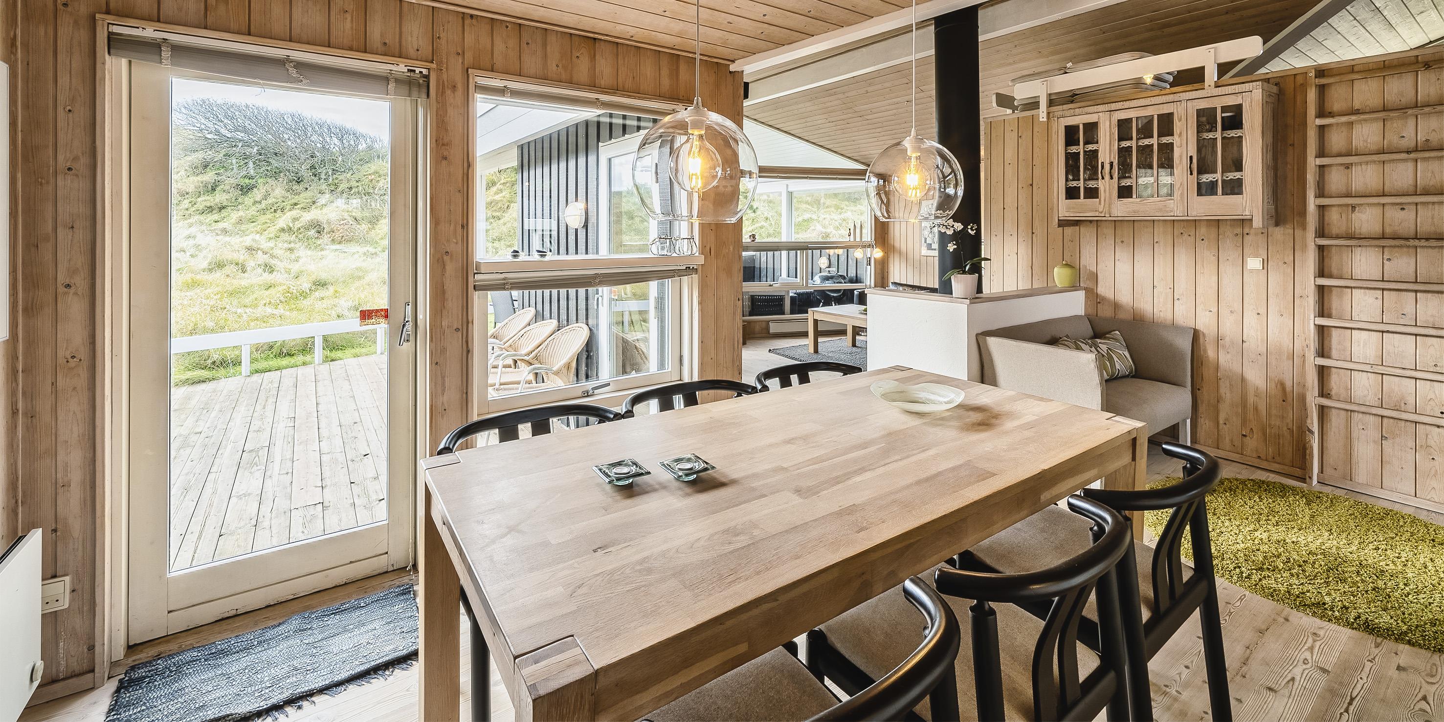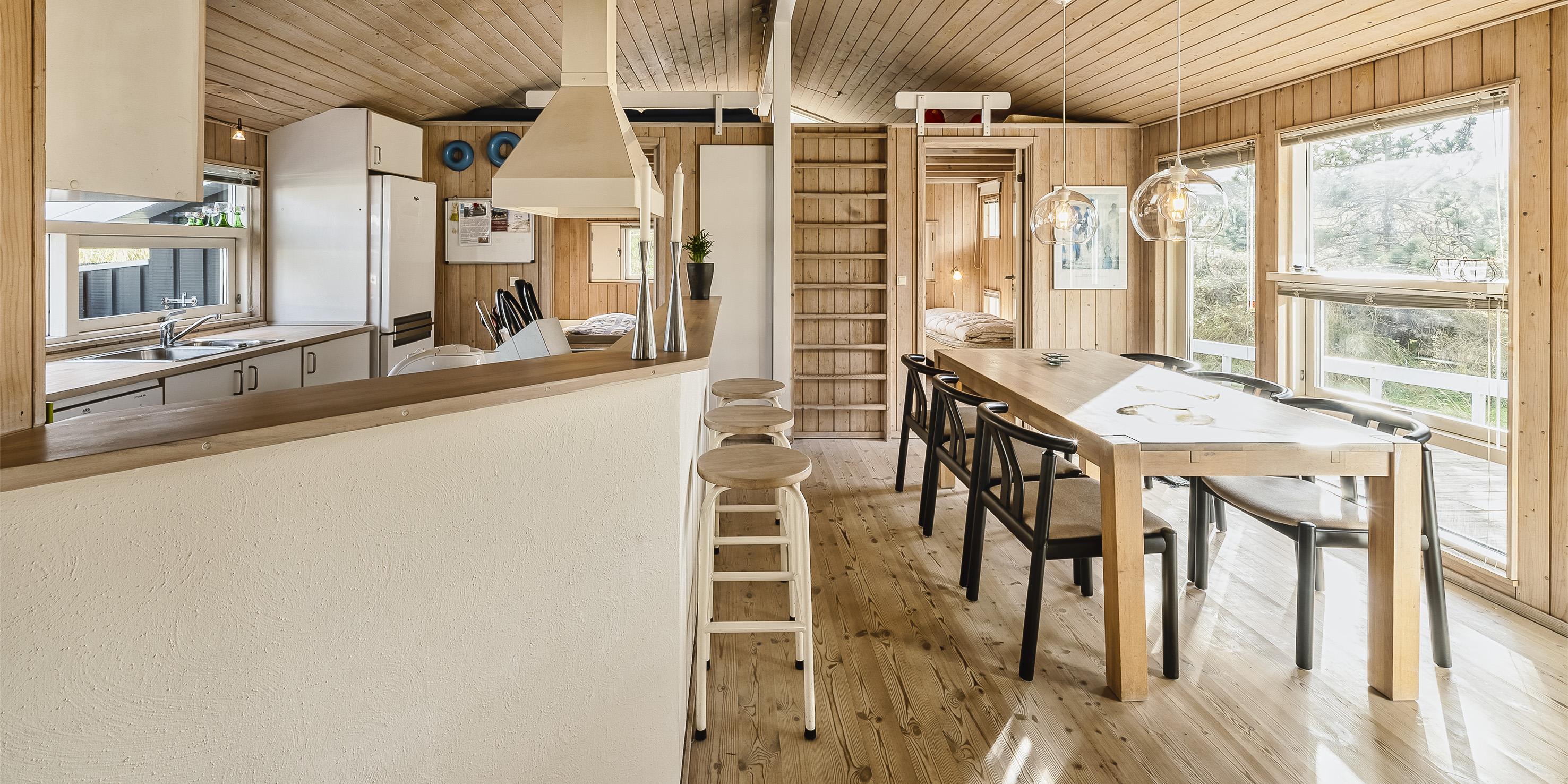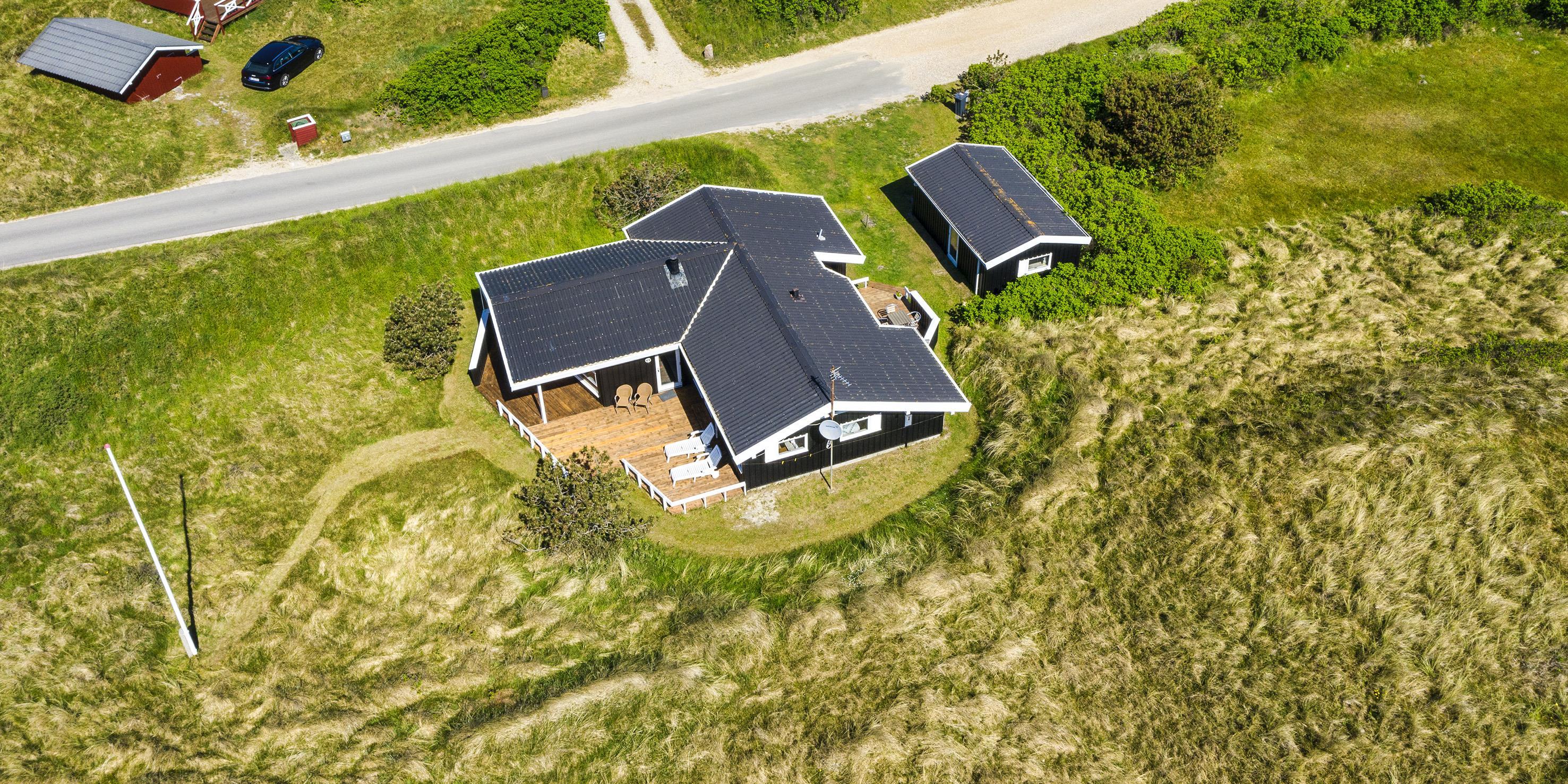 Meget flot og lys sommerhus til 6 personer, beliggende på naturskøn ugeneret klitgrund, ca. 200 meter fra stranden. Åbent køkken med opvaskemaskine, mikroovn og spisestue. Stue med brændeovn, Smart-Tv crome cast, DVD-afspiller og parabol. Trådløs internet. Badeværelse med bruser/wc og sauna. 3 soveværelser: DS + DS + 2S. Strømbesparende varmepumpe. Redskabsrum. Stor, delvis overdækket terrasse. Sandkasse. Husdyr må maksimalt være 30 cm høje og må ikke på sofa og i senge. Rygning er ikke tilladt. Byggeår 1988.