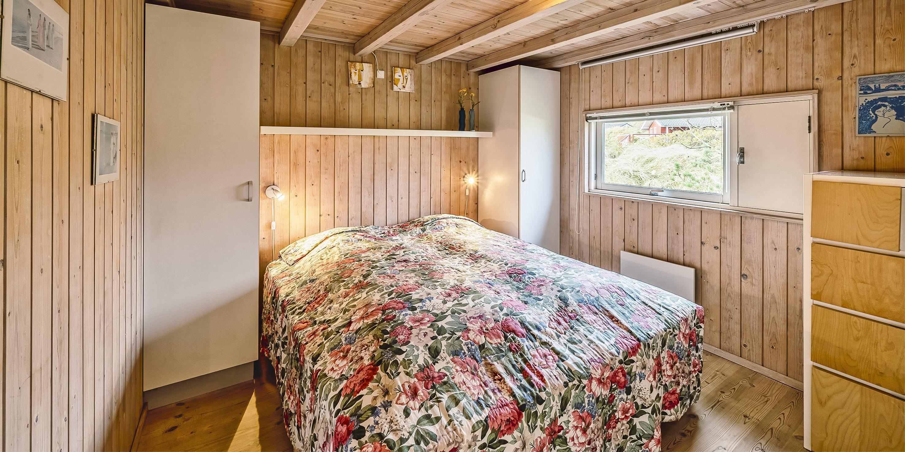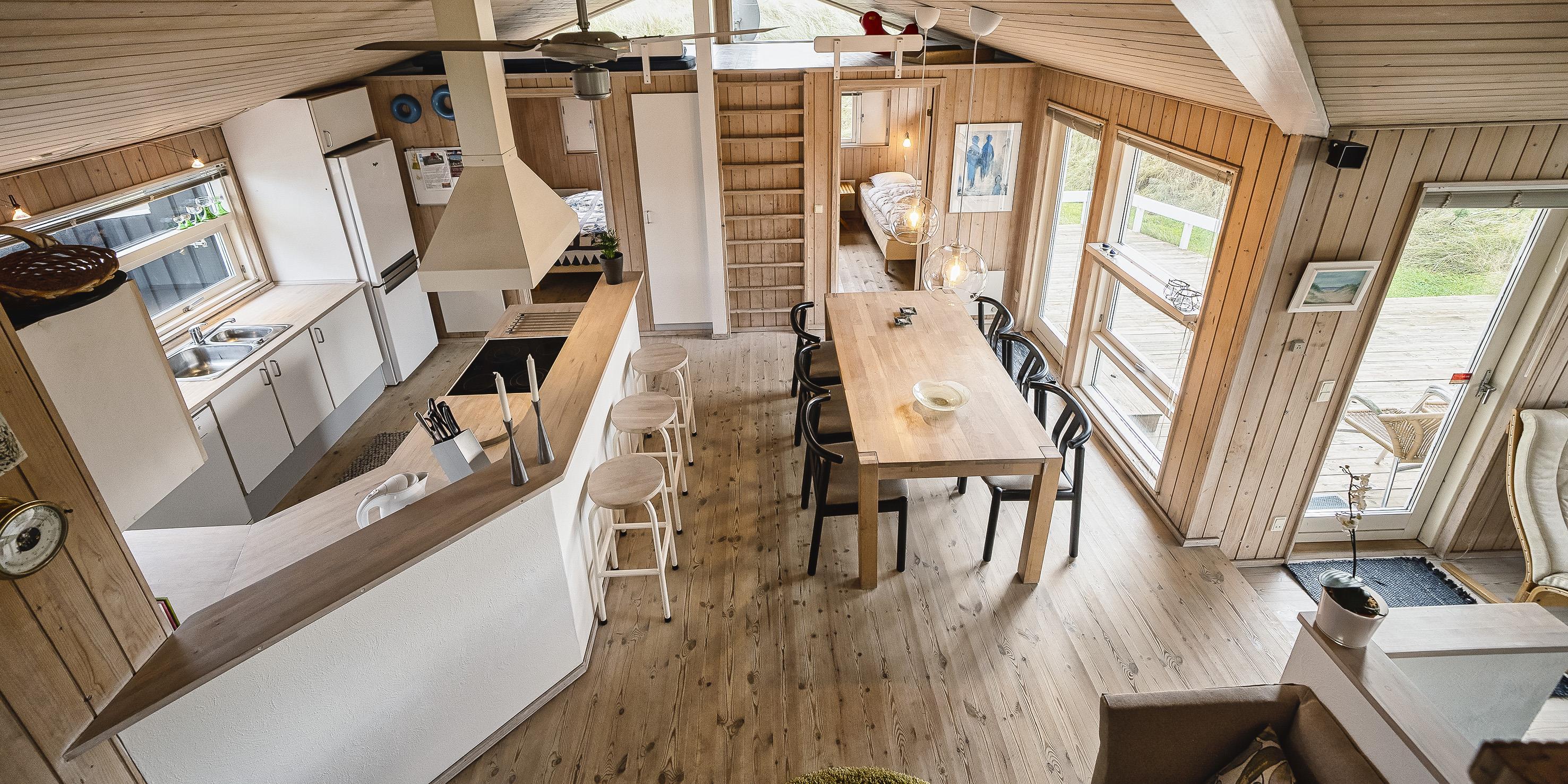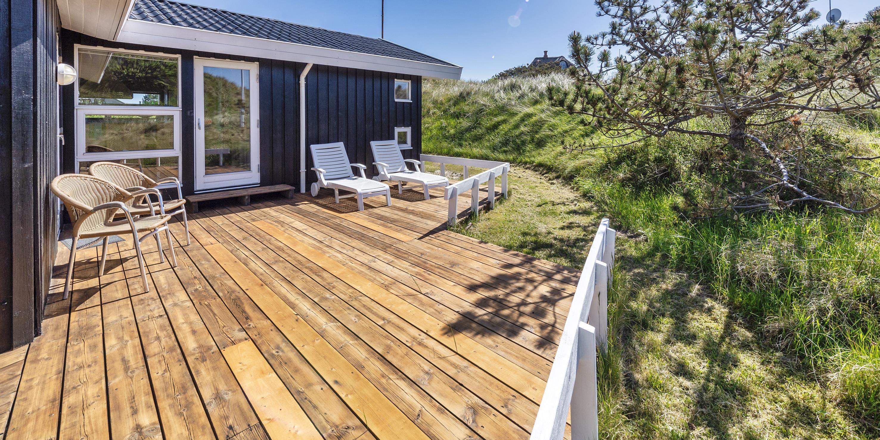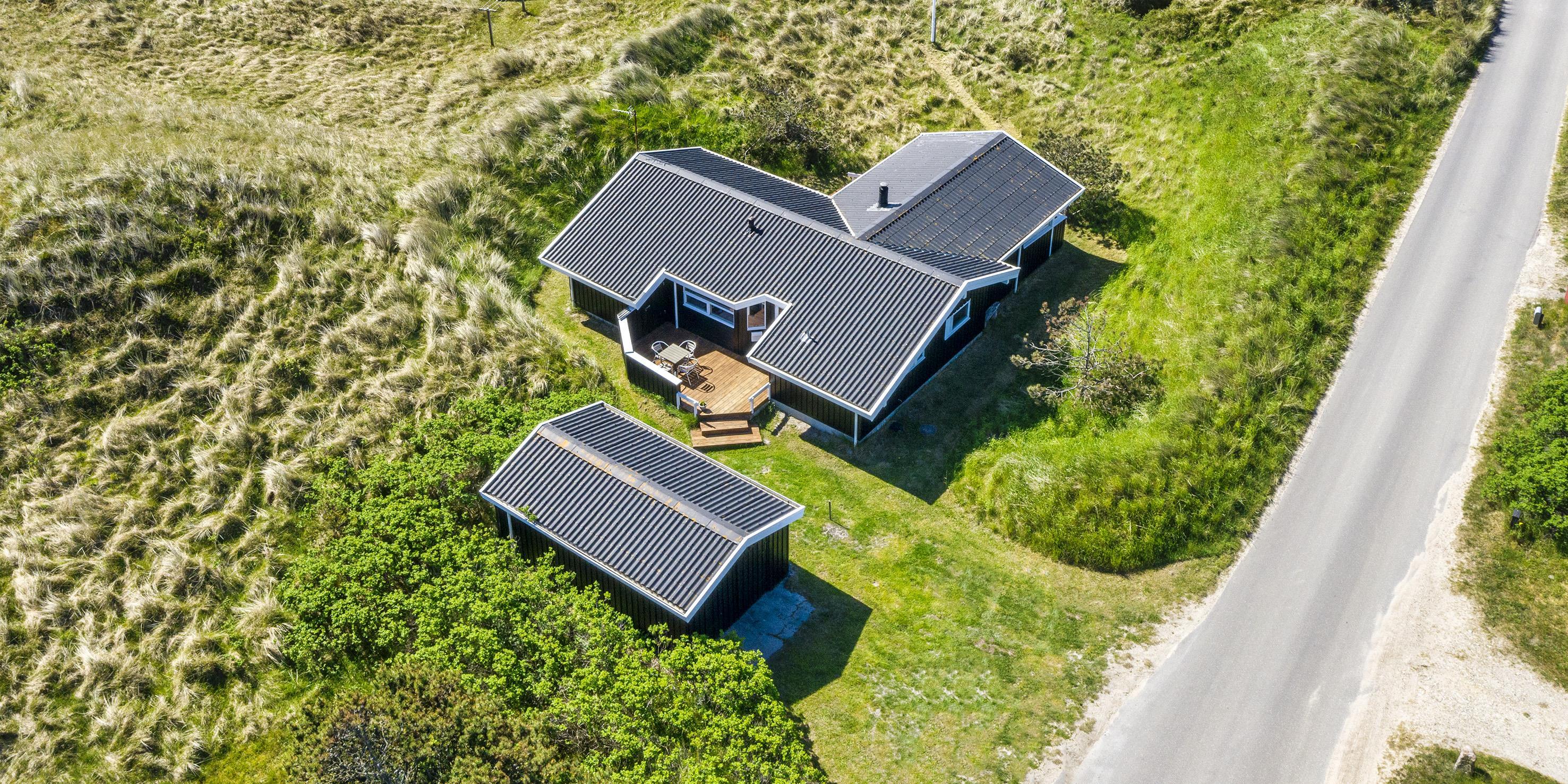 Meget flot og lys sommerhus til 6 personer, beliggende på naturskøn ugeneret klitgrund, ca. 200 meter fra stranden. Åbent køkken med opvaskemaskine, mikroovn og spisestue. Stue med brændeovn, Smart-Tv crome cast, DVD-afspiller og parabol. Trådløs internet. Badeværelse med bruser/wc og sauna. 3 soveværelser: DS + DS + 2S. Strømbesparende varmepumpe. Redskabsrum. Stor, delvis overdækket terrasse. Sandkasse. Husdyr må maksimalt være 30 cm høje og må ikke på sofa og i senge. Rygning er ikke tilladt. Byggeår 1988.