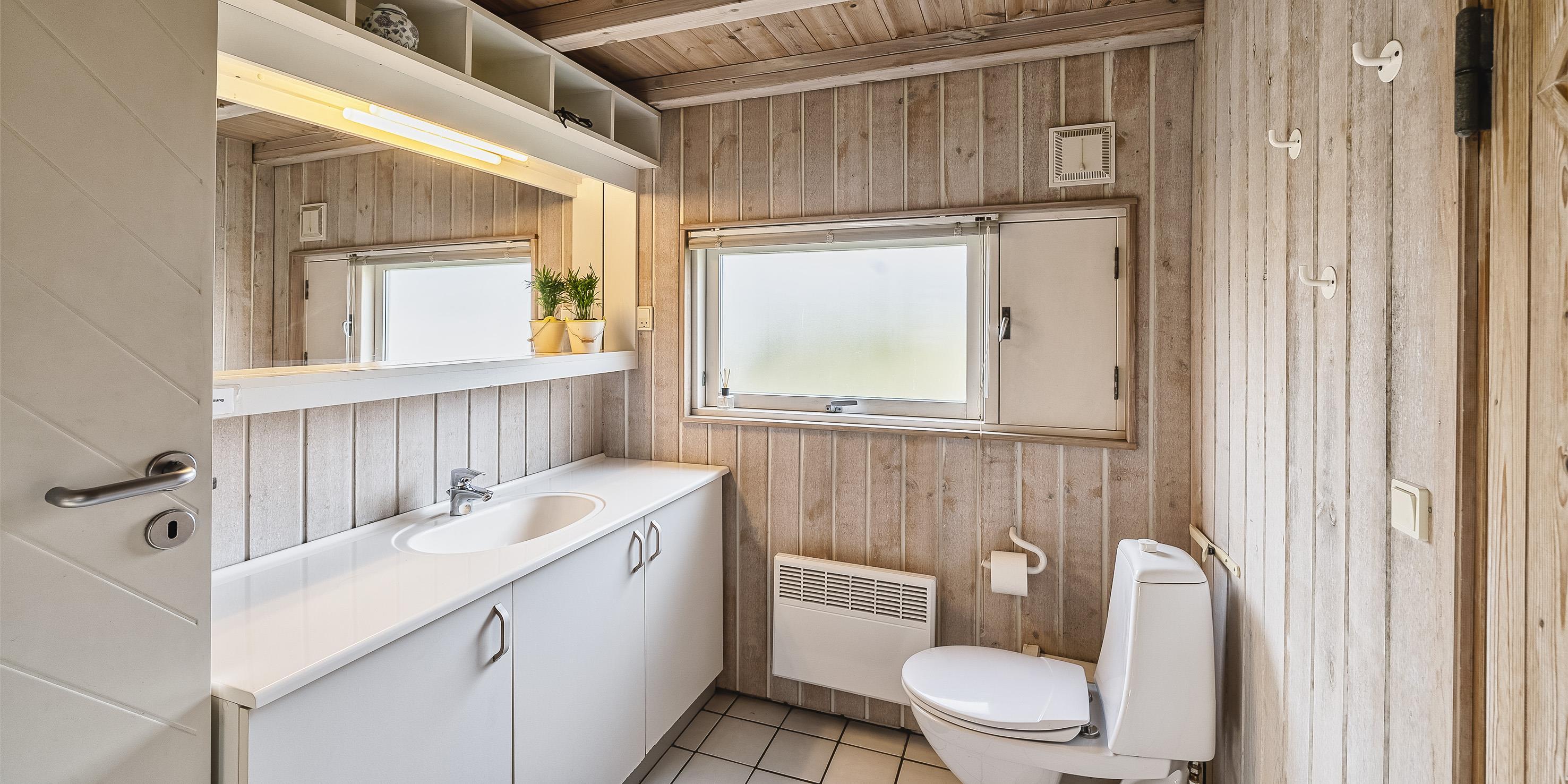 Bad med toilet, bruser og vask