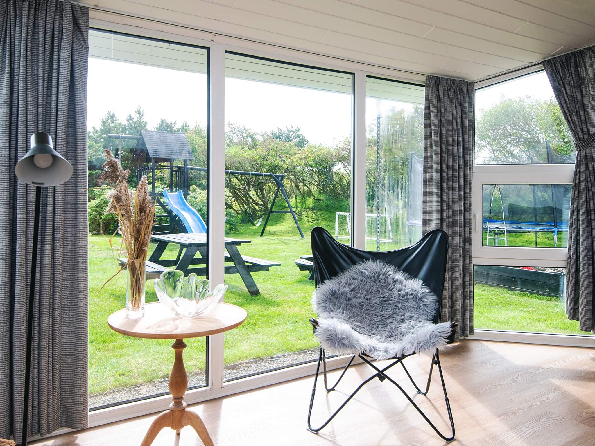 Opholdsstuen er kombineret med det åbne køkken og indeholder bl.a. parabol, video, fladskærms-tv, stereoanlæg med cd-afspiller og brændeovn. På et af værelserne er der PlayStation med spil tilsluttet fladskærms-tv. Der er tv i alle soveværelserne.