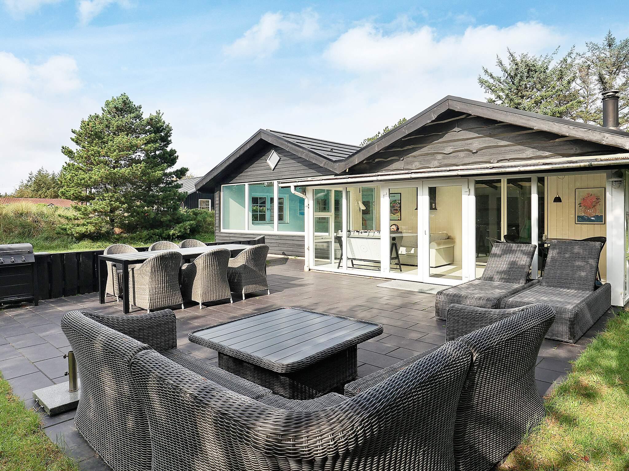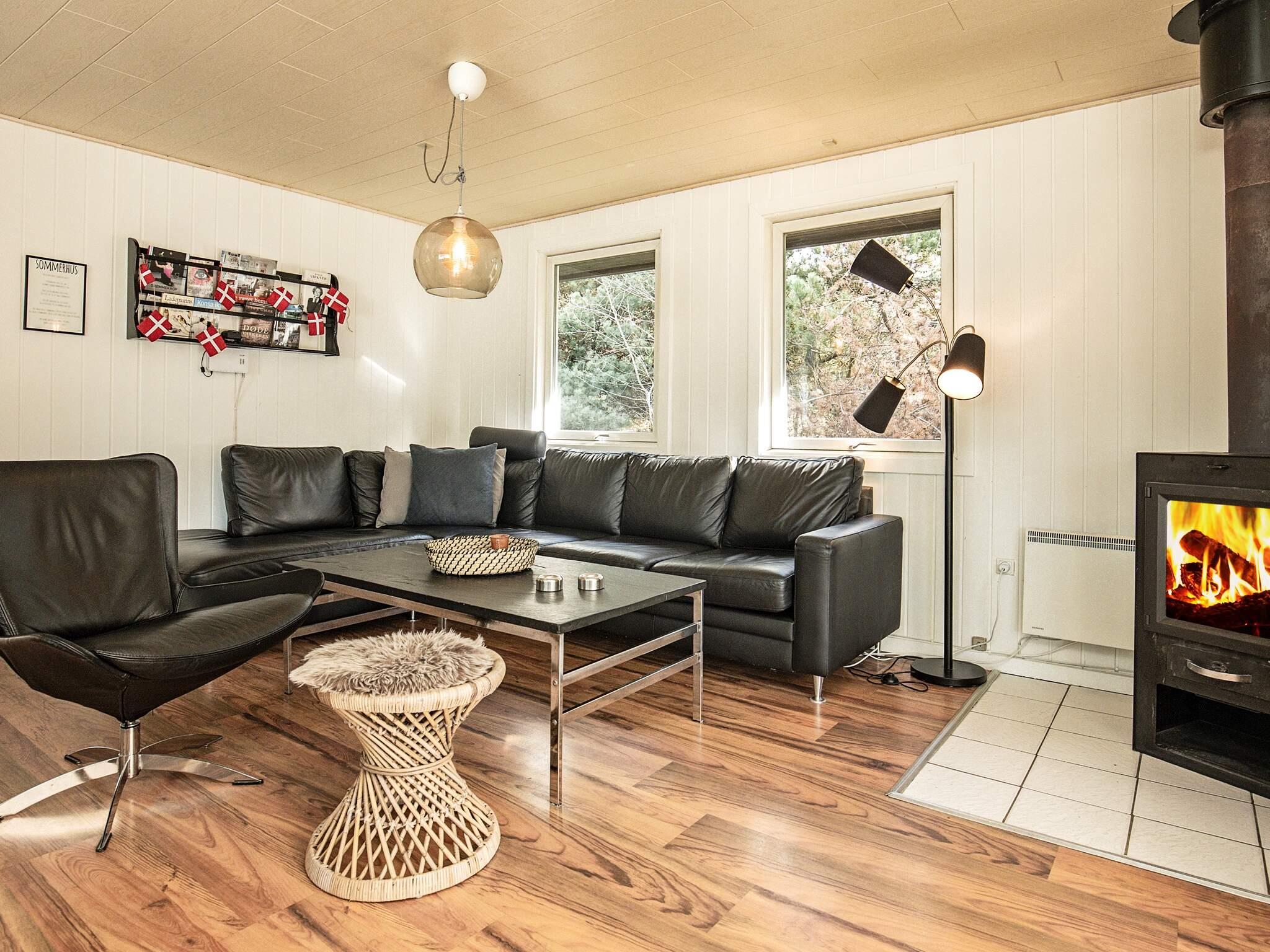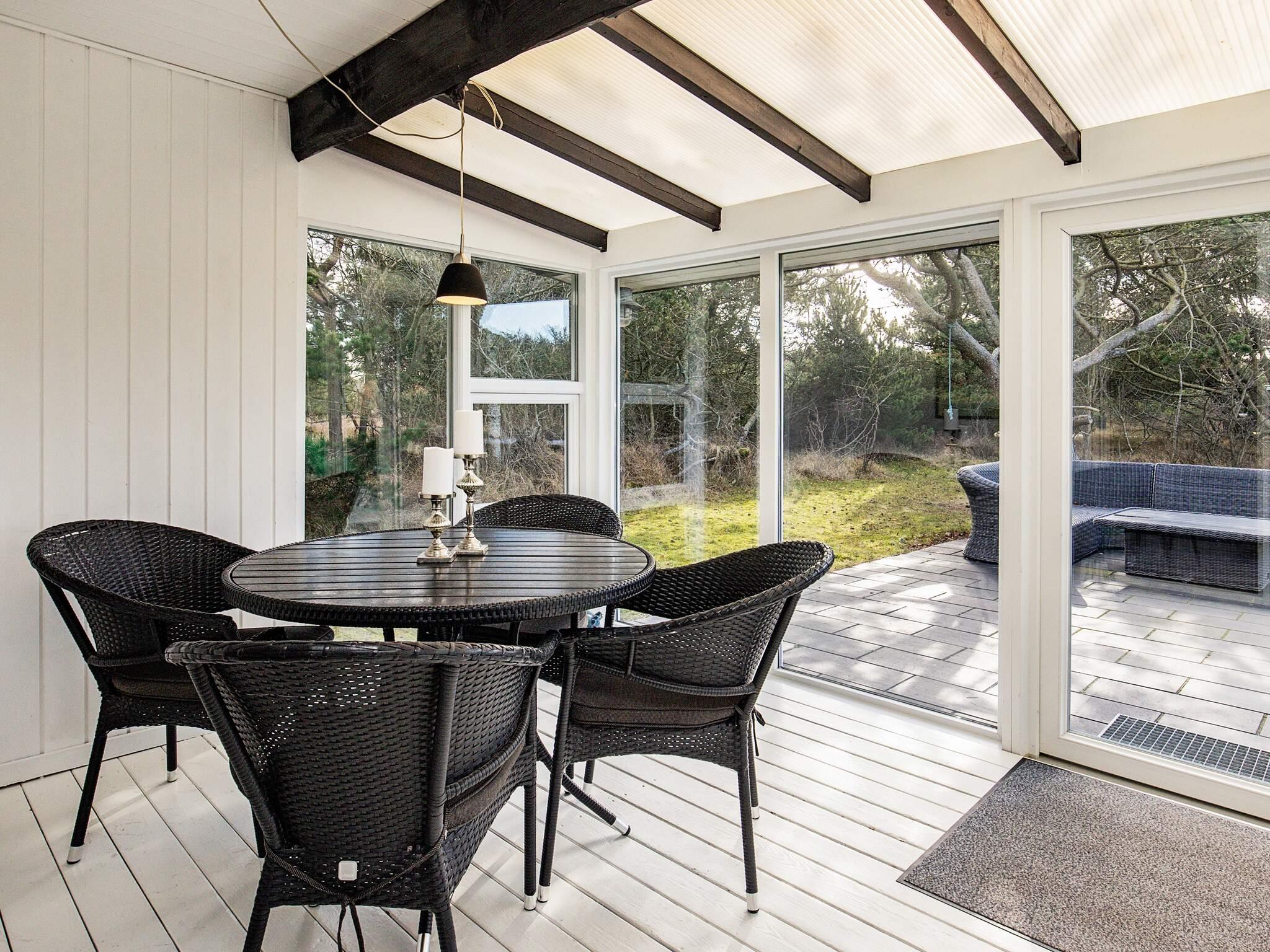 Der er sandkasse, gynger og en høj stol. Feriehuset ligger på en dejlig naturgrund med bevoksning.