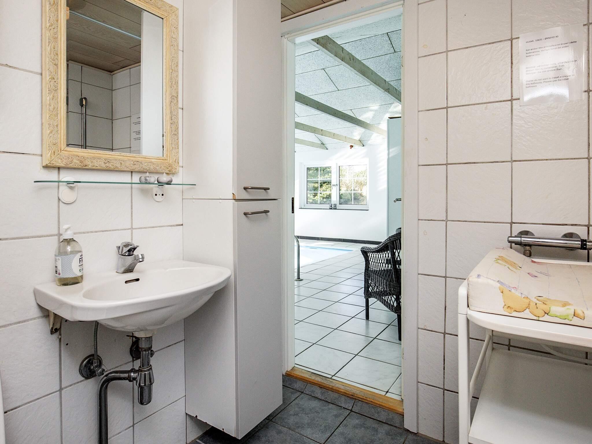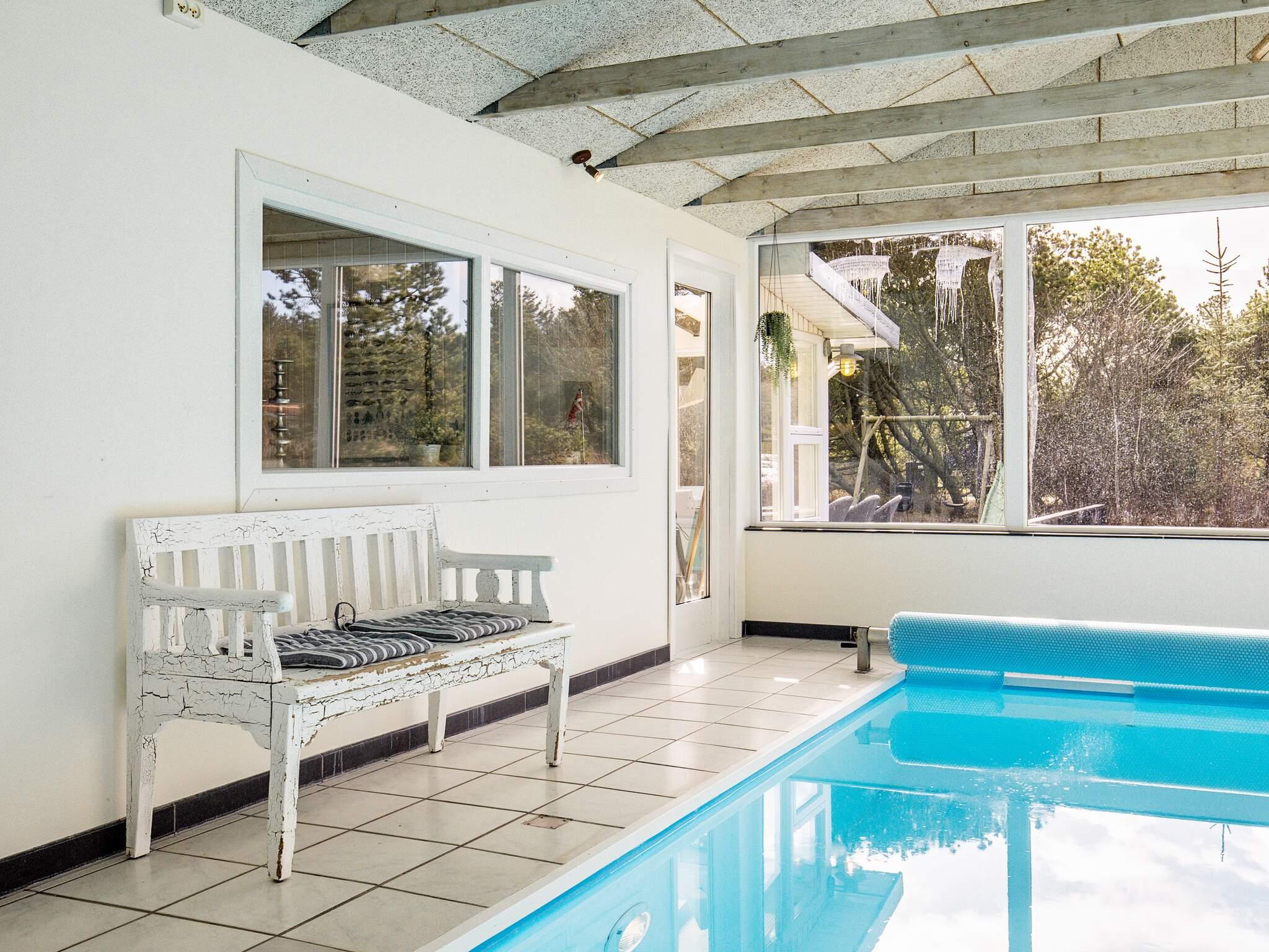 Poolrummet er rummeligt med et spabad og en 23 m² stor swimmingpool. Der er en energibesparende klimaanlægspumpe til opvarmning af vand og gulv. Adgang til poolområdet er kun gennem badeværelset. Den gamle terrassedør er blevet lukket permanent og håndtaget fjernet.