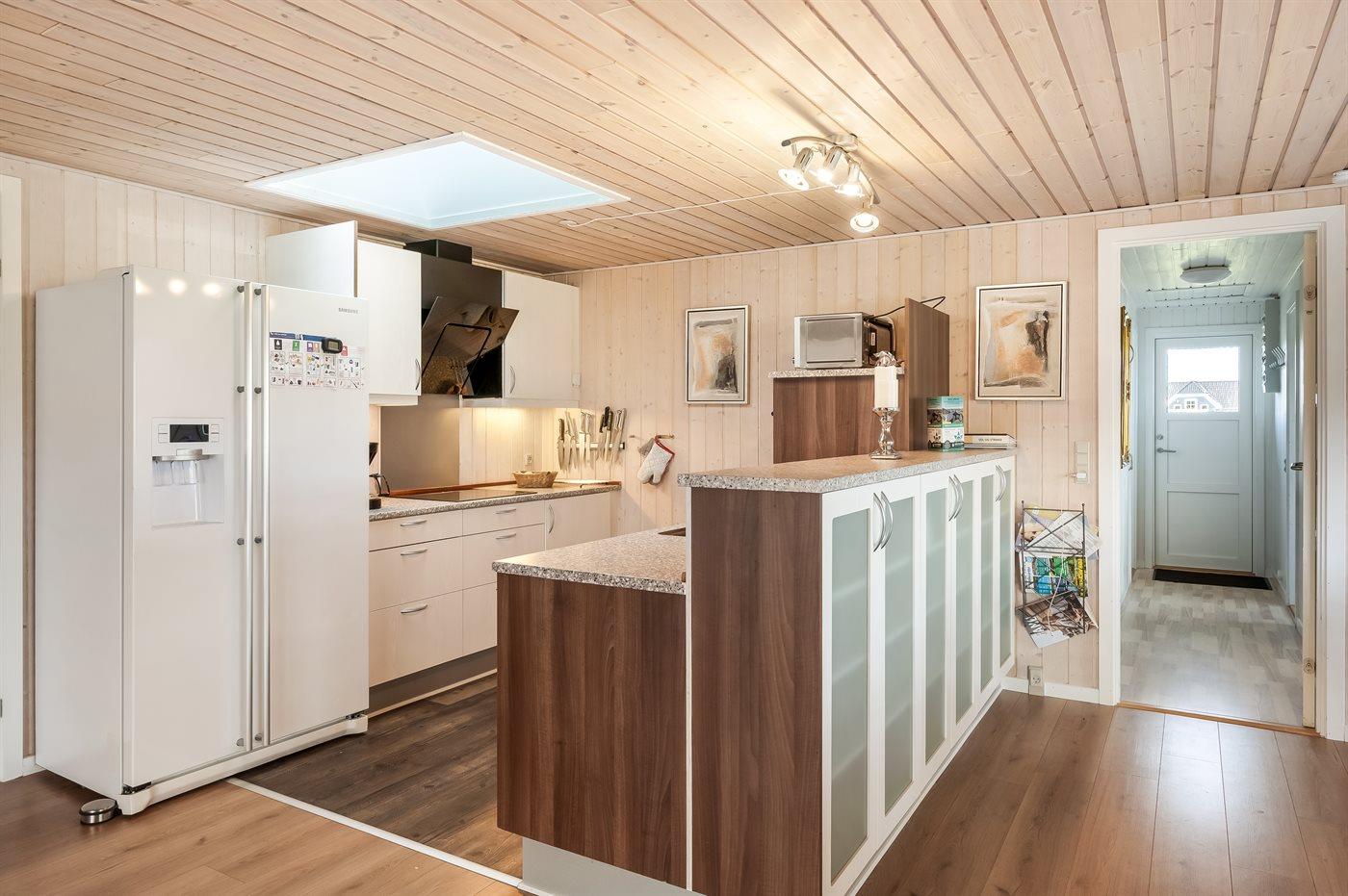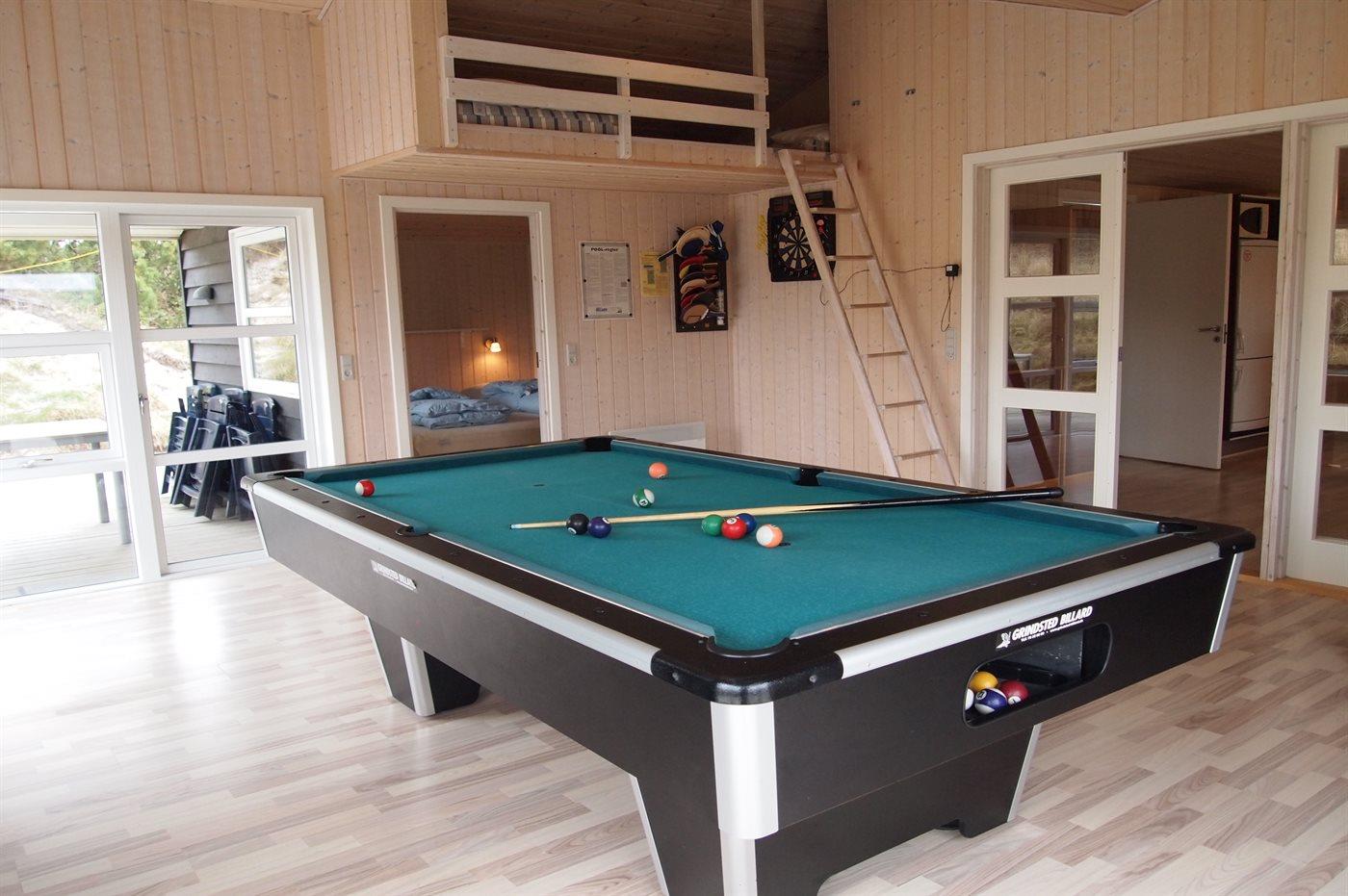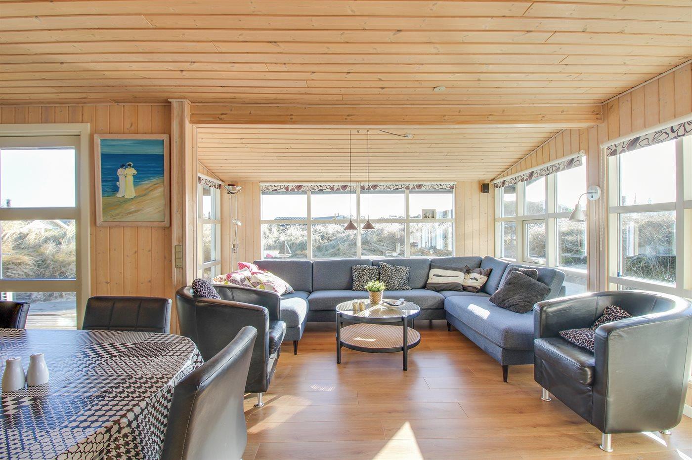 I gåafstand fra en af Danmarks bedste badestrande ligger dette herlige sommerhus i træ, bygget i 1970, renoveret og udvidet i 2009 med bl.a. nyt badeværelse med spa. Huset ligger på en 2800 m2 stor klitgrund og til huset hører stort, delvist overdækket terrasseareal med havemøbler. Flot badeværelse (2009) med opvarmet klinkegulv, bruseniche, 2-pers. spa samt adgang til husets sauna. Ekstra badeværelse med bruseniche. Det dejlige køkken er bl.a. udstyret med opvaskemaskine og mikrobølgeovn. Rummelig opholdsstue med pæne lædermøbler, brændeovn, stereoanlæg med CD-afspiller, DVD-afspiller og 42” fladskærms-TV med parabol (digital). Aktivitetsrum med billard- og bordtennisbord samt dart. Husets sovepladser fordeler sig på 3 værelser, alle med dobbeltseng. Desuden 2 sovepladser på husets hems. Af yderligere udstyr kan gratis ADSL-internetforbindelse (computer medbringes), 1 ekstra TV, Nintendo Wii vaskemaskine og tørretumbler nævnes. Til de mindste feriegæster findes der sandkasse og gynge på grunden. Der findes endvidere et dejligt, stort redskabsrum (9 m2) med god plads til f.eks. cykler. Et skønt sommerhus, som uanset årstid er et godt udgangspunkt for en dejlig ferieoplevelse.
