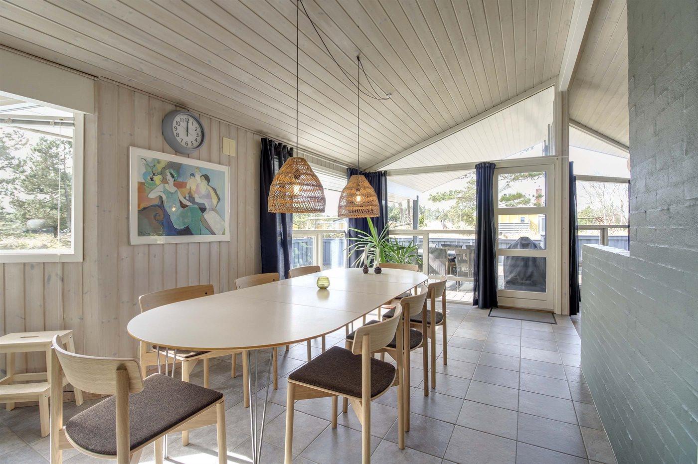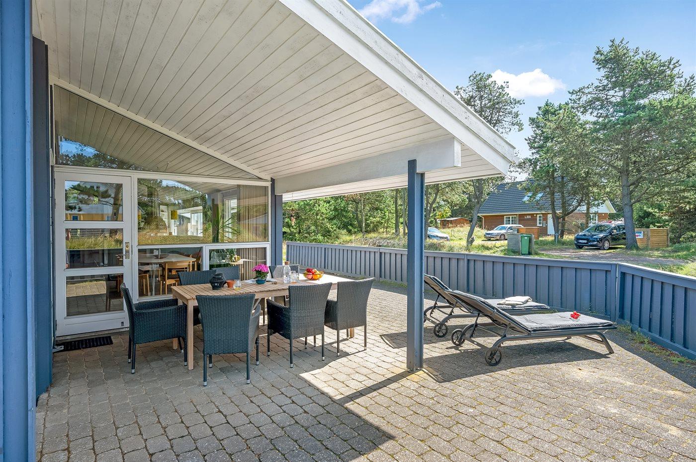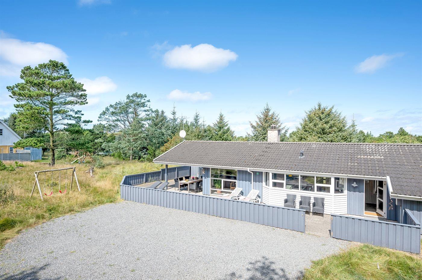 Hyggeligt og velholdt sommerhus i Vejers Strand med spa, sauna og stor terrasse tæt på havet.
