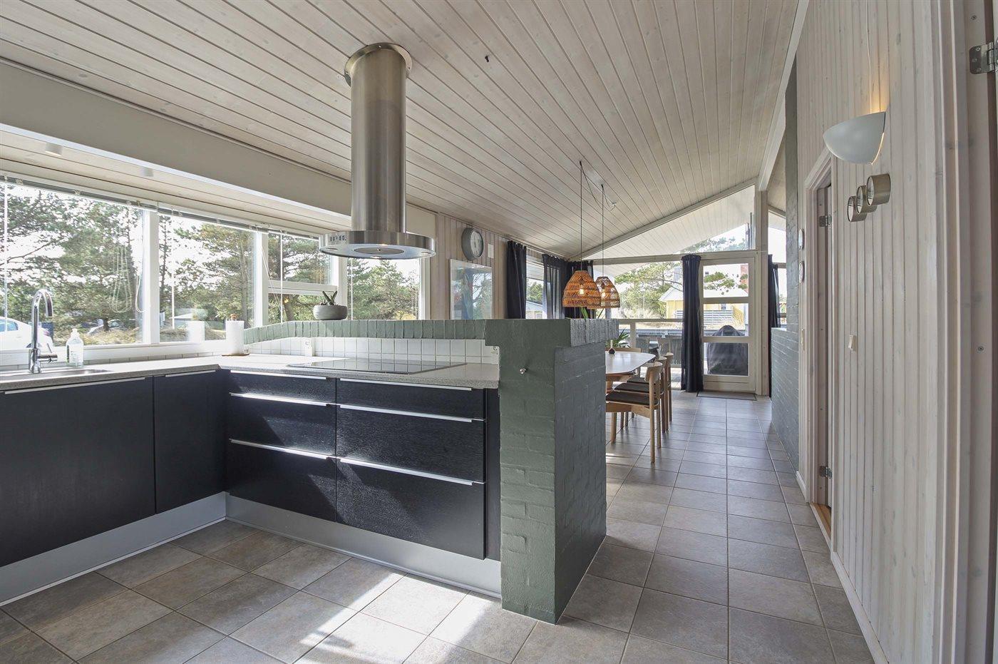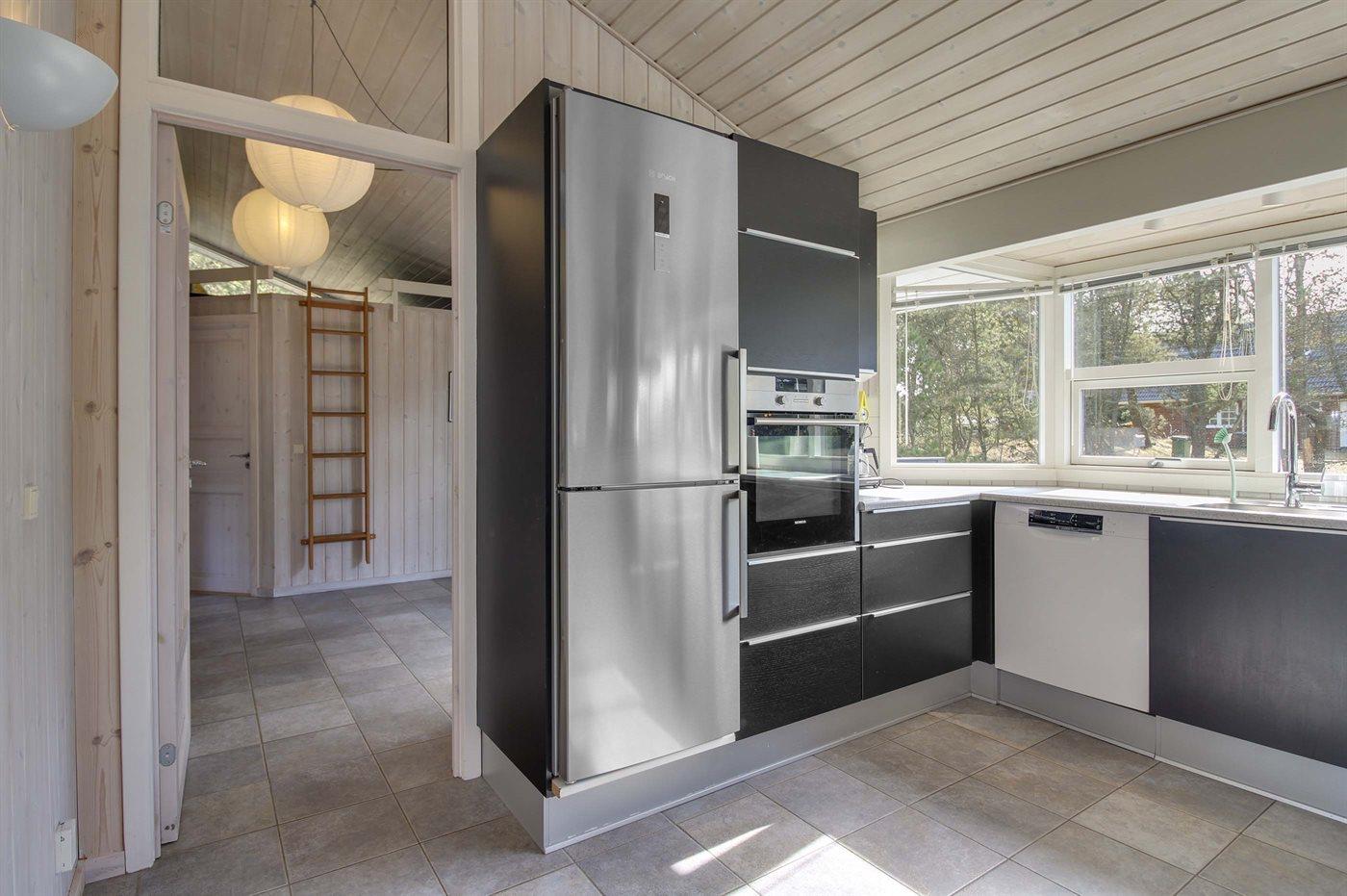Køkkenet er udstyret med 1 køleskab. Der er 4 induktionskogeplader, varmluftovn, mikrobølgeovn samt opvaskemaskine.