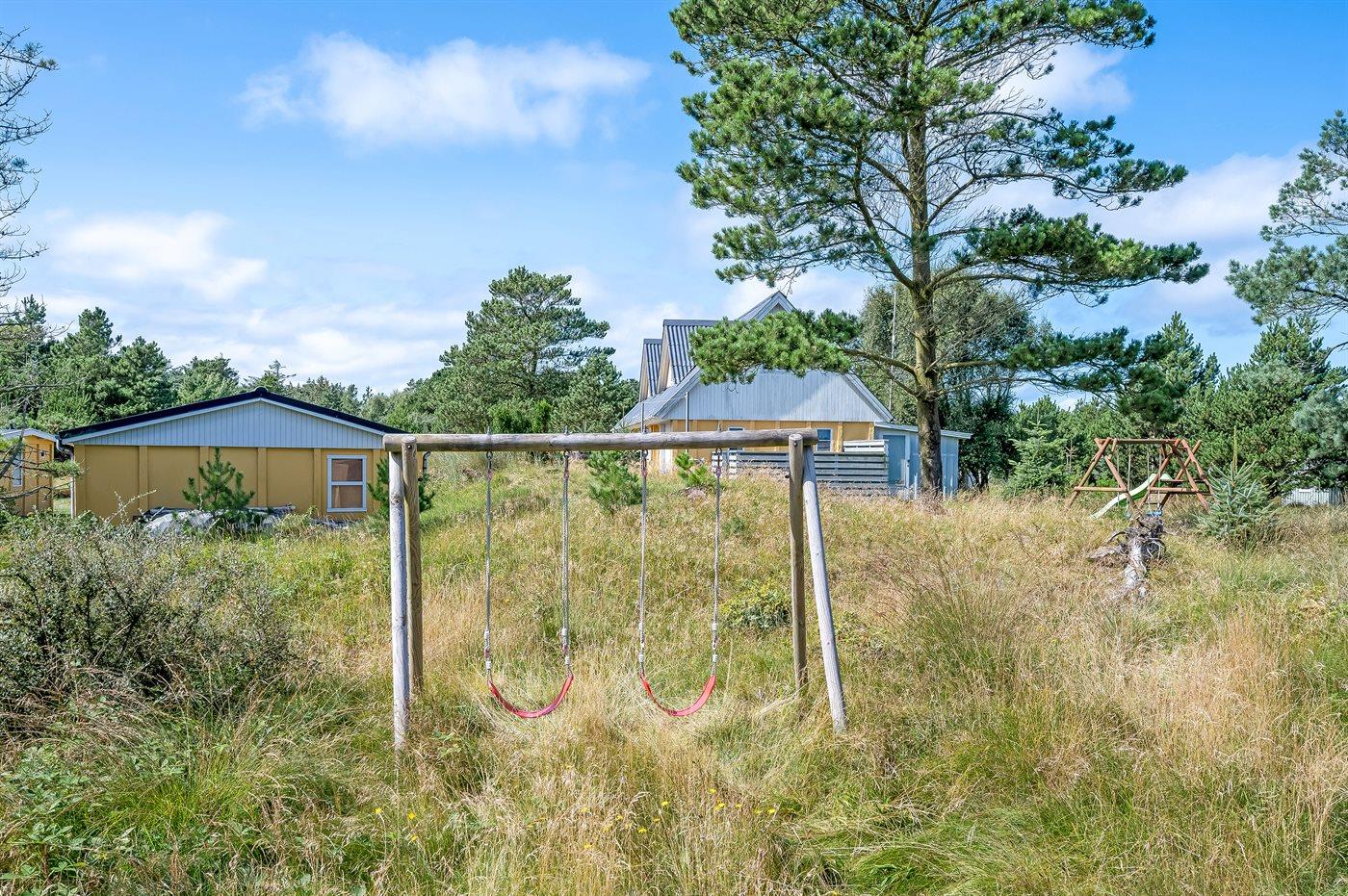 Ferieboligen er beliggende på en 1500 m² stor naturgrund. Der er 700 m til havet. Nærmeste forretning er beliggende i en afstand af 450 m. Til ferieboligen hører 105 m² terrasseareal. Desuden er der 15 m² overdækket terrasse. Gynge. Grill til rådighed. Parkering ved ferieboligen.