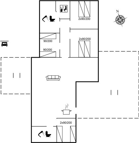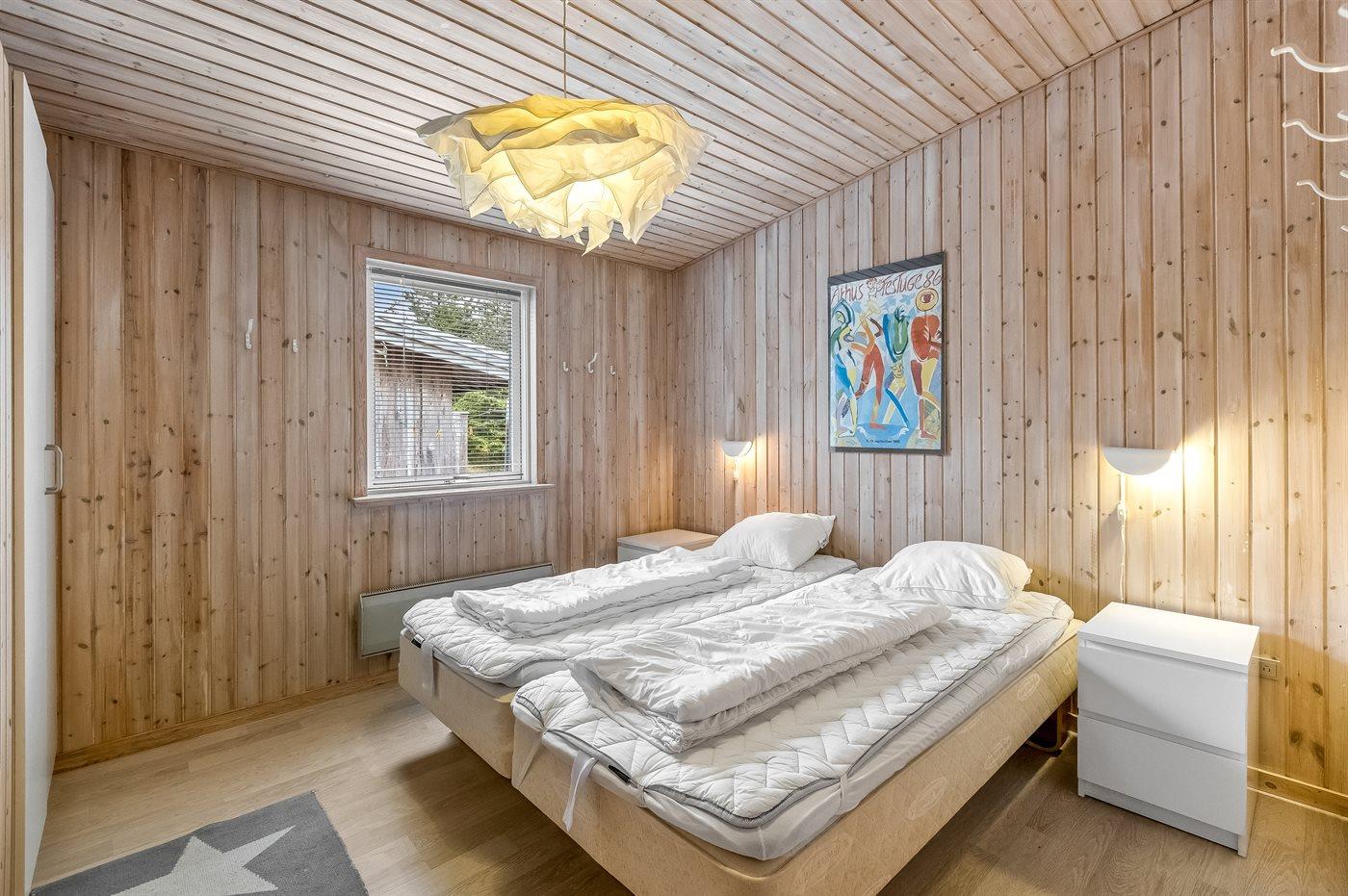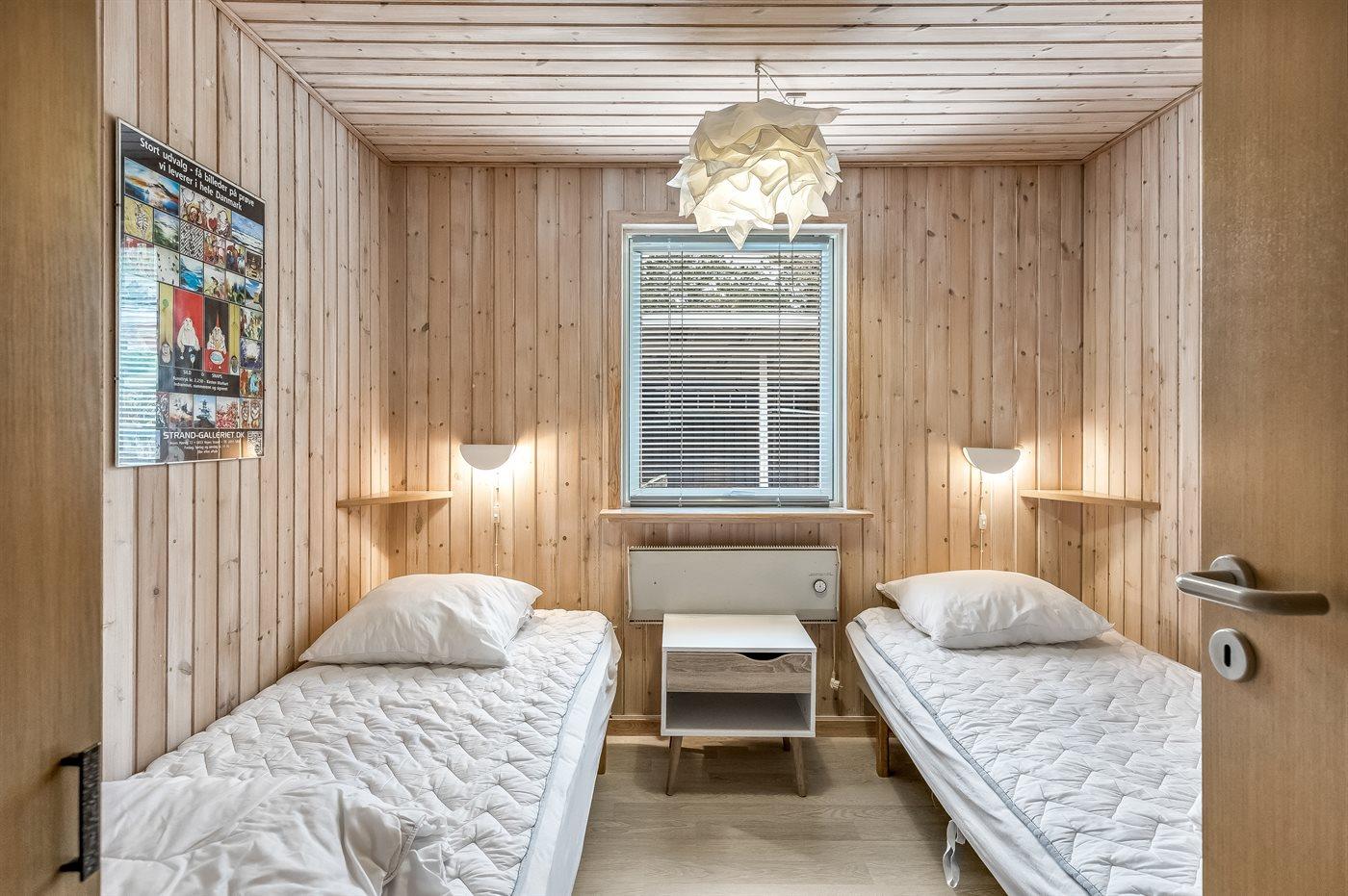 Der er i alt 4 soveværelser. Sovepladserne fordeler sig på: 4 sovepladser i dobbeltsenge. 4 sovepladser i enkeltsenge. Derudover er der 1 stk. barneseng.