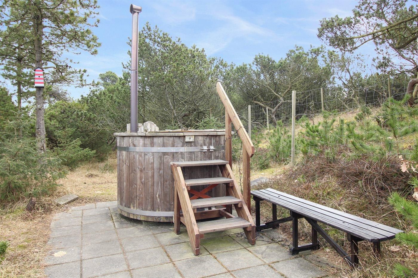 Der er mulighed for afslapning i det udendørs vildmarkskar til 2 personer.