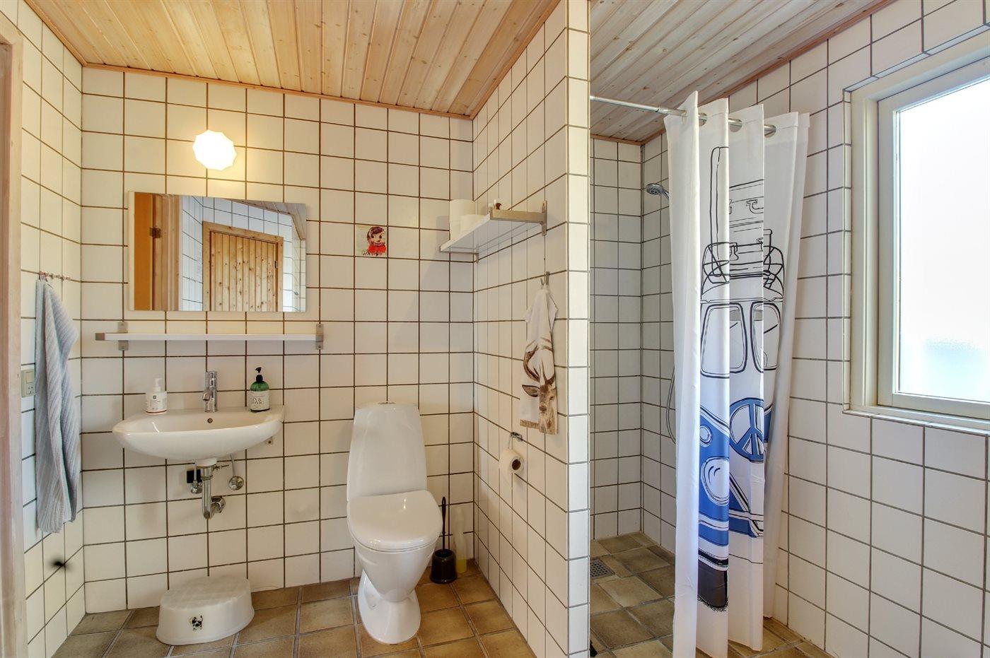 Der er 2 badeværelser med bruseniche og 2 toiletter. Der er gulvvarme på 2 badeværelser. I saunaen er der mulighed for afslapning.